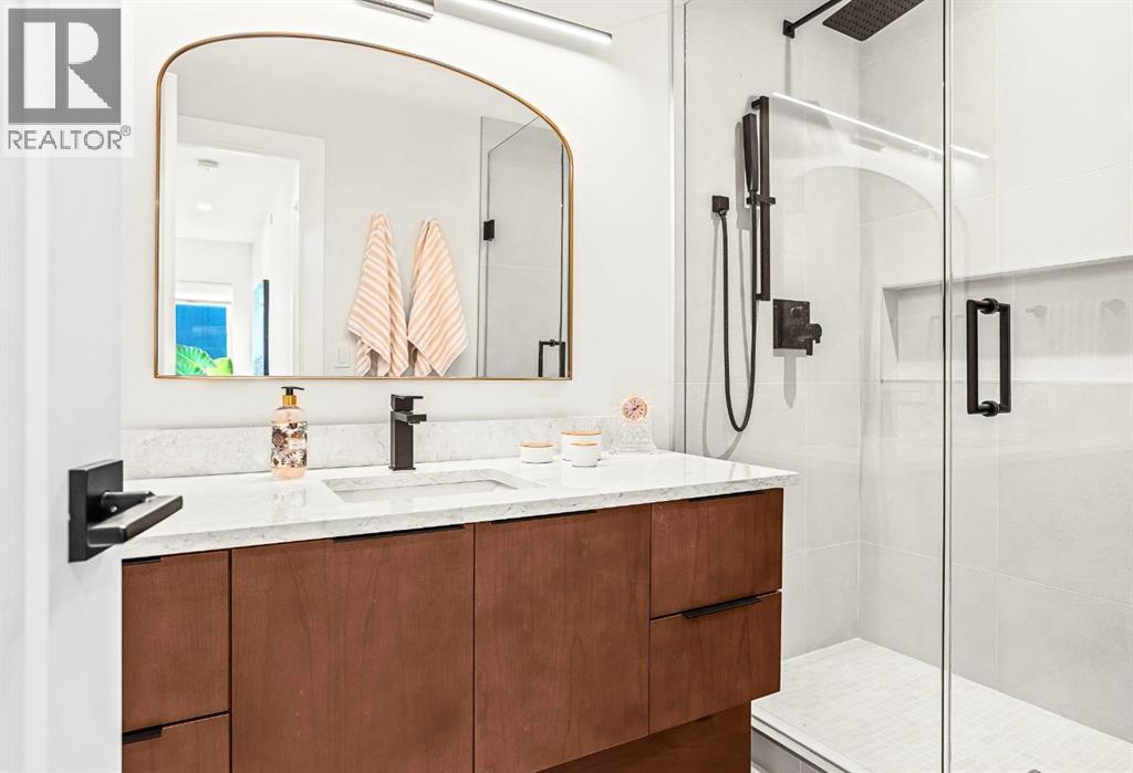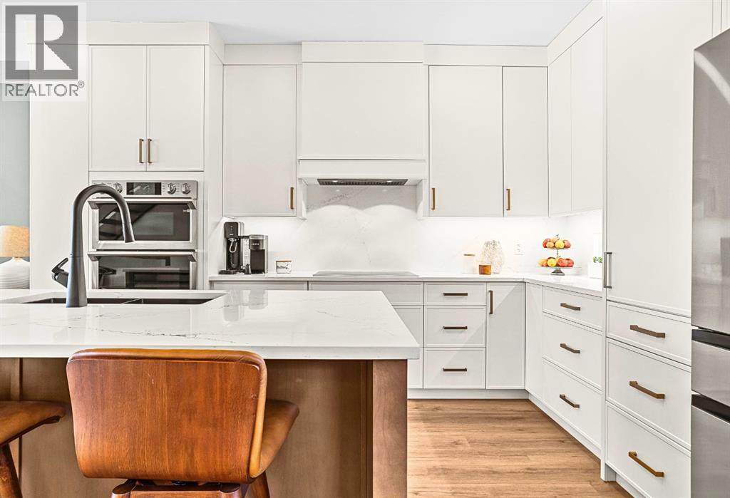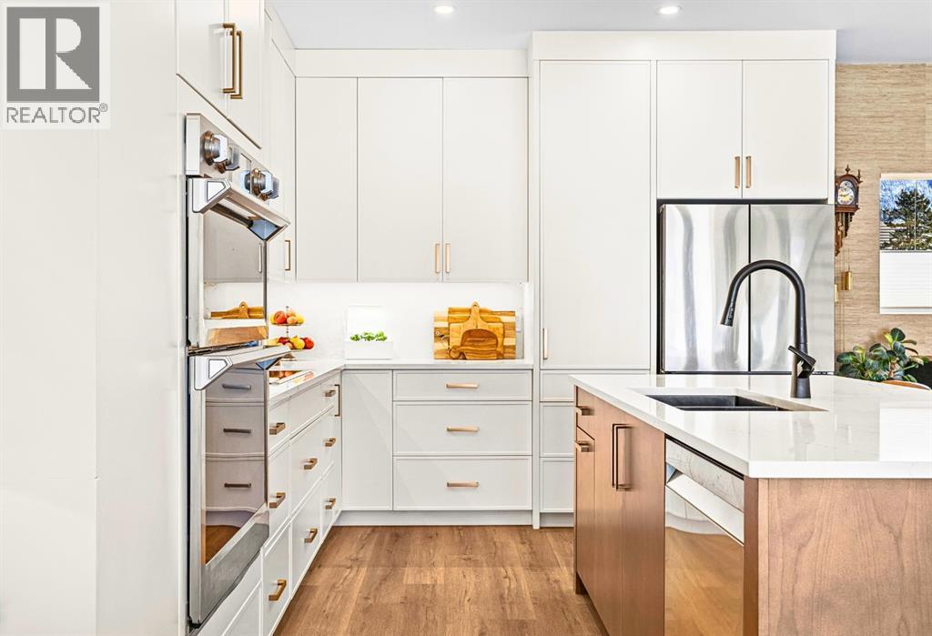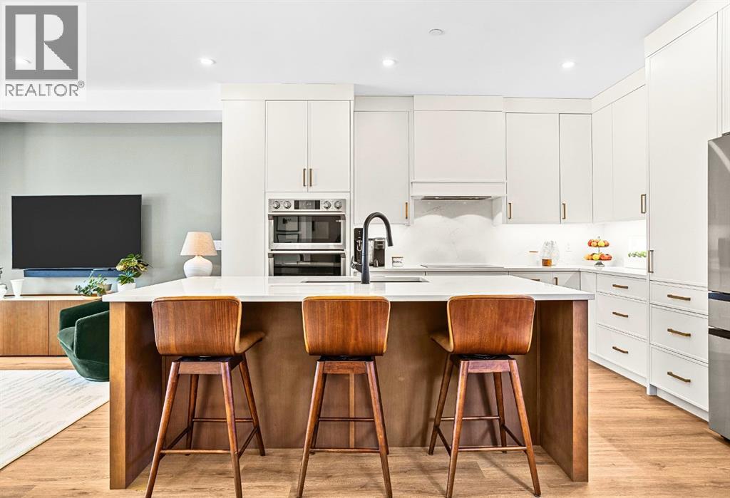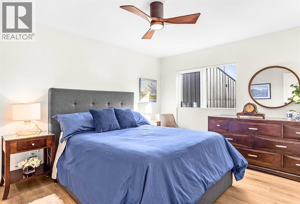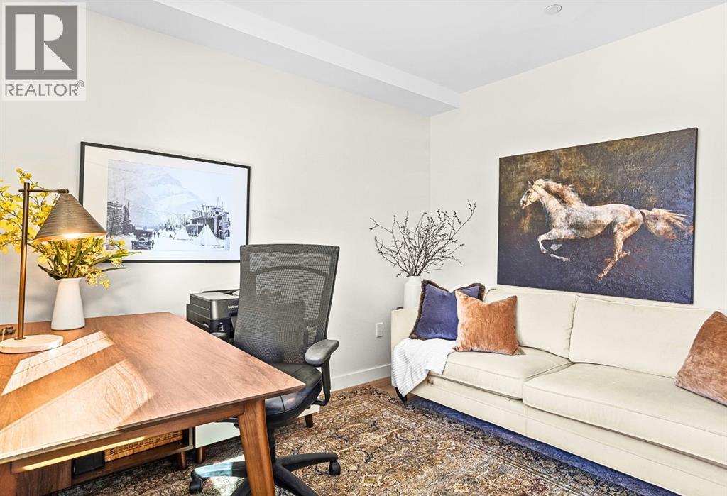 Welcome to the alpine sanctuary of Raven's Peak (Residential Only) in the heart of majestic Canmore — Completed in 2023 by a local homebuilder, this like-new 3-bedroom, 3-bathroom townhome blends thoughtful craftsmanship with refined modern design. Every detail feels intentional. Every space feels elevated. Step into the living room and feel the immediate impact of a dramatic floor-to-ceiling wall of Lux triple glaze windows — a stunning architectural statement that perfectly frames the grand mountain views beyond. Whether it’s sunrise alpenglow or a snow-dusted evening skyline, the striking peaks of the Canadian Rockies become your ever-changing artwork. The heart of the home is a showpiece kitchen anchored by a prominent quartz island — sleek, sculptural, and ideal for entertaining. Efficient stainless steel appliances complement clean modern lines, while a cozy breakfast nook invites slow mornings with coffee and your loved ones. It’s a space that effortlessly transitions from a quiet intimate evening, to a lively dinner parties with friends. The primary bedroom is nothing short of breathtaking. Imagine waking up to unobstructed mountain views — visible directly from your pillow. No buildings. No rooftops. Just stars, peaks, and bright blue sky. Spacious and serene, this retreat offers the kind of daily inspiration that never grows old. Beyond beauty lies performance. A highly efficient geothermal system provides sustainable heating and cooling year-round, delivering exceptional comfort with reduced environmental impact. Triple-glaze windows enhance both efficiency and tranquility, creating a peaceful indoor environment in every season. Practicality is equally refined. A convenient mudroom and bathroom sit directly off the garage — ideal for after mountain adventures. The single attached garage features durable epoxy flooring and a slatwall organizing system to keep all your gear in order. An exterior hose makes clean-up easy after hikes or bike rides, and the fe nced front patio offers a private space to relax in the alpine sun & air. Perhaps most coveted of all — direct pedestrian access across the street to downtown Canmore. Leave the car behind and stroll to cafés, boutiques, groceries, dining, and trailheads within minutes. No need for Canmore's amazing free public transit, but there is a stop a stones throw away. This is more than a townhome.It’s modern mountain living — elevated, efficient, and effortlessly connected to the very best of Canmore. (This is a Residential home, No STR allowed) (id:58070)