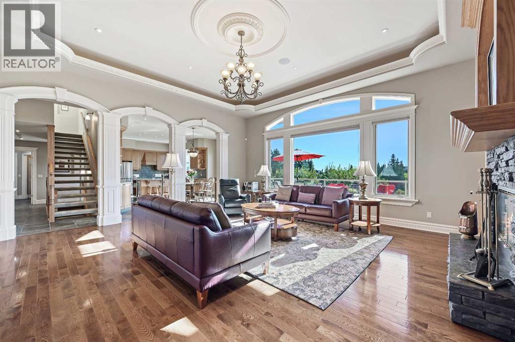** Please click "Videos" for 3D tour ** Stunning, original owner custom built Pinehurst masterpiece - backing SE onto a wooded ravine! This sprawling bungalow plus loft features: 5 bedrooms (could add another one in the loft if needed), 5 full bathrooms & 2 half bathrooms, 0.76 of an acre, over 5800 sq ft of developed living space, walkout basement, large concrete deck & lower patio (wired for hot tub), functional outdoor kitchen, 9 ft/10 ft & 12 ft coffered & backlit ceilings, oversized/insulated/heated/finished garage with epoxy flooring/two - 220 V outlets (ready for electric vehicle chargers)/bike lifts, wine/cold room, basement in-slab in-floor heat, in-ceiling speakers throughout, durable clay tile roof, 12 zone underground sprinkler system, unlimited potential in the loft area (813 sq ft of space & full bathroom), theater room comes with 105" screen & rear projector and much more! Location cannot be beat - tucked inside Heritage Pointe, backing SE onto a wooded environmental reserve, great access to all major routes, all schools pick up/close by and all the amenities 3 minutes away in Calgary. The original owners and taken great care of this home - TOTAL PRIDE IN OWNERSHIP & MOVE-IN READY CONDITION! (id:58070)
