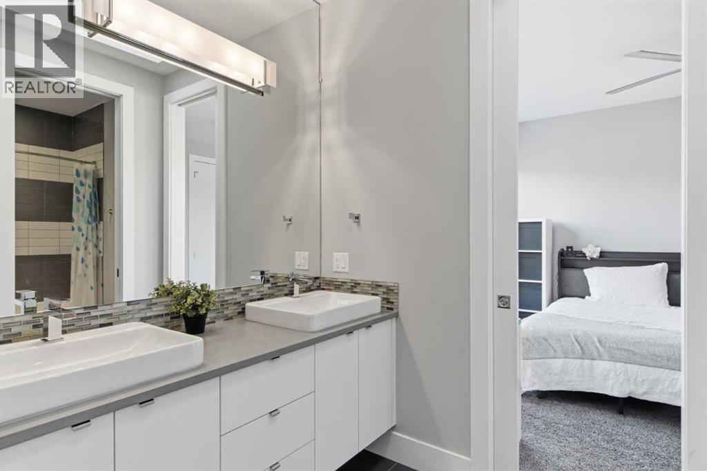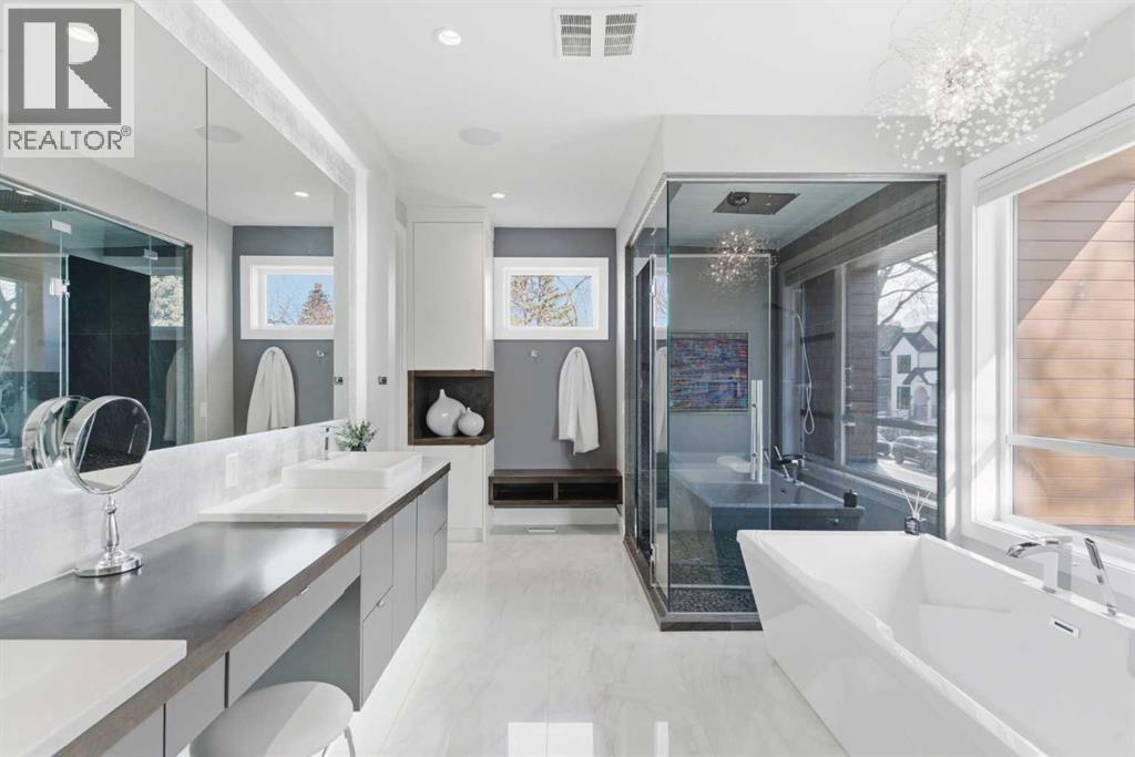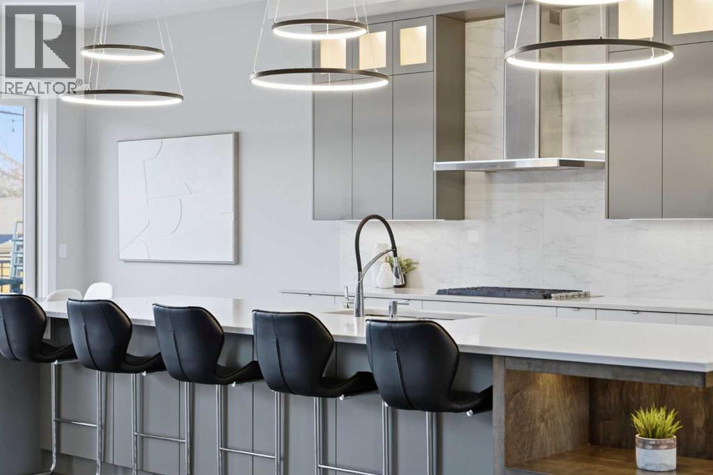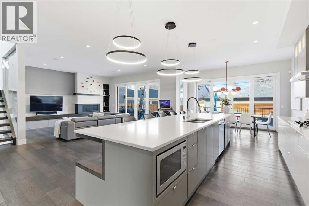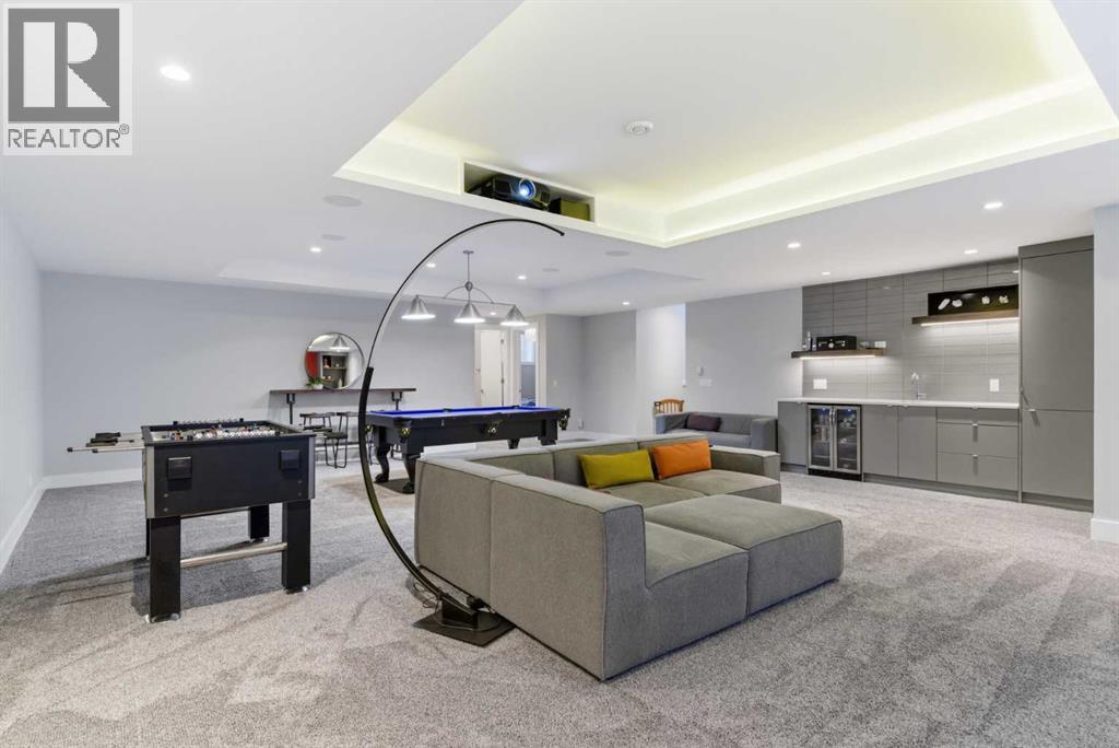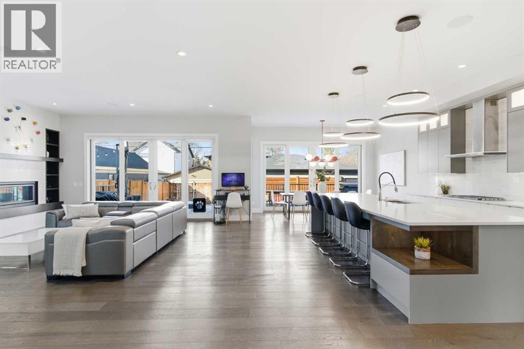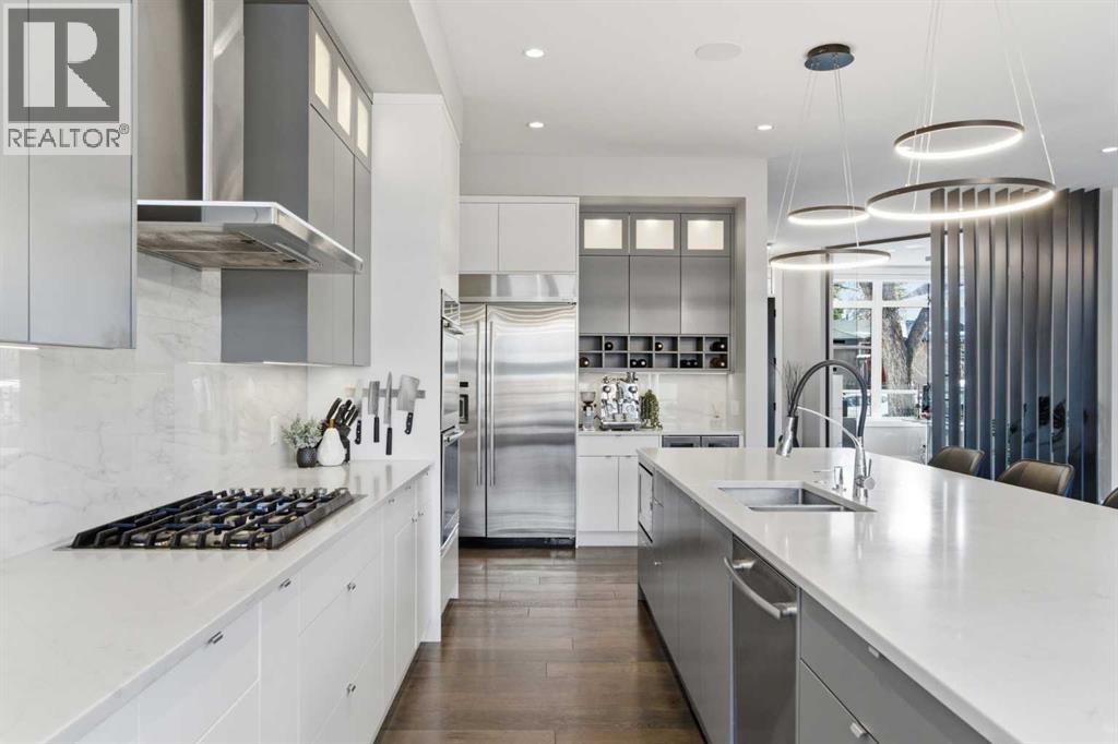Experience elevated living in this exceptional custom-built luxury home in North Glenmore Park, offering over 3,400 sq ft, 6 bedrooms, and 4.5 bathrooms. Designed with a seamless blend of modern architecture, high-end finishes, and everyday functionality.As you enter, you're greeted by a spacious foyer that flows effortlessly into a stunning open-concept main floor, defined by soaring ceilings, expansive windows, and abundant natural light. At the heart of the home is a chef-inspired kitchen featuring custom cabinetry, premium Jenn-Air appliances, quartz countertops, and an oversized island—perfect for both everyday living and sophisticated entertaining. The adjoining dining area and elegant living room, anchored by a sleek linear fireplace, create a warm yet refined atmosphere.Designed for today’s lifestyle, the main floor also offers a glass-enclosed office and an additional private den with built-in millwork, giving you a dedicated space to work or play room that doesn't take up the whole house. A well-appointed mudroom with 5 custom lockers provides exceptional storage and direct access to the heated oversized double garage.Upstairs, the primary suite is an absolute dream. The walk-in closet is spacious, and the ensuite feels like a spa, with dual showerheads (including a rain shower and spray nozzle), a steam shower, and in-floor heating. It’s pure luxury. The other THREE beds are generously sized, with one enjoying a private 3-pc ensuite and the other two sharing a lovely 5-pc Jack-and-Jill ensuite with a skylight.The fully developed lower level is designed for entertainment & wellness. The media room is set up for movie nights or big game days with a 120” projector screen and built-in surround sound for an immersive experience. There's also a gym OR 6th bed, a games area with pool table, a wet bar, in floor heating, and the integrated whole-home audio enhances both indoor and outdoor experiences.Step outside to your private outdoor oasis, complete w ith a covered deck with built-in heater, outdoor speakers, built-in BBQ station, irrigation system, and ambient gemstone lighting—perfect for year-round entertaining.The oversized double garage (27 Wx 23 D) with a heater provides more than enough space for your cars, plus extra storage. The home also has all the smart tech you could want plus multi-zone air conditioning, a VacuFlow system on all three floors, and motion-sensor lighting.Ideally located just minutes from the vibrant shops and dining of Marda Loop, Glenmore Reservoir's scenic walking & cycling paths, top-rated schools including Altadore School (K-6), private specialized learning at Rundle Academy and Master's Academy & College, along with nearby options like Lycée international de Calgary and Central Memorial. This home offers the perfect balance of luxury, lifestyle, and location.A rare opportunity to own a turnkey luxury residence in North Glenmore Park—where sophisticated design meets everyday living. (id:58070)