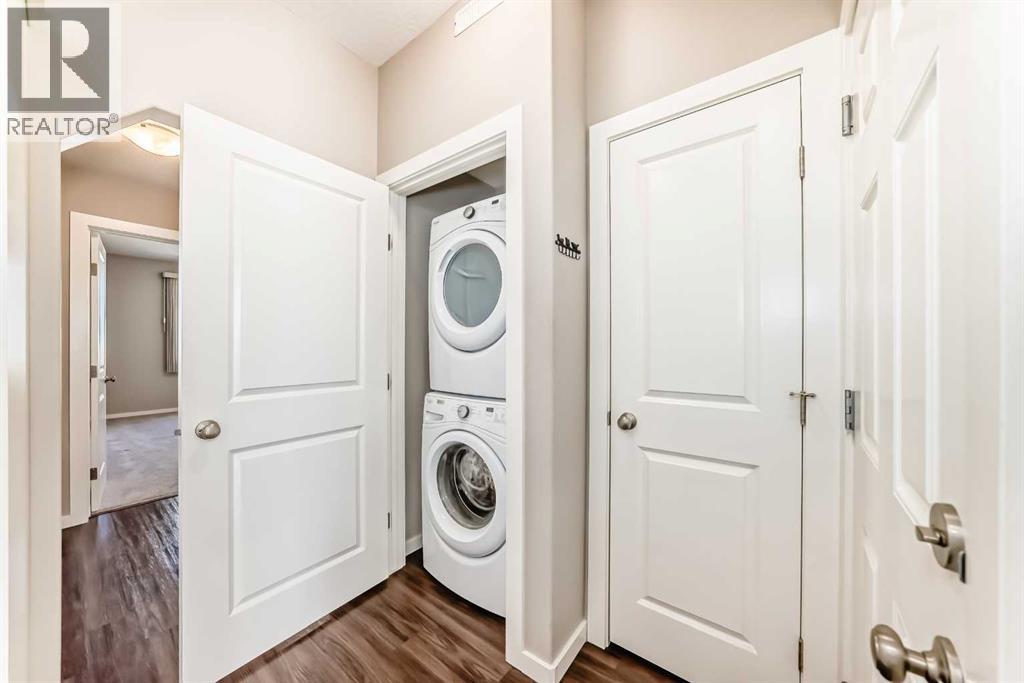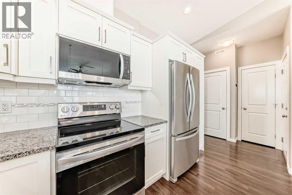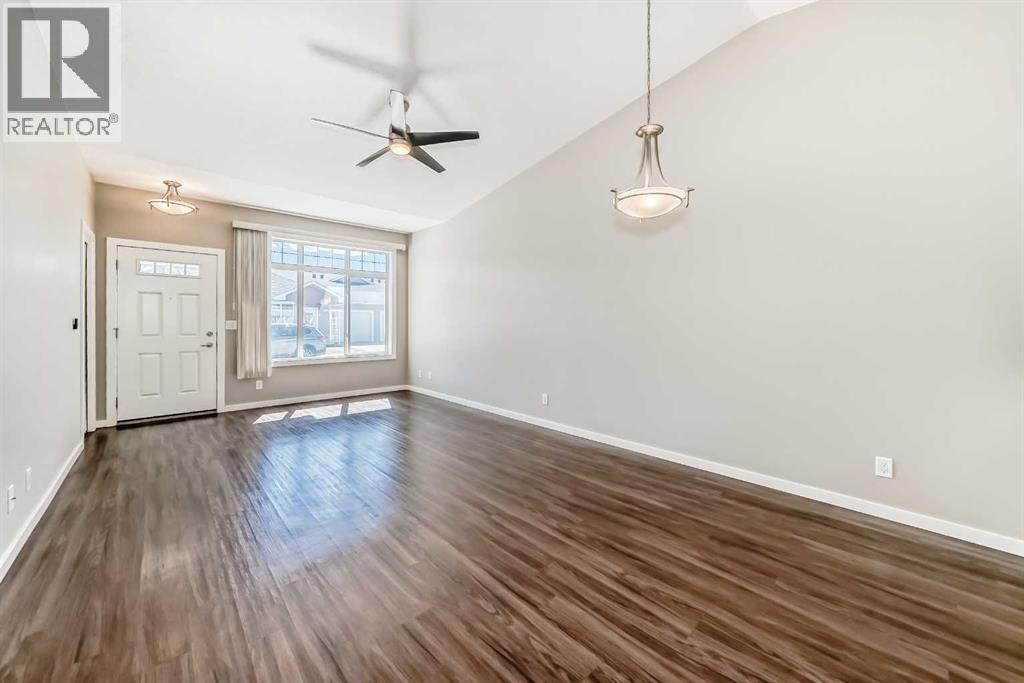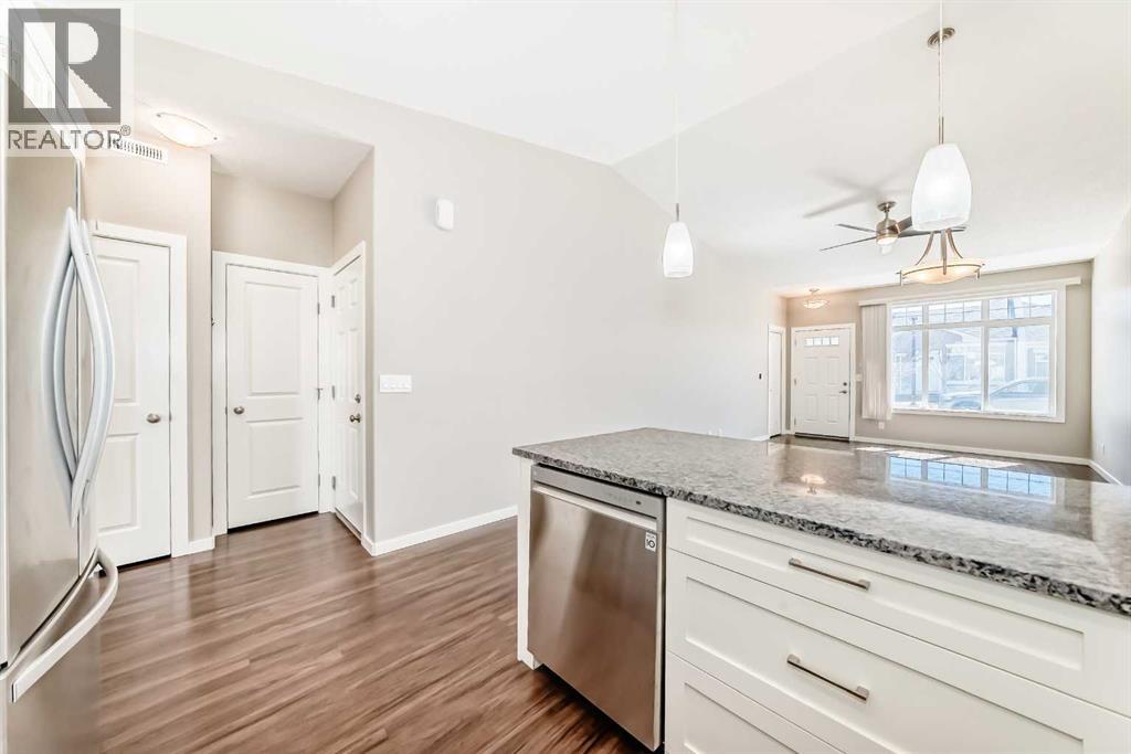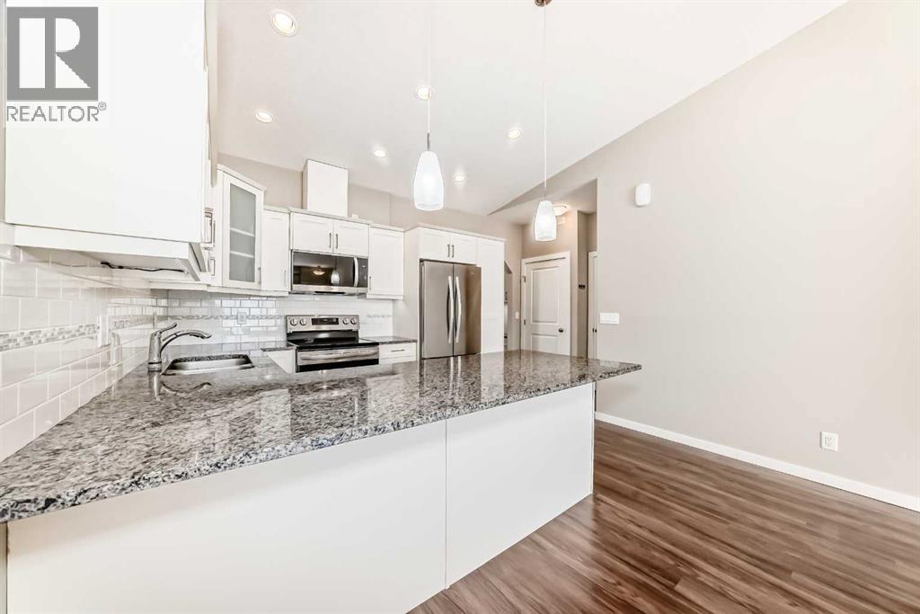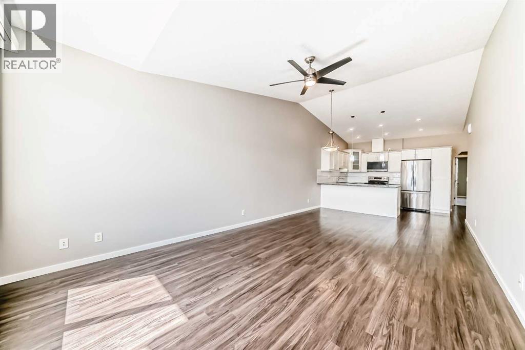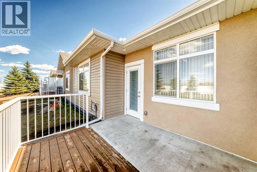 Welcome to this beautifully maintained bungalow townhouse in the desirable adult living community of Sunvale Place Villas. Designed with comfort and functionality in mind, this home features an open concept layout with vaulted ceilings that create an airy, spacious feel throughout. The modern kitchen is equipped with updated appliances and flows seamlessly into the living and dining areas, perfect for everyday living and entertaining. A convenient office nook provides the ideal space for working from home or staying organized. The primary bedroom offers a walk-in closet and a private 3 piece ensuite, while a second bedroom and full 4 piece bathroom provide flexibility for guests or additional living space. Enjoy the ease of in-suite stacked laundry and the added comfort of in-floor heating, which extends throughout the home and into the attached single car garage. Outside your private deck overlooks a peaceful green space, an ideal spot to relax and unwind. Sunvale Place Villas are ideally located close to shopping, services, and everyday amenities, with Calgary just a short 30 minute drive away, offering the perfect balance of convenience and quiet living. (id:58070)