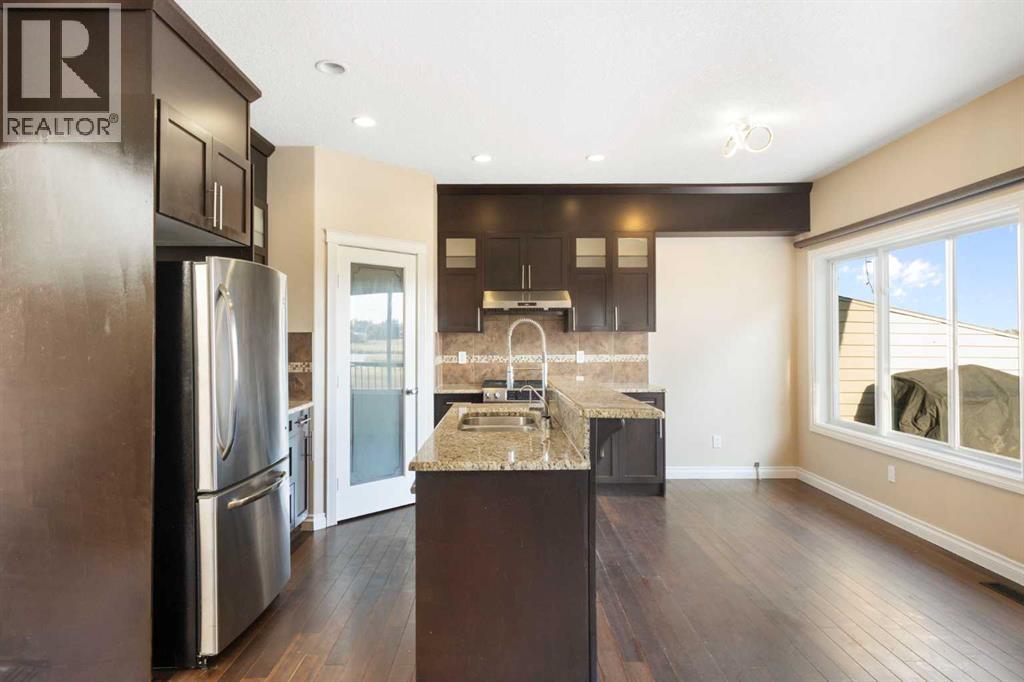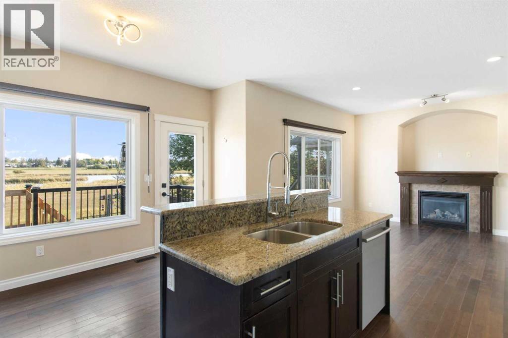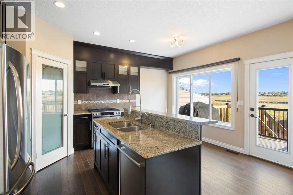 We are proud to present a wonderful opportunity to own a home on one of Strathmore’s most unique and desirable streets. Just minutes from downtown and backing onto a beautiful preserved wetlands area, this semi-detached home offers over 2,160 sq. ft. above grade, a partially finished walkout basement, and a double detached heated garage. Inside you’ll find 3 bedrooms and 2.5 bathrooms, including a spacious primary retreat with a 5-piece ensuite and private south-facing deck. The main floor features a bright living and dining area, kitchen with nook, and cozy sitting area with fireplace—all capturing stunning views of the wetlands. The partially finished basement includes bathroom rough-in, interior framing delineating a bedroom, bathroom, and large recreation area that walks out onto a lower covered patio—perfect for entertaining or extra living space. Notable upgrades include central A/C, on-demand hot water, mid-floor and basement in-floor heating, an upsized gas line with BBQ and range hookups, saltless water softener, LED lighting, upgraded toilets, and more. Exterior highlights include a new level 3 roof (August 2025). Strathmore is a vibrant community just 30 minutes east of Calgary, offering small-town charm with city convenience. With great schools, parks, and recreation, it’s ideal for families. Residents enjoy local shops, dining, and easy commuting, plus walking paths, golf, and nearby lakes for outdoor fun. Affordable housing and a welcoming atmosphere make Strathmore a perfect place to call home. A rare property with comfort, efficiency, and an unbeatable location in a thriving community. (id:58070)