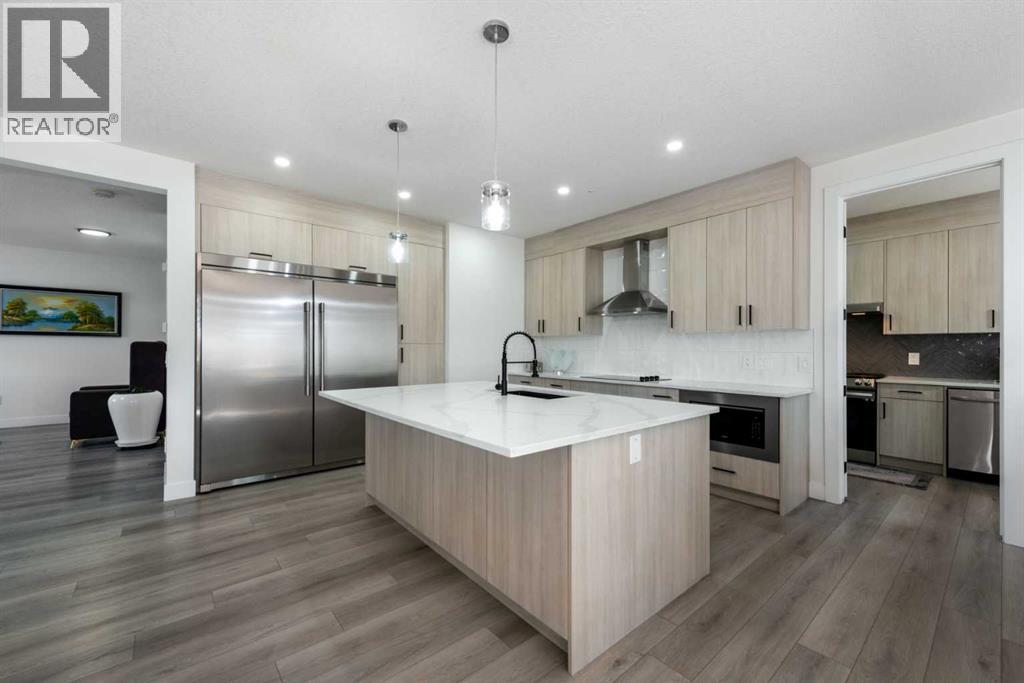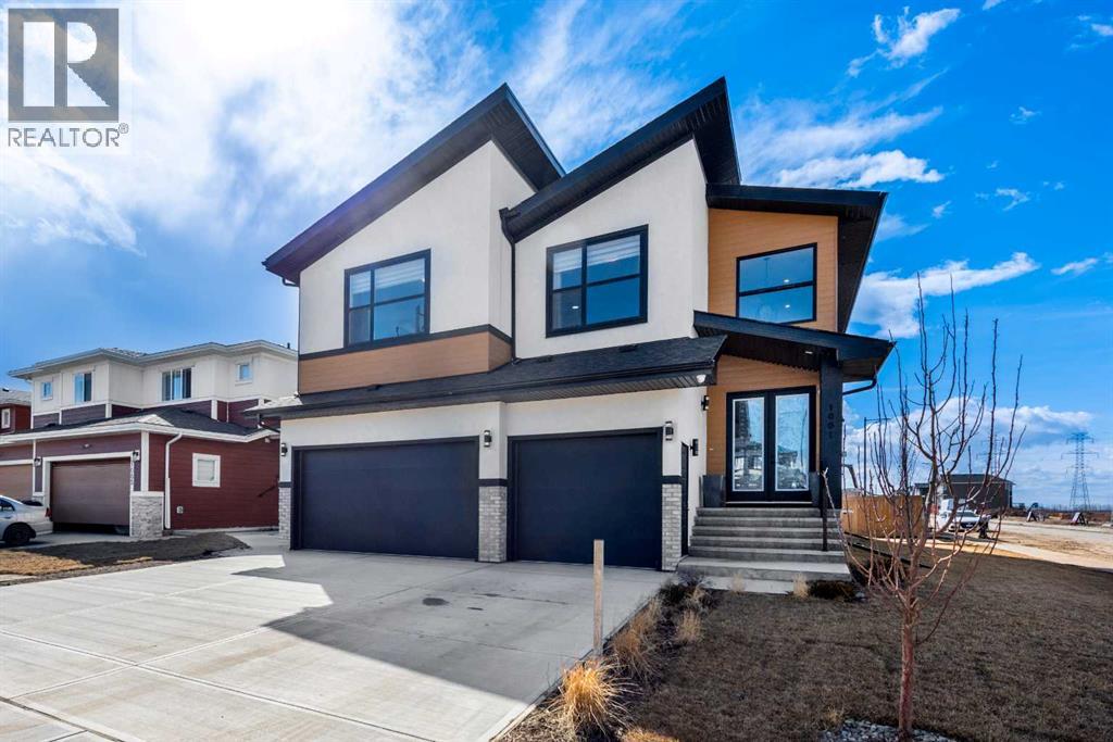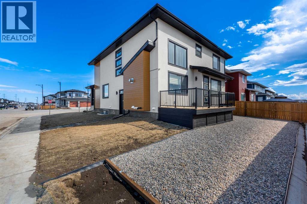 Open House April 25: 12-2pm, April 26 1-3pm | TRIPLE ATTACHED GARAGE | CORNER LOT | 56 FT WIDE LOT | 2024 BUILT | 3150 SQFT ABOVE GRADE | 4500+ SQFT TOTAL LIVING SPACE | 8 BEDS | 6 FULL BATHS | MAIN FLOOR BED & BATH | SPICE KITCHEN | 2 LIVING ROOMS | OPEN TO BELOW | 2 MASTER BEDROOMS | ILLEGAL SUITE + SECOND BASEMENT SECTION | SEPARATE ENTRANCES | STUCCO EXTERIOR | 9FT CEILINGS | LVP FLOORING | LOW MAINTENANCE LANDSCAPING | 5 MINS TO CHESTERMERE LAKE | Welcome to this stunning 2024-built estate home in the sought-after community of Waterford, Chestermere, offering 3149 sqft above grade and more than 4500 sqft of total living space. Perfectly positioned on a premium corner lot, this home features a striking stucco exterior, triple attached garage, and a thoughtfully designed layout ideal for large families and investors alike. The main floor showcases 9ft ceilings, durable LVP flooring, a spacious open-to-below living room filled with natural light, a second living area for added flexibility, and a modern kitchen complemented by a fully equipped spice kitchen. A convenient main floor bedroom and full bathroom complete this level. Upstairs, you’ll find generously sized bedrooms including two luxurious primary suites, each with their own ensuite bathrooms, offering comfort and privacy for multi-generational living. The basement is uniquely designed with two separate sections, both with their own entrances—one side featuring a 2-bedroom illegal suite, and the other offering a 1-bedroom setup with its own ensuite bath—providing excellent income potential or space for extended family. The exterior is fully landscaped with a low-maintenance design, perfect for easy upkeep year-round. Located just 5 minutes from Chestermere Lake, with quick access to amenities, schools, and major routes, this home is a rare opportunity to own a high-end, income-generating property in a prime location. (id:58070)