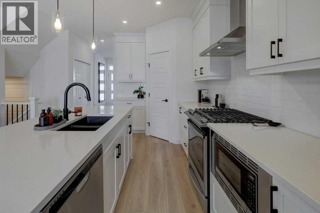 **Open House Saturday April 25th from 1 pm - 4 pm** A home where everyday life comes together the way you have always imagined, set in the sought after community of Chinook Gate.Step inside to a bright, open main floor with 9' ceilings and a layout that brings people together. The kitchen sits at the center, finished with quartz countertops, stainless steel appliances, a corner pantry, and a large island where meals, conversations, and daily routines naturally unfold. The adjoining dining and living areas create a comfortable, connected space, anchored by a warm gas fireplace and filled with natural light. A main floor office with a barn door offers a quiet place to work or focus, along with a convenient 2-piece bathroom.Upstairs, a centrally located bonus room welcomes you from the stairs and creates separation between spaces, adding flexibility for family life. The primary suite offers a calm retreat with a walk in closet and a well finished ensuite featuring dual sinks, quartz counters, tile flooring, and an oversized tiled shower. Step out directly to your 5x15 balcony. Two additional bedrooms, a full bathroom, and an upper level laundry room complete the second floor.The unfinished basement is ready for your ideas, offering space to grow as your needs evolve. Outside, the fully landscaped and fenced yard extends your living space with a 10'x20' deck, perfect for relaxing or entertaining. The heated double detached garage is finished with the same level of detail has the home. The space is brightly lit and shows off its epoxy floor. Providing excellent space for vehicles, storage, and hobbies.Located on a quiet street just steps to parks, pathways, and Chinook Winds Regional Park, this home also benefits from exciting growth in the community, including a newly announced K to 9 school.A thoughtful home in a community designed for connection, convenience, and long term value. Your next chapter starts here. (id:58070)