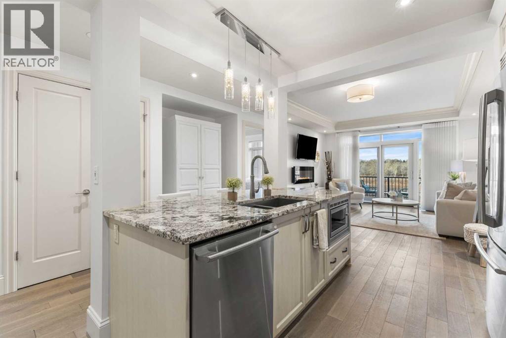 Welcome to Champagne, one of Calgary’s most architecturally striking and prestigious riverfront developments, renowned for its solid concrete construction, timeless European styling, and exceptionally quiet interiors. This beautifully updated ground-level residence with brand new patio door is one of the rare units on the open, river-facing line, offering peaceful views, unmatched privacy, and direct access to the Bow River and pathway system.Inside, the home feels calm, bright, and inviting. Large windows frame lush greenery and gentle river views, while the open-concept design creates a seamless flow between the living area, dining space, and gourmet kitchen. Outfitted with granite countertops, built-in appliances, a gas range, and an elegant island, the kitchen is perfect for cooking, hosting, or simply enjoying a quiet evening at home.Your private ground-level patio is truly special, ideal for morning coffee, stepping directly onto the pathway, or taking in the quiet beauty of this riverside setting. This level of indoor-outdoor living is exceptionally rare in luxury concrete buildings and highly coveted by those who value both convenience and nature.Thoughtful recent upgrades enhance the home’s comfort and style, including professional paint, new modern light fixtures, upgraded bedroom flooring, a brand-new full-size washer and dryer, a new built-in microwave, and tasteful bathroom updates. Every space feels refreshed, cared for, and move-in ready.The spacious bedroom offers peaceful comfort, while the oversized bathroom provides a spa-inspired retreat. Central air conditioning ensures ideal temperatures year-round.Champagne is meticulously maintained and offers an elegant lobby, secure underground titled parking (stall #103), a titled storage locker (#115), two elevators, a car wash bay, and beautifully kept common areas. The $584.97/month condo fee includes heat, professional management, reserve fund contributions, snow removal, trash, building insurance , and common-area maintenance, offering complete peace of mind.Set in the heart of Quarry Park, the location is exceptional. You’re steps from Carburn Park, Sue Higgins Off-Leash Dog Park, grocery stores, restaurants, cafés, fitness centres, the YMCA, professional services, green spaces, and, of course, the river. The community is walkable, quiet, and thoughtfully designed, with quick access to major routes for effortless commuting.This home has been a genuine sanctuary for the owner, a place of healing, comfort, and connection to nature. Letting it go is emotional, and it truly is the sale of a very special property. (id:58070)