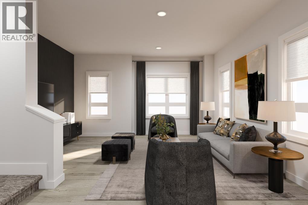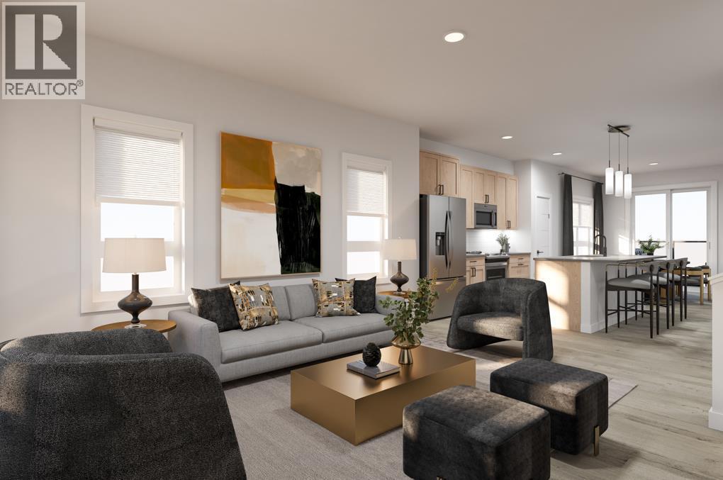 BEING AN END UNIT CHANGES EVERYTHING — and once you’ve lived with it, there’s no going back. MORE WINDOWS where you actually notice them. SUBTLE BUMP-OUTS that soften the edges of the space. Only one shared wall. The difference isn’t theoretical — it’s felt. The main living level is organized with intention, not guesswork. The living room sits at the front of the home, anchored by END-UNIT WINDOWS that pull in EXTRA LIGHT and give the space real presence. The kitchen holds the centre, grounded by a BREAKFAST BAR ISLAND with space to prep, perch, eat, and linger, without turning the room into an obstacle course.At the back, the dining area opens directly to the PATIO, creating a natural extension of the space. From here, the view opens to COMMUNITY GREEN SPACE AND PATHWAYS, adding visual breathing room and an outdoor connection that makes the patio feel like a true part of daily life — not an afterthought.Upstairs, THREE BEDROOMS are arranged with clear hierarchy and smart separation. The primary sits at the back with its ensuite and walk-in closet, while the middle bedroom benefits directly from the end-unit position — a subtle bump-out and SIDE WINDOW that brings in natural light most interior units simply don’t get. At the front, the third bedroom includes its own walk-in closet, quietly checking a few EXTRA boxes on the upper level.Down below, the same attention to practicality continues. The DOUBLE ATTACHED TANDEM GARAGE quietly does more than expected. Yes, it fits two vehicles — but it also absorbs the less glamorous parts of life. Bikes, bins, seasonal gear, and a dedicated UTILITY/STORAGE AREA that keeps the rest of the home feeling intentional instead of overrun. It’s the kind of feature that doesn’t shout, but dramatically improves day-to-day living.And then there’s Rockland Park — not just as a backdrop, but as an active part of your routine. This is a community designed to pull you outside: pathway-connected streets, parks woven throughout, a R ESIDENTS-ONLY CLUBHOUSE WITH POOL AND AMENITIES, and easy access to nature without giving up city convenience. Walks feel purposeful. Errands feel closer. Add quick access to Crowchild and Stoney, and life stays connected without feeling busy.It’s finished. IT’S AVAILABLE NOW. And it offers something that’s hard to replicate later: an end-unit position in a community people are actively choosing for how it lives. If light, privacy, and a neighbourhood that genuinely adds to your day matter — THIS ONE DESERVES YOUR ATTENTION. • PLEASE NOTE: Photos are VIRTUAL RENDERINGS of the same model – fit & finish may differ on final spec home. Interior selections & floorplans shown in photos. (id:58070)
