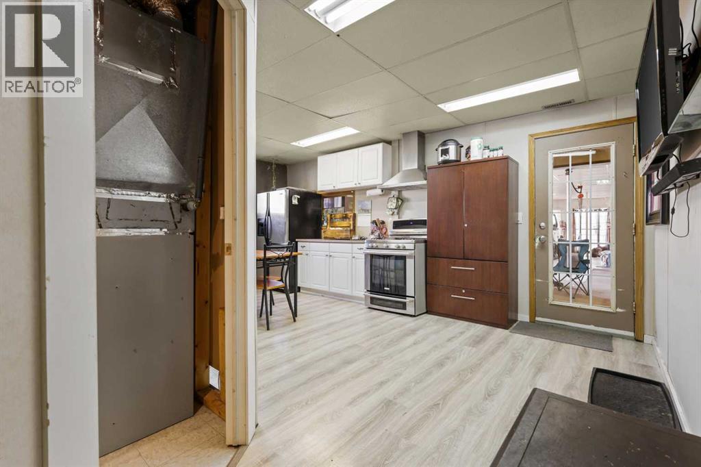 This prime retail/commercial property, located on a highly visible corner, offers over 3,000 sq. ft. of versatile space with immense potential for various business uses. The building includes multiple entrances, including a south-facing garage door and a back shipping/receiving door, providing excellent accessibility for customers, deliveries, and staff. It features a flexible layout that can beadapted for a large open retail area, separate office suites, or a combination of both, plus a fully functional 2-bedroom living suite with a kitchen, living room, and full bath, ideal for a live/work setup. Previously used as a working bay for seller's personal automotive's and, before that, as an Agricultural Parts Store, the building was renovated in 1992 and remains in good condition. Additional storage or parking is available with a cement pad at the rear. With the potential to divide the space into smaller units for extra income or use it as one large space. .This property is a rare find with endless possibilities. Whether you’re looking to start a new business, expand an existing one, or simply want to live and work in the same location, the potential here is incredible – all at an attractive price! Note heating is Propane (tank is owned by seller and comes with purchase) but can easily be hooked back up to Gas. (id:58070)