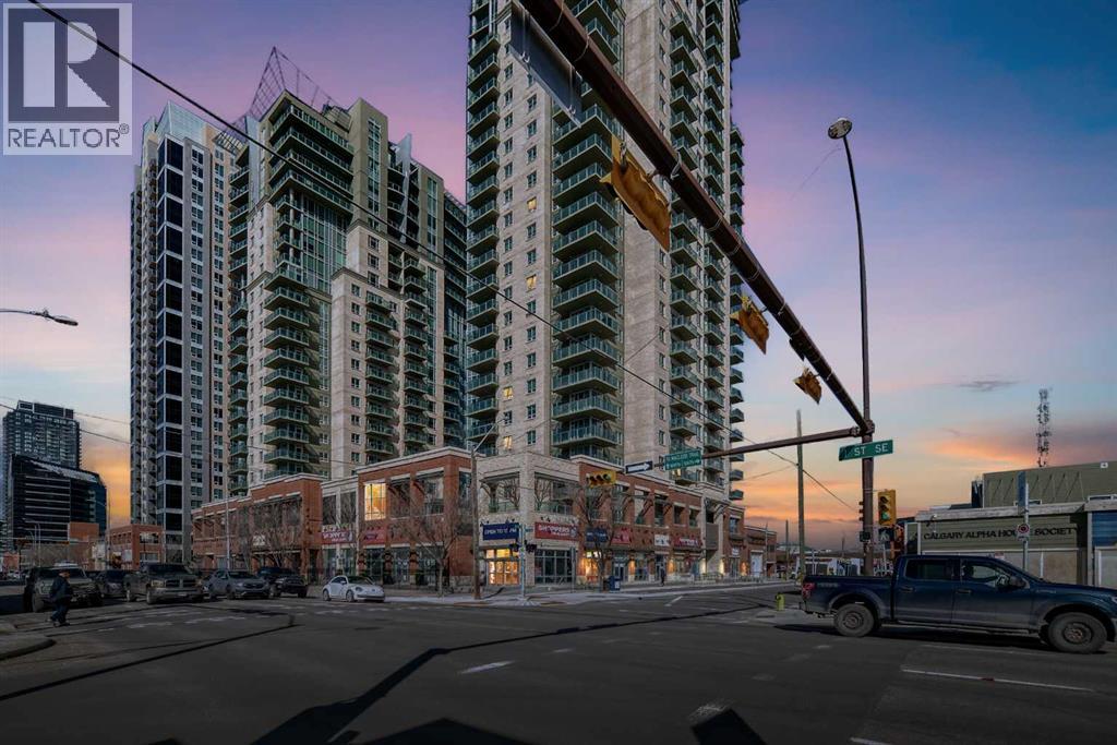 Corner unit with a rare wrap-around glass balcony showcasing unobstructed city views to the east and south. Enjoy beautiful natural light throughout the day and seasonal fireworks from your own outdoor space. This well-maintained unit offers the perfect setting for both quiet evenings and hosting on sunny days.Inside, the bright open-concept layout is complemented by 9-foot ceilings and expansive windows, creating a modern and airy feel. The kitchen features sleek cabinetry, stainless steel appliances, under-cabinet lighting, and generous counter space, flowing seamlessly into the dining and living areas. The primary bedroom includes a walk-through closet and private ensuite, while the second bedroom and full bathroom offer flexibility for guests, a home office, or shared living.Located in the heart of Victoria Park, you have unmatched convenience right at your doorstep — Shoppers Drug Mart and a dry cleaner below (with pick-up and delivery service), plus countless walkable restaurants, cafes, and everyday amenities. Steps to 17th Avenue, Stampede Park, the Saddledome, BMO Centre, and Victoria Park C-Train Station, with quick access to Deerfoot Trail, Memorial Drive, and Macleod Trail. Enjoy the energy of downtown living without the constant congestion.Complete with titled underground parking and additional storage, and set within a well-managed building offering premium amenities including a fitness centre, hot tub, party room, and theatre room. Whether you’re looking for a home or an investment, this is a standout opportunity in one of Calgary’s most vibrant communities. (id:58070)