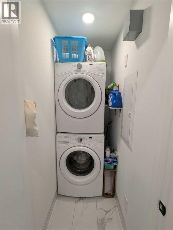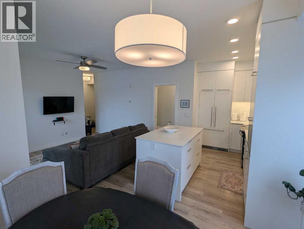 Possibly the best location on the block. A rare opportunity to own a two-level end unit apartment in Calgary’s award-winning University District. As a coveted end unit, this home enjoys more sunlight with extra windows on the main and upper floors. Surrounded by trees and offering partial unobstructed views of University Ave, this residence puts you in the heart of the action while still a block away from main street for privacy and outdoor relaxation. Enjoy two distinct south-facing outdoor spaces, including a main-floor patio with a gas line for barbecue season, and an upper balcony for soaking in the sun. The benefit of being on the main floor is your own private exterior entrance—perfect for pet owners, cyclists, and welcoming guests who can park right out front—alongside secure interior access to the building lobby. The thoughtful floor plan separates your social and private spaces, with living and eating areas plus a convenient powder room on the main, while the bedrooms are tucked away upstairs with two full spa-like bathrooms. This family-occupied home has been kept in pristine condition and features high-end custom additions that set it apart such as a high-end ceiling fan, a patio screen door, built-in shelves for a desk area and two TV mounts for maximizing floor space. Luxury finishings include wide-plank flooring, marbled tile, stylish barn-door closets, a gourmet kitchen with sleek built-in appliances, quartz countertops, full-height cabinetry, island seating, and undermount lighting. All drawers and cabinets are soft-close! This unit includes one titled stall in the heated underground parking, a dedicated storage locker, and use of the building's bike room.Experience the best of the University District—where sustainable design meets vibrant urban energy. Boasting a Walk Score of 90, this unit is steps away from Cineplex, Shoppers Drug Mart, and a curated selection of restaurants and exercise facilities. Close to the University of Calgary, Alberta Ch ildren’s Hospital, and Foothills Medical Centre. Call your favorite agent today, as this won’t last long! (id:58070)