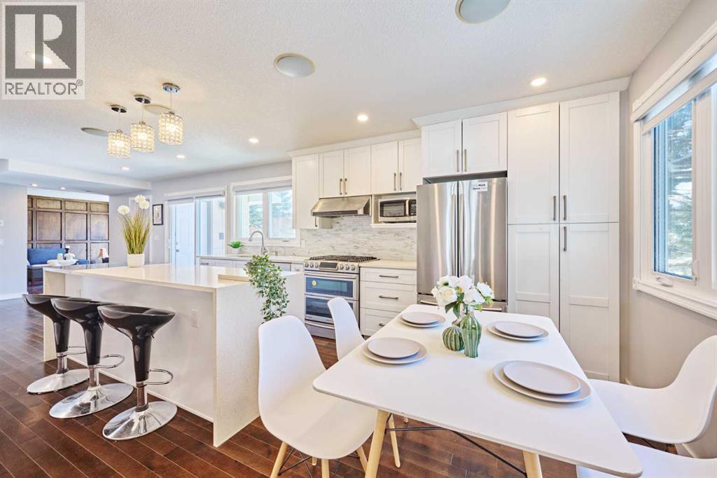 **OPEN HOUSE: 1-4 PM SAT&SUN APR 18&19,2026** Welcome to 103 Pump Hill Road SW, an exceptional opportunity to own a spacious, beautifully updated family home in one of Calgary’s most prestigious and established southwest communities. Perfectly positioned in highly desirable Pump Hill, this residence offers an impressive blend of scale, comfort, and long-term value in a location known for its mature tree-lined streets, outstanding schools, and convenient access to some of the city’s best lifestyle amenities. Inside, the home showcases extensive updates completed throughout the years, including updated flooring, a fully renovated kitchen, replaced windows, fresh paint, and refreshed interior finishes that create a bright, clean, and move-in-ready feel. The main level offers expansive principal living spaces designed for both everyday family life and entertaining, featuring a welcoming front living area, a beautifully modernized kitchen with full-height cabinetry, quartz-style counters, stainless steel appliances, a large central island with seating, and a sunny dining nook overlooking the yard. A separate family room adds warmth and character with rich wood detailing, built-ins, and a fireplace setting that gives the home a timeless, distinguished feel. Upstairs, you’ll find five bedrooms, providing a rare amount of space for growing families, home offices, or multi-purpose living. The spacious primary retreat includes its own 5-piece ensuite, while the remaining four bedrooms are served by a full shared bathroom, offering a practical and family-friendly upper-floor layout. The stairway and upper level carry a subtle architectural elevation that enhances the home’s openness and presence without sacrificing warmth. The basement adds even more flexibility with a large developed recreation area and an additional room that can easily serve a variety of lifestyle needs, whether for guests, hobbies, fitness, or work-from-home use. Outside, the home enjoys a generously sized lot with mature landscaping, excellent privacy, and an elevated rear deck that extends the living space outdoors. From this coveted location, you are moments from Glenmore Reservoir, North Glenmore Park, Heritage Park, Southland Leisure Centre, Southland LRT Station, shopping, parks, and highly regarded schools, making daily life exceptionally convenient while preserving the quiet, upscale residential feel that makes Pump Hill so sought-after. This is a rare chance to secure a large, updated home in a premier community where properties of this size, setting, and potential are always in demand. (id:58070)