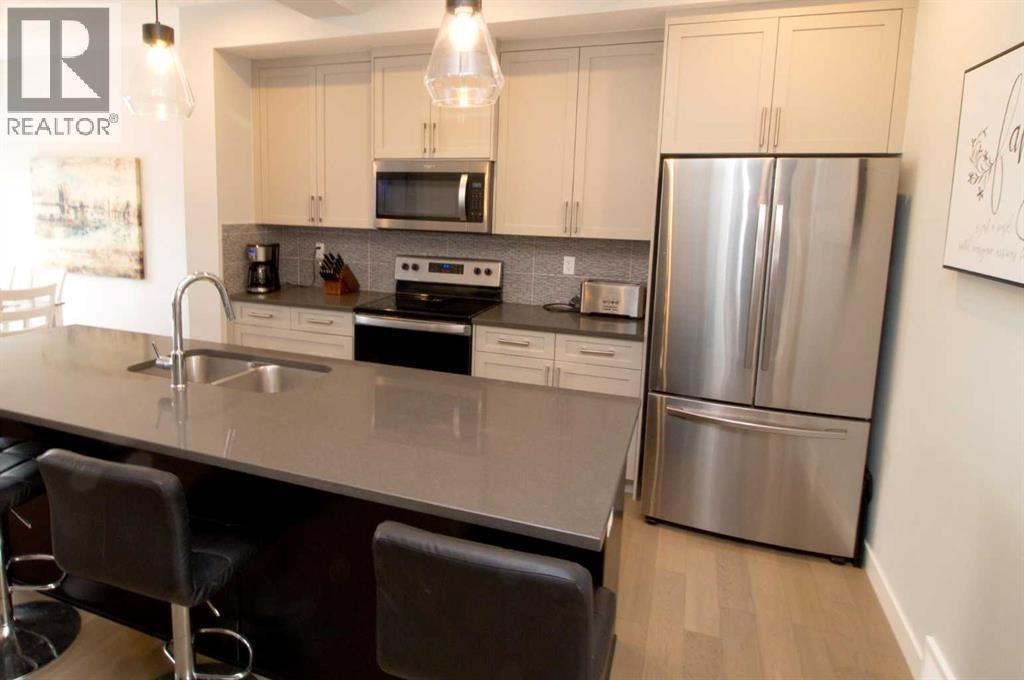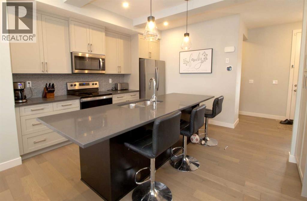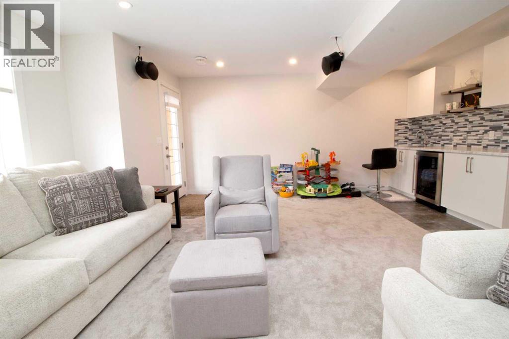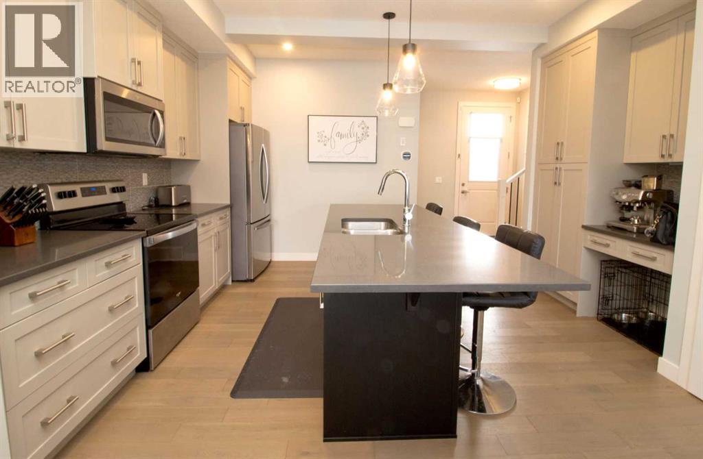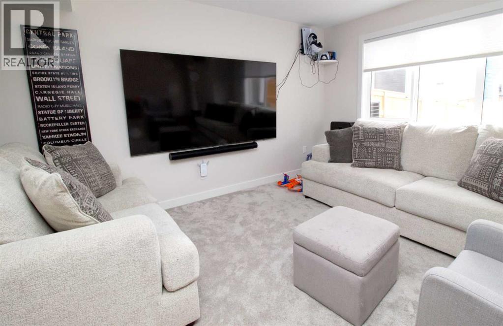 Fully Developed Walkout + West-facing Backyard — uncommon among Cochrane’s semi-detached options — come on in and feel the afternoon light through the west windows as 9-ft ceilings lift the main floor and the great room gathers everyone by a clean electric fireplace; open sightlines, laminate underfoot, and an island kitchen with quartz counters, pantry, and a stainless-steel package keep daily life easy; weekday breakfasts at the island, Saturday barbecues on the rear deck with BBQ gas line — sunny, simple, social; upstairs, the primary suite is calm with a walk-in closet and private ensuite, upper-level laundry is a small daily luxury, and two additional bedrooms flex for guests, work, or hobbies; downstairs is the difference: a bright, finished walkout with wet bar and 3-pc bath — set it for movie night, a quiet gym corner, or weekend games — then step straight to the yard and catch the day’s last light; add the single attached garage for year-round convenience and the picture is complete: a bright, easy-to-live-in semi that lives larger where it counts; location matters too — Sunset Ridge places you close to parks, pathways, and everyday conveniences; RancheView (K–8) and St. Timothy High are nearby, and a future community centre and additional school are anticipated within walking distance (timelines not guaranteed); getting out and about is straightforward — ˜40–45 min to the mountains, ˜30 min to Calgary/Costco, and ˜45 min to the airport — a composed home with the rare pairing of a finished walkout and west yard, ready for your everyday rhythm... (Fellow Real Estate Agents: Please see private remark.) (id:58070)