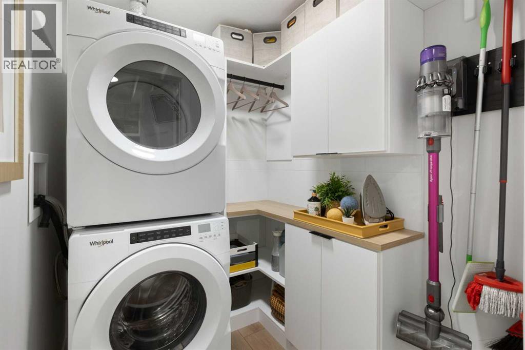 Welcome to this exceptional, fully upgraded 2-bedroom plus den corner unit in the heart of the highly sought-after Wolf Willow community. Offering 1,165 square feet of beautifully designed main-floor living space and over $70,000 in custom renovations, this home seamlessly blends luxury, comfort, and convenience. The expansive primary retreat easily fits a king-sized bed and features a spa-inspired 4-piece ensuite with double vanities, a 5-foot walk-in shower, and a custom California walk-in closet complete with built-in organizers and drawers. The generous second bedroom includes a custom step-in closet and sits next to a stunning 4-piece guest bath with a full-size tub and tile carried to the ceiling. A versatile den with double French doors creates the perfect home office, studio, or cozy reading space. Designed for both elevated entertaining and everyday living, the chef’s kitchen is anchored by a show-stopping 10-foot quartz island. You’ll also find ceiling-height cabinetry with pull-out drawers, upgraded stainless steel appliances, a built-in coffee bar, undermount lighting, and a garburator. The kitchen flows effortlessly into a dedicated dining area and a bright, inviting living room featuring a fireplace and expansive windows that flood the space with natural light. Refined finishes continue throughout with 9-foot ceilings, luxury vinyl plank flooring, air conditioning, custom wood paneling with built-in soundproofing, and 3M privacy window tinting. The full-size in-suite laundry room offers additional custom cabinetry for optimal storage and functionality. This unit includes a titled, oversized accessible underground parking stall and two full-size storage lockers—one underground and one conveniently located on the main floor. Residents enjoy secure bike storage, ample visitor parking, and direct access to a private walk-out patio with a gas hookup for a BBQ and fire table, which also serves as a secondary entrance. Ideally located just steps from Fis h Creek Park, the Bow River, a 9-acre off-leash dog park, 80 kilometers of scenic bike paths, playgrounds, and Blue Devil Golf Course, this home offers the perfect balance of nature and urban convenience. Everyday amenities, coffee shops, and major routes including Stoney Trail and Macleod Trail are just minutes away. Set within a pet-friendly building with low condo fees and a welcoming community atmosphere, this move-in-ready condo is an outstanding opportunity for first-time buyers, downsizers, or investors alike. Experience the best of Wolf Willow living—schedule your private showing today. (id:58070)