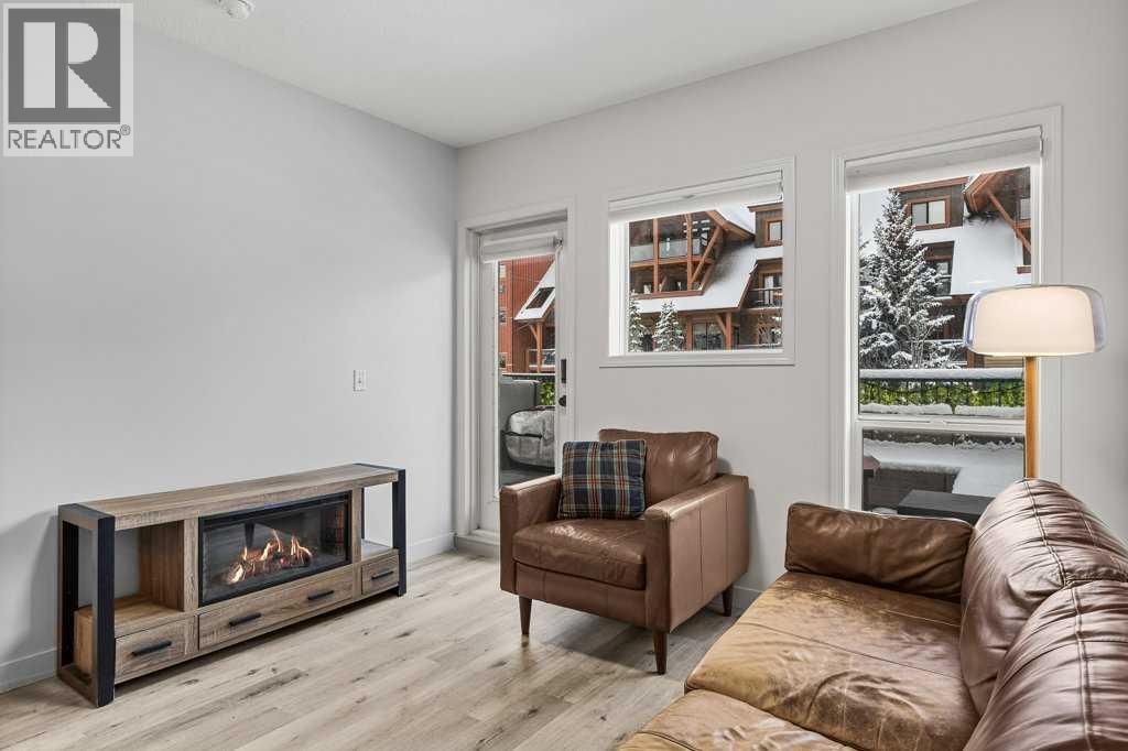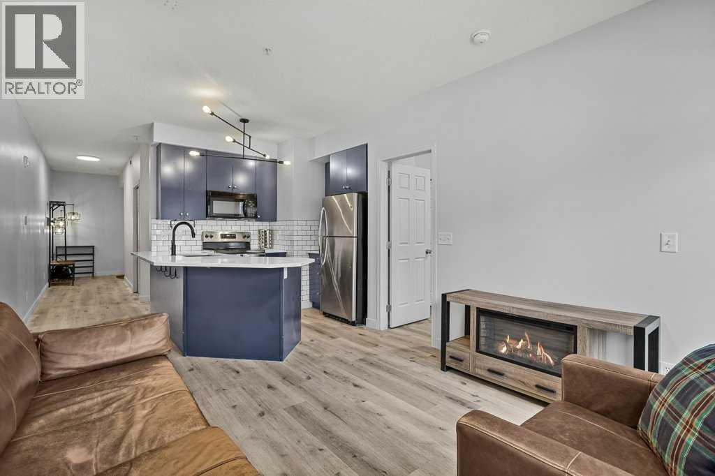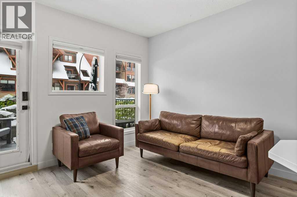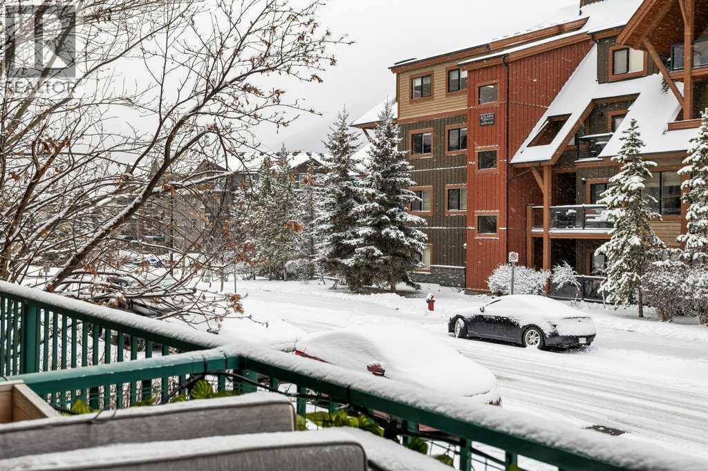 Perfect Entry-Level Home in the Heart of Canmore; This beautifully updated 2-bed, 1-bath residential condo offers incredible value for anyone looking to enter the Canmore market. Centrally located and just moments from downtown, it combines style, comfort, and everyday convenience in one smart package. Inside, you’ll love the modern finishes: stainless steel appliances, white granite countertops with matching backsplash, durable vinyl flooring, and fresh paint throughout. The spacious primary bedroom provides a calm retreat, while the bright living area flows seamlessly onto a large south-facing balcony—a true outdoor extension of your living room all summer long, complete with mountain views. Practical features make life easy: two underground parking stalls (titled and assigned), bike storage, an assigned secure storage area, elevator access, and pet-friendly living. Low condo fees and property taxes keep monthly costs down, making this an excellent opportunity for first-time home buyers or local residents looking for a smart upgrade. Please note: zoning requires residents to work in Canmore a minimum of 20 hours per week (or after 2 years in Canmore, the Bow Valley). A stylish, move-in-ready home with everything you need—at an unbeatable entry-level price point. Welcome home! Easy to show! (id:58070)