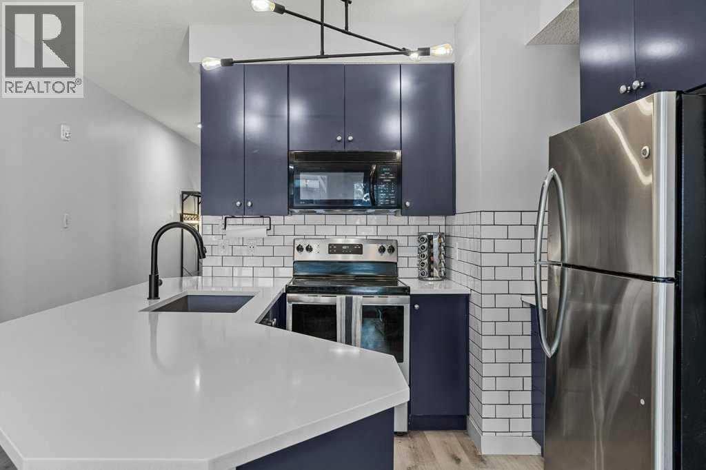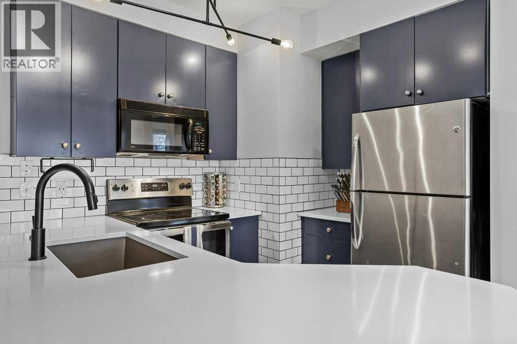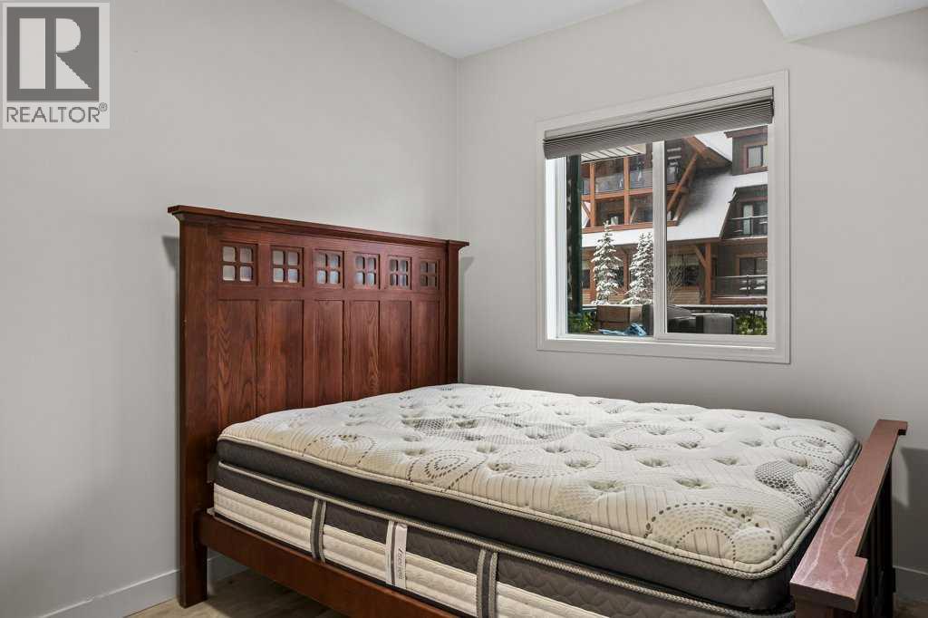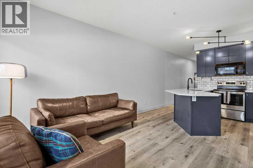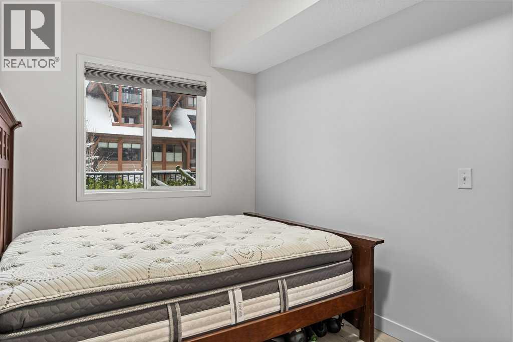 Perfect Entry-Level Home in the Heart of Canmore; This beautifully updated 2-bed, 1-bath residential condo offers incredible value for anyone looking to enter the Canmore market. Centrally located and just moments from downtown, it combines style, comfort, and everyday convenience in one smart package. Inside, you’ll love the modern finishes: stainless steel appliances, white granite countertops with matching backsplash, durable vinyl flooring, and fresh paint throughout. The spacious primary bedroom provides a calm retreat, while the bright living area flows seamlessly onto a large south-facing balcony—a true outdoor extension of your living room all summer long, complete with mountain views. Practical features make life easy: two underground parking stalls (titled and assigned), bike storage, an assigned secure storage area, elevator access, and pet-friendly living. Low condo fees and property taxes keep monthly costs down, making this an excellent opportunity for first-time home buyers or local residents looking for a smart upgrade. Please note: zoning requires residents to work in Canmore a minimum of 20 hours per week (or after 2 years in Canmore, the Bow Valley). A stylish, move-in-ready home with everything you need—at an unbeatable entry-level price point. Welcome home! Easy to show! (id:58070)