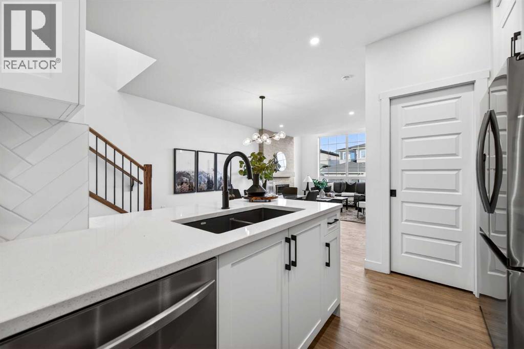 Welcome to 1055 Bayview Crescent, a beautifully designed street-side luxury townhome with NO CONDO FEES! This interior Jasper townhome features an attached double garage, a rooftop patio, and low-maintenance living. The tastefully designed home offers over 1400 sq ft. of above-grade living space plus an unfinished basement with 9' ceilings, ready for your design ideas. On the main floor, you will find soaring ceilings in the open-concept living space and large windows that let natural light flow through. The chef-inspired kitchen offers beautiful cabinetry and stone countertops and is well-equipped with stainless steel appliances. The kitchen is open to the dining and living room, perfect for entertaining family and friends. Complimenting the main floor is a convenient half bath, storage and entry from the attached garage. Venturing upstairs, you will find a spacious primary retreat with a spa-like ensuite, a spacious shower, and a generous walk-in closet. Two additional bedrooms, a full bath, a 4-piece bath and laundry complete the upper level. Outside, enjoy time on your upper south-facing rooftop patio, which is situated above the garage. Bayview is a beautiful community with parks, benches and pathways that meander throughout the community and along the canals. Kids and adults alike will enjoy the outdoor basketball nets, gym, amphitheatre, and tennis courts, which convert into a skating rink in the winter. Come and see all the amenities the community offers for yourself! *RMS has been applied to the construction drawings provided by the builder. Taxes to be assessed. (id:58070)