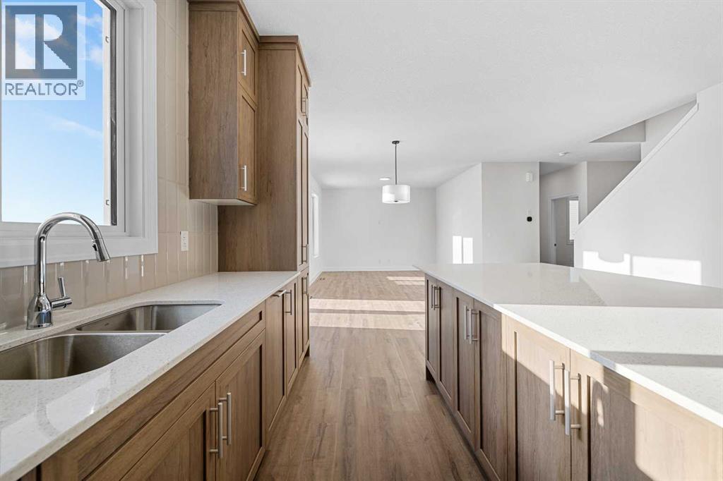 Airdrie is one of Alberta’s fastest-growing cities, offering a perfect blend of modern conveniences and a close-knit community feel. Among its many vibrant neighborhoods, Southwinds stands out as a desirable, family-friendly community with excellent amenities, green spaces, and accessibility. If you’re looking for a brand-new home that checks all the right boxes, this stunning 5-bedroom, 3.5-bathroom property in Southwinds is an ideal choice. Sitting on a spacious pie lot of over 7,000 square feet, this home provides ample outdoor space for gardening, entertaining, or simply enjoying the extra room for your family. Designed with both functionality and style in mind, the house features an open-concept layout, a main-floor bedroom with a full bath, and luxury vinyl plank flooring throughout—no carpet at all! Whether you’re a growing family, an investor, or someone looking for a fresh start in a modern community, this property offers everything you need. One of the standout features of this home is its functional and spacious layout, making it suitable for large families or multi-generational living. The main level welcomes you with a bright and airy open concept design. The spacious living room is perfect for hosting guests, relaxing after a long day, or spending quality time with loved ones. Large windows bring in an abundance of natural light, creating a warm and inviting atmosphere. Adjacent to the living room is the modern kitchen, which boasts ample cabinetry, sleek countertops, and high-end stainless steel appliances. Whether you’re a seasoned cook or someone who enjoys preparing quick meals, this kitchen offers the space and convenience you need. A large island provides additional workspace and doubles as a breakfast bar, making it an excellent spot for casual meals or morning coffee. The dining area, seamlessly connected to the kitchen, offers plenty of space for a large dining table, making family dinners and gatherings even more enjoyable. Sliding glass door s lead to the expansive backyard, which is one of the home’s most impressive features. Main Floor Bedroom & Full Bath – Ideal for Guests or Multi-Generational LivingOne of the biggest advantages of this home is the main-floor bedroom with a full bathroom. This is a rare and highly desirable feature, especially for families with elderly parents, frequent guests, or anyone who prefers to have a bedroom on the ground level. The convenience of having a full bath nearby ensures privacy and ease of access without the need to climb stairs. Moving to the second level, you’ll find a spacious family room, providing an additional living space that can be used as a media room, playroom, or home office. This area is perfect for families who need extra room to relax without using the main living area downstairs. The primary bedroom is a true retreat, offering ample space, a large walk-in closet, and a luxurious ensuite bathroom. Featuring dual sinks, a spacious shower, and elegant finishes. (id:58070)