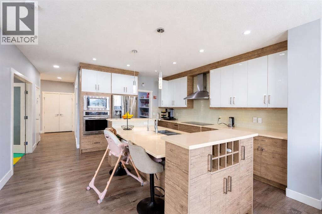 Stunning Walk-Out Family Home With Illegal Basement Suite and Solar Panels in Baysprings!Welcome to this beautifully maintained 2-storey home offering approximately 2,517 sq ft above grade, plus a fully developed walk-out basement with an illegal suite—perfect for extended family or multi-generational living.Step inside to discover 9’ ceilings, elegant LVP and tile flooring, and a thoughtfully designed main floor layout. The heart of the home is the spacious chef-inspired kitchen featuring quartz countertops, a large custom island, stainless appliances, and a convenient walk-through pantry/mudroom. The inviting family room showcases custom built-ins and a cozy fireplace, while a main-floor office/den and full bath add flexibility and convenience.Upstairs, you’ll find 4 generously sized bedrooms, a versatile bonus room, and upper-level laundry. The impressive primary retreat (15’9” x 13’2”) features a recessed ceiling, custom walk-in closet, and a luxurious 5-piece ensuite with tile and glass shower—your private sanctuary after a long day.The fully finished walk-out basement offers 2 additional bedrooms, a full bath, separate living area, kitchen space, and private entrance, providing excellent potential for extended family accommodation.Enjoy year-round comfort with central A/C and energy efficiency thanks to solar panels—reducing utility costs significantly (summer months averaging $0 electricity, winter typically under $200).Outdoor living is just as impressive with a 16’ x 10’ low-maintenance deck, covered patio at grade, wide open backyard, playgrounds, and a nearby elementary school. The double attached garage (17’7” x 25’9”) and oversized garage pad complete the package.Located in the highly desirable community of Baysprings, this home perfectly blends modern finishes, functional design, and an unbeatable location.Don’t miss this rare opportunity—schedule your private showing today! (id:58070)