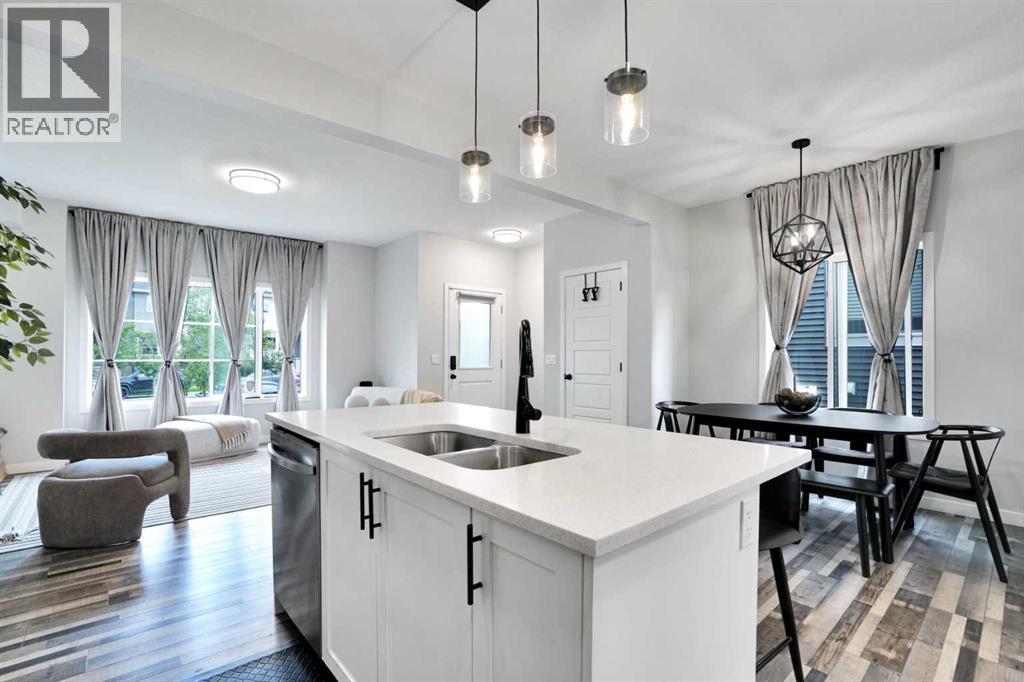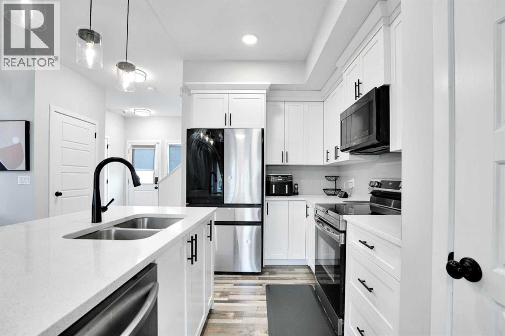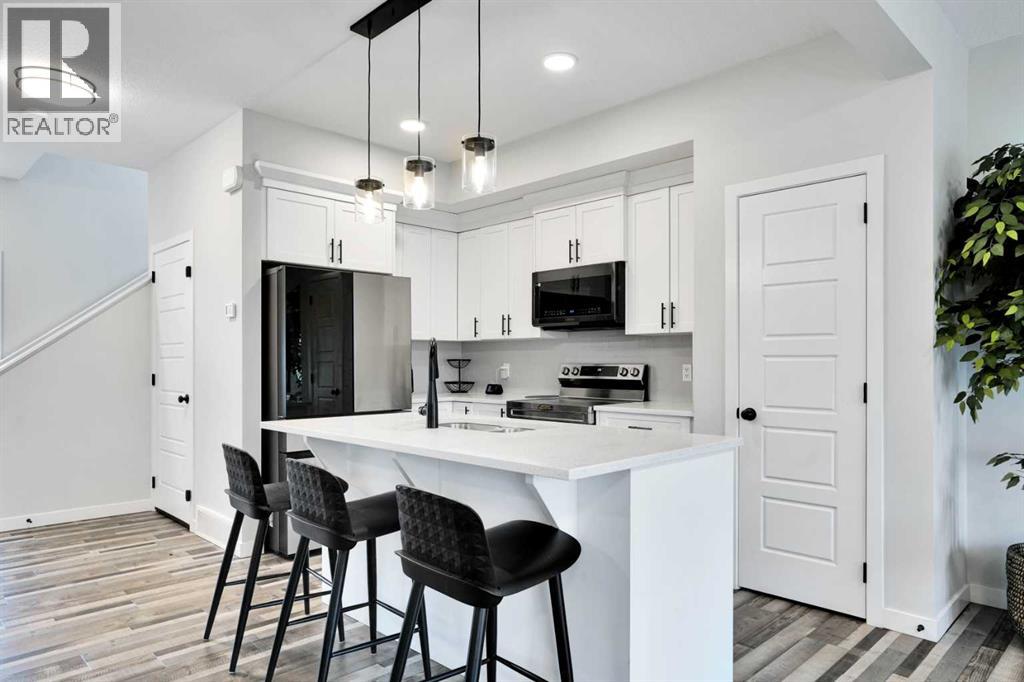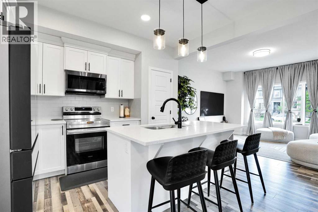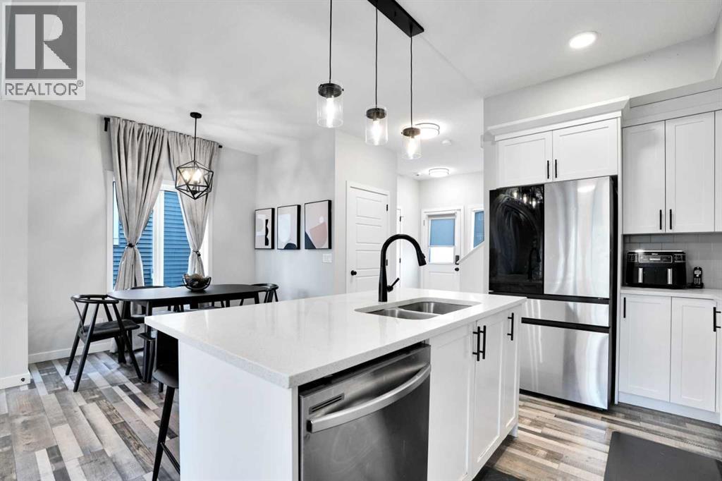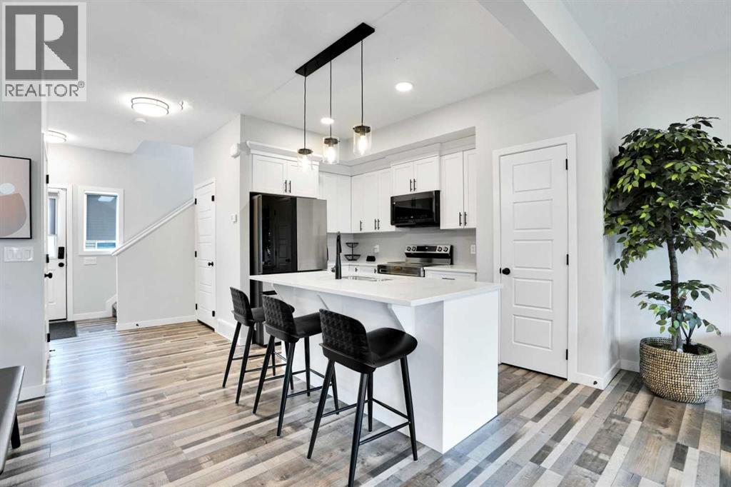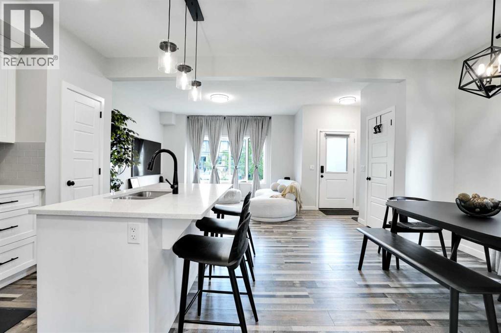 2020 built end-unit home with incredible curb appeal and NO CONDO FEES! As you arrive, you’ll notice the fully fenced front and back yard with stamped concrete walkways for an elegant first impression. Step inside to an open-concept main floor featuring high-quality vinyl flooring, stylish lighting, and an abundance of storage. The bright living room is filled with natural light from oversized windows, while the dining area flows seamlessly into the gleaming white kitchen—complete with stainless steel appliances, quartz countertops, an eat-up island, contrasting black finishes, and a large pantry. A conveniently located powder room sits near the main-floor laundry and back door.The south-facing backyard includes a gas BBQ hookup and access to the heated double detached garage via paved alley. Upstairs, you’ll find two generously sized bedrooms, a sleek main bathroom, and a spacious primary suite with walk-in closet and 4pc ensuite.The basement has been transformed into an illegal suite with a separate entrance, currently operating as a successful Airbnb producing excellent income. It features large windows, a second living space, additional bedroom and bathroom, plus extra storage.Additional highlights include recessed lighting, central A/C, and proximity to schools, shopping, parks, and pathways. This immaculate home offers the perfect combination of comfort, style, and income potential—truly a rare find! (id:58070)
