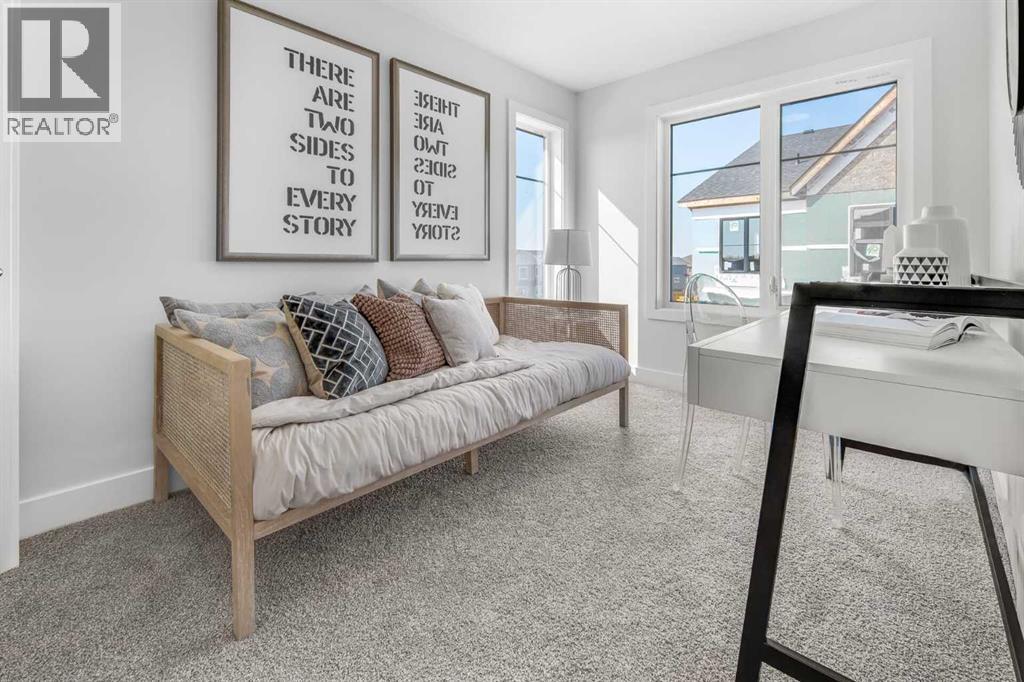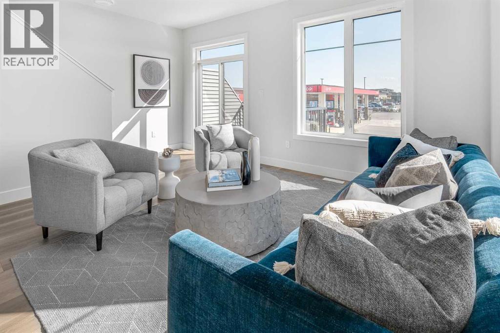 The brand new ‘Holiday’ model by Brookfield Residential is now available in the vibrant community of Seton! This brand-new townhome blends contemporary design with everyday functionality, offering over 1,400 sqft, 3 bedrooms, 2.5 bathrooms, a ground-floor flex/office space, and a private double attached garage - all in one of Calgary’s most desirable master-planned neighbourhoods. The open-concept main floor showcases a timeless kitchen featuring full-height cabinetry, elegant quartz countertops, a built-in hood fan and microwave, and a premium stainless-steel appliance package. The oversized island with pendant lighting provides the perfect place for casual dining or entertaining. The kitchen flows seamlessly into the bright living and dining areas, highlighted by a wall of windows that flood the space with natural light. Step out onto your private balcony - ideal for summer BBQs or a morning coffee. A large laundry room with additional storage and a convenient 2-piece powder room complete the main level. The upper level features a spacious ~11’ x 12’ primary suite which includes a walk-in closet and a private ensuite with a walk-in shower, offering a relaxing retreat at the end of the day. Two additional bedrooms and a full bathroom complete the upper floor, providing plenty of room for family, guests, or a home office. On the lower level, a versatile den off the entryway and private double attached garage offers endless flexibility - the perfect space for a home office, gym, or creative space. The private double attached garage keeps your vehicles warm and secure all year long. This home includes numerous upgrades such as central A/C rough-in, a BBQ gas line + gas line to the kitchen range, 42” upper cabinets, and an enhanced interior selections package. Backed by both Brookfield’s comprehensive builder warranty and Alberta New Home Warranty, this property offers complete peace of mind. Set in Seton, known for its fantastic school, YMCA, South Health Campus, amen ities, parks, playgrounds, and convenient access to major routes - this is the perfect place to call home. If you’re looking for a low-maintenance townhome that combines style, functionality, and quality craftsmanship - welcome to the Holiday by Brookfield Residential in Seton. *Please note: Photos are for representation purposes only, and exact finishes may vary. (id:58070)