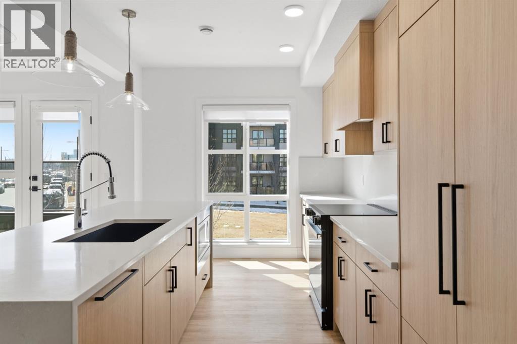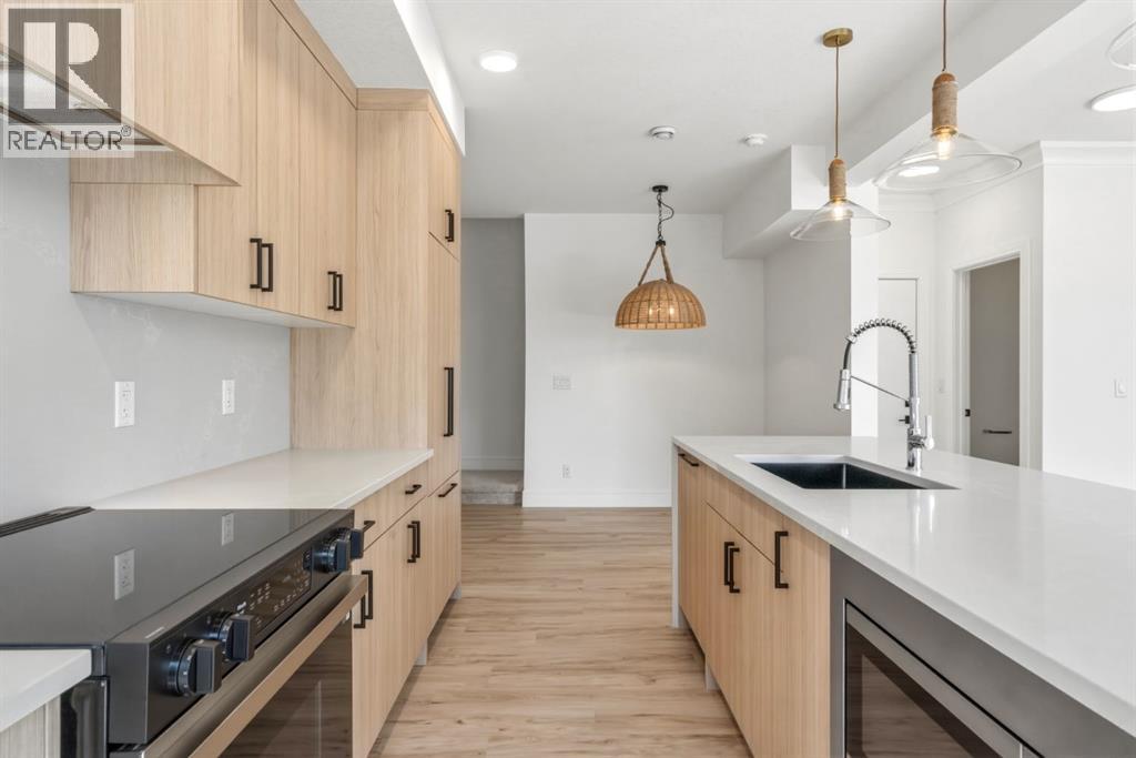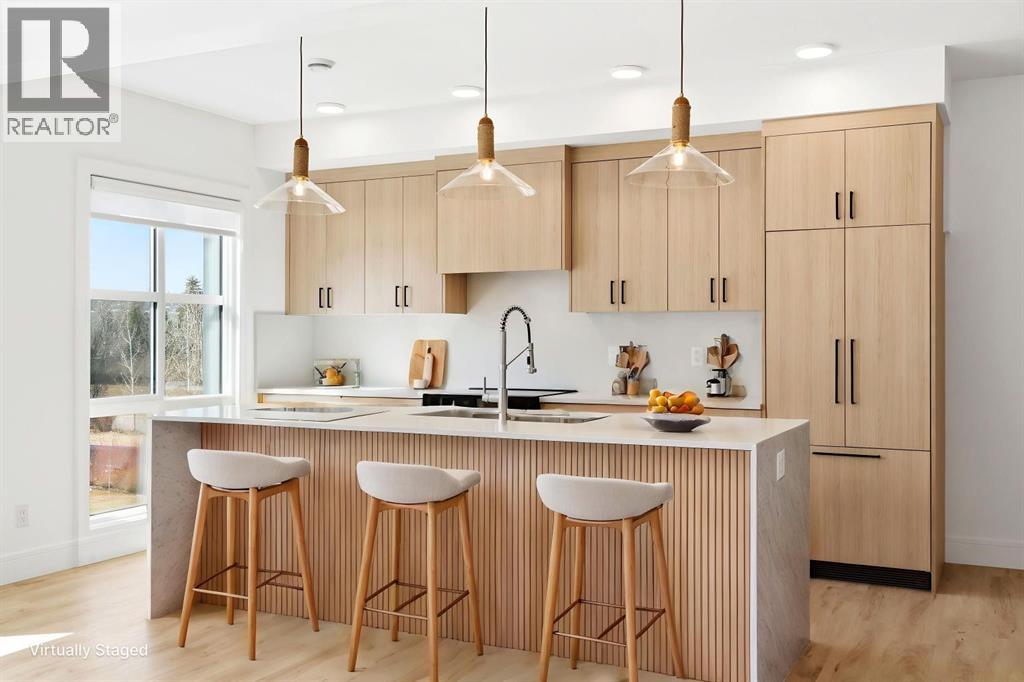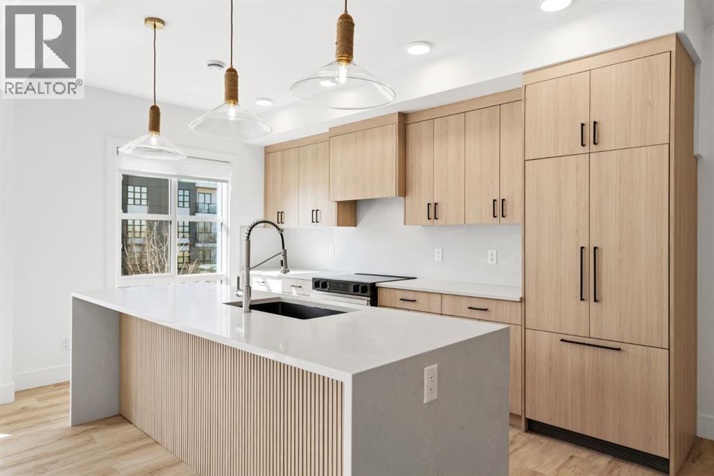 MODERN ELEGANCE IN CALGARY’S VIBRANT UNIVERSITY DISTRICT! This beautifully appointed townhome by Rohit Homes is a masterpiece of craftsmanship and contemporary style, offering an array of high-end upgrades that elevate everyday living to something truly special. Welcome to Dean’s Landing one of Calgary’s most exciting and sought-after communities.Step inside to discover beautiful luxury vinyl plank flooring, setting the tone for modern sophistication from the moment you arrive. The open-concept layout is flooded with natural light, enhanced with ample pot lights that illuminate every thoughtfully curated detail. At the heart of the home is a kitchen where form meets function white quartz countertops cascade in a stunning waterfall design, complemented by a matching quartz backsplash for a seamless, luxurious finish. The built-in refrigerator and dishwasher are concealed within cabinetry for a sleek, cohesive aesthetic, while a powerful hood fan integrates seamlessly into the overall design.Step out onto your private balcony, equipped with a BBQ gas line and rough-in for AC designed for year-round outdoor enjoyment whether you’re hosting or simply unwinding after a long day. Upstairs, the primary bedroom retreat is a true sanctuary, featuring a stunning ensuite with double vanities and the same refined quartz finishes found throughout the home. Two additional bedrooms offer exceptional versatility, with the centre bedroom boasting its own private balcony a rare and refreshing bonus. Convenient upper-floor laundry rounds out the upper level for effortless daily living.A single attached garage provides secure, practical parking with the added advantage of a conveniently located electrical panel making a future EV charger installation a breeze.Beyond your front door, the University District delivers an unmatched urban lifestyle with trendy cafes, boutique shops, scenic parks, an off-leash dog park, and a cutting-edge fitness centre. Minutes from the University of Ca lgary, Alberta Children’s Hospital, and Market Mall, this location offers unparalleled convenience for students, professionals, and families alike. Whether you’re planting roots or building your portfolio this is a lifestyle opportunity not to be missed. (id:58070)