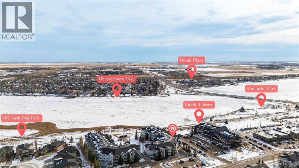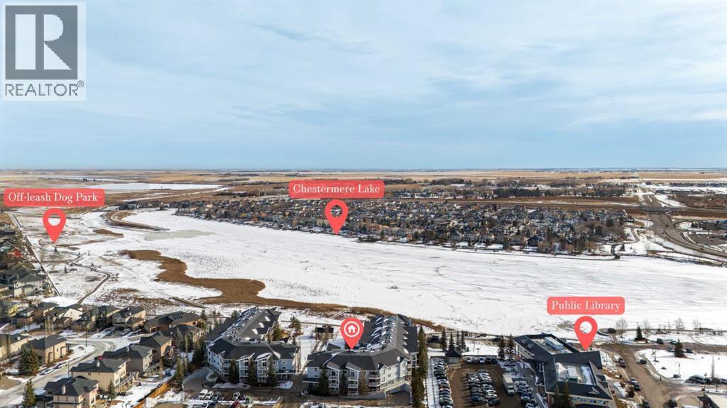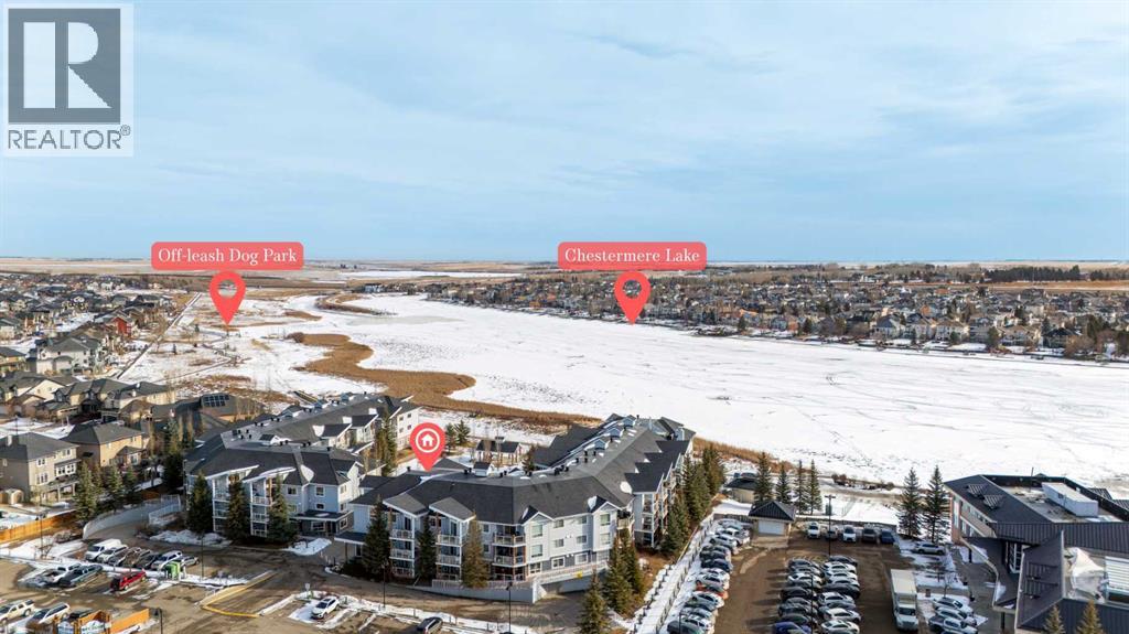 Such an incredible value in a once in a lifetime location. 180 view of Chestemere Lake. Unimaginable square footage in this 2 bedroom 2 bathroom condo. If you ever wanted to live in one of the most affordable and impressive locations and condos you will ever find. Large open living room, comfortable and roomy kitchen, spacious bedrooms, tons of natural light, and underground parking. Super walkable to grocery stores, banking, fast food, and so much more. I honestly could not think of anything more you could ask for. This is a very rare opportunity in this price range so don't wait too long to come see it. (id:58070)