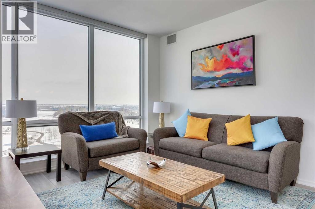 Welcome to The Verve—where modern design meets unbeatable convenience in Calgary’s East Village. Built by award-winning developer FRAM + Slokker, this 2-bedroom plus flex space, 2-bath condo combines sleek finishes with thoughtful design in one of the city’s most vibrant communities.Step inside to a bright, open layout with 9’ ceilings and floor-to-ceiling windows framing sweeping city and river views. The Euro-inspired kitchen features quartz countertops, stainless steel appliances, and a large eat-in island, perfect for casual dining or entertaining. The primary bedroom includes a private ensuite, while a second bedroom and flex space offer versatility for guests or a home office. Oversized tiled bathrooms, in-suite laundry, and a spacious balcony with gas BBQ hookup add everyday comfort and style.Life at The Verve comes with premium amenities: a fitness studio, resident lounge with kitchen, a landscaped courtyard with cabanas, and a rooftop Jacuzzi overlooking Calgary’s skyline. Secure underground parking, bike storage, and visitor stalls make urban living effortless.Outside your door, discover the best of East Village—river pathways, St. Patrick’s Island, the New Central Library, cafés, restaurants, and shops. With the CTrain just blocks away and quick access to Inglewood, Kensington, 17th Ave, and Stephen Ave, this is city living at its best. (id:58070)