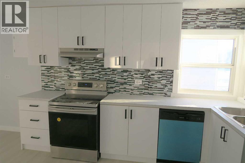 STUNNING NEW FLOOR to CEILING KITCHEN CABINETS accented with STAINLESS STEEL APPLIANCES ,corner windows ,eating area with corner windows. Big living room with view to west. Large Master bedroom . New bathroom . Basement has HUGE Familyroom ,bedroom and laundry room plus a large utility work area. LARGE private backyard,with two storage sheds and oversize garage with concrete floor . Big parking area in front of garage ,rear lane access . Beautifully renovated home ready to be lived in . BIG new school in town . (id:58070)