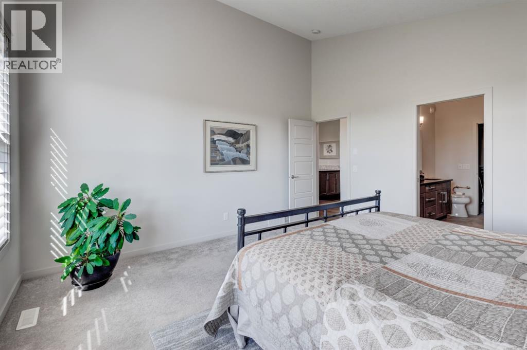 Welcome to this rare to find bungalow in legacy, backing onto a peaceful green space! Boasting over 2600sqft of fully finished living space across both levels, this upgraded 2 bedroom, 3 bathroom home is tucked away on a quiet cul-de-sac with a front attached double garage. Step inside to bright airy living spaces enhanced by soaring vaulted ceilings, gorgeous hardwood floors and large south facing windows that flood the home with natural light creating an inviting atmosphere throughout. The spacious kitchen is a chef dream, featuring ample cabinetry, a wall pantry, deep pot drawers and a premium Electrolux appliance package including a built-in wall oven, microwave and gas cooktop. A stunning tile backsplash pairs beautifully with sleek quartz countertops making this kitchen as functional as it is stylish, perfect for both everyday dinning and hosting dinner parties. The enormous Master Suite also showcases vaulted ceilings, large south facing windows overlooking the backyard, a luxurious 5pc en-suite, dual quartz vanity, soaker tub and a walk in closet with built in’s. Rounding off this level is the spacious foyer for welcoming guests, dinning room, living room with an oversized gas fireplace, a half bath and main floor laundry. The fully finished lower level has 9ft ceilings and offers even more living space with the addition of a massive 440sqft recreation room to design as you see fit. Down here You will find the secondary bedroom (it is also a very good size) a 4pc bathroom with quartz countertops and a flex room (would make a great office or work out space) There is a ton of storage spaces throughout, including extra closets on main as well as a huge storage/laundry room. Another highlight of the home is the green space it backs onto, whether you are inside or out, this peaceful backdrop adds to the charm and appeal of the property. This home also boasts hassle free low maintenance landscaping! Overall you will find a perfect blend of comfort and modern liv ing! The location gives easy access to many close by amenities, shops of Legacy, schools, parks, playgrounds and more! (id:58070)