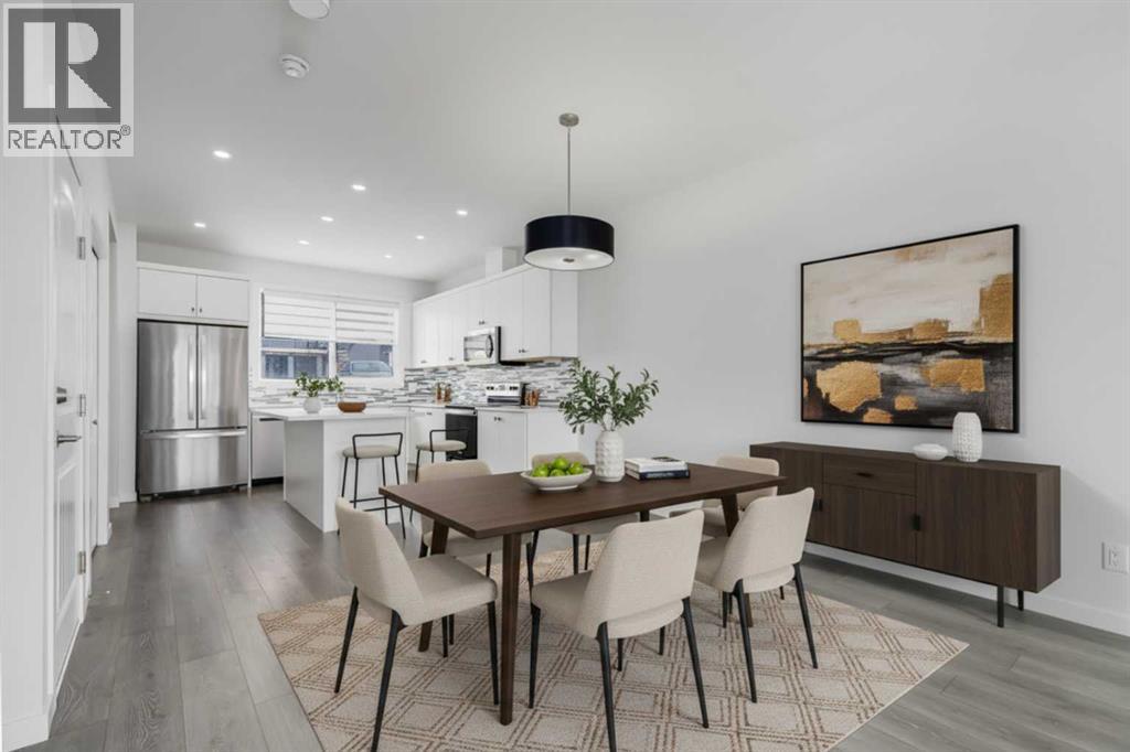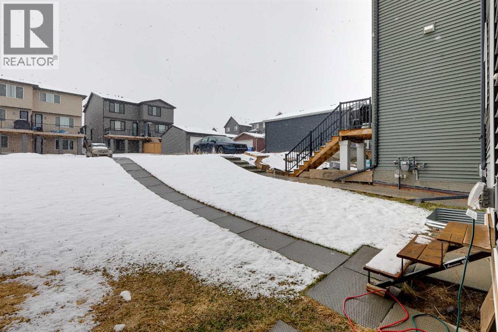 Life in the new master-planned community of Glacier Ridge begins with a home that blends modern efficiency with a layout designed for both connection and independence. Thoughtful upgrades including 10 rooftop solar panels, 2 high-efficiency furnaces with separate controls and on demand hot water supporting lower monthly costs while enhancing long-term comfort. Everyday living unfolds across a bright main level where LVP flooring and a neutral colour palette establish a clean, cohesive backdrop that adapts easily to personal style. Gather in the living area where open sightlines encourage easy conversation and create a welcoming environment for both quiet evenings and hosting. Meals find their place at the centre of the home in the dining area, positioned to maintain connection across the entire main level. Culinary creativity is sparked in the beautifully finished kitchen where quartz countertops, stainless steel appliances and timeless cabinetry bring together function and lasting appeal. A tucked away powder room adds convenience without interrupting the overall flow. Upstairs, the primary retreat offers a comfortable escape with oversized windows, a walk-in closet and a private 4-piece ensuite designed for daily ease. Two additional bedrooms introduce flexibility for family, guests or a home office while a full 4-piece bathroom supports the upper level. Laundry is thoughtfully placed nearby, simplifying daily routines without added trips between floors. Added versatility continues in the fully self-contained legal basement suite, accessed through a separate side entry and designed to maintain complete privacy from the upper level. A spacious living area, stylish kitchen with quartz counters and tile backsplash, 1 bedroom, separate laundry and its own high-efficiency furnace create an independent living space well suited for extended family or additional income potential. Outdoor living extends to both front and back grassy areas, while the south-facing backyard i nvites more sunlight throughout the day, making it ideal for relaxing, gardening or future outdoor plans. Daily errands remain convenient with nearby grocery options, transit access and quick connections to Stoney Trail, creating an easy commute toward Calgary, Cochrane and Airdrie. (id:58070)