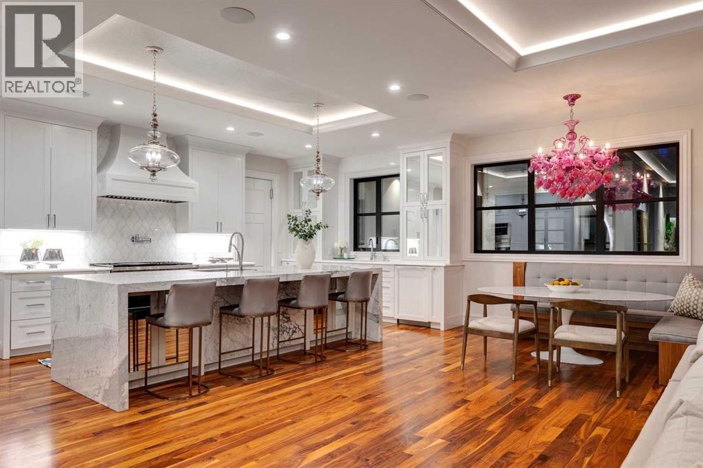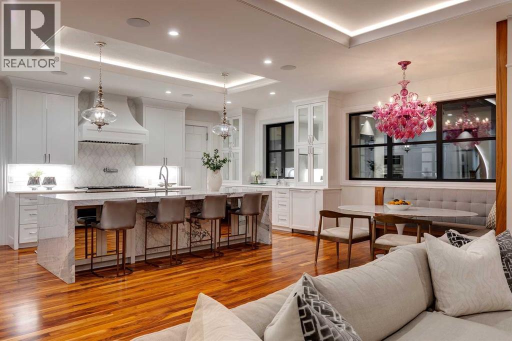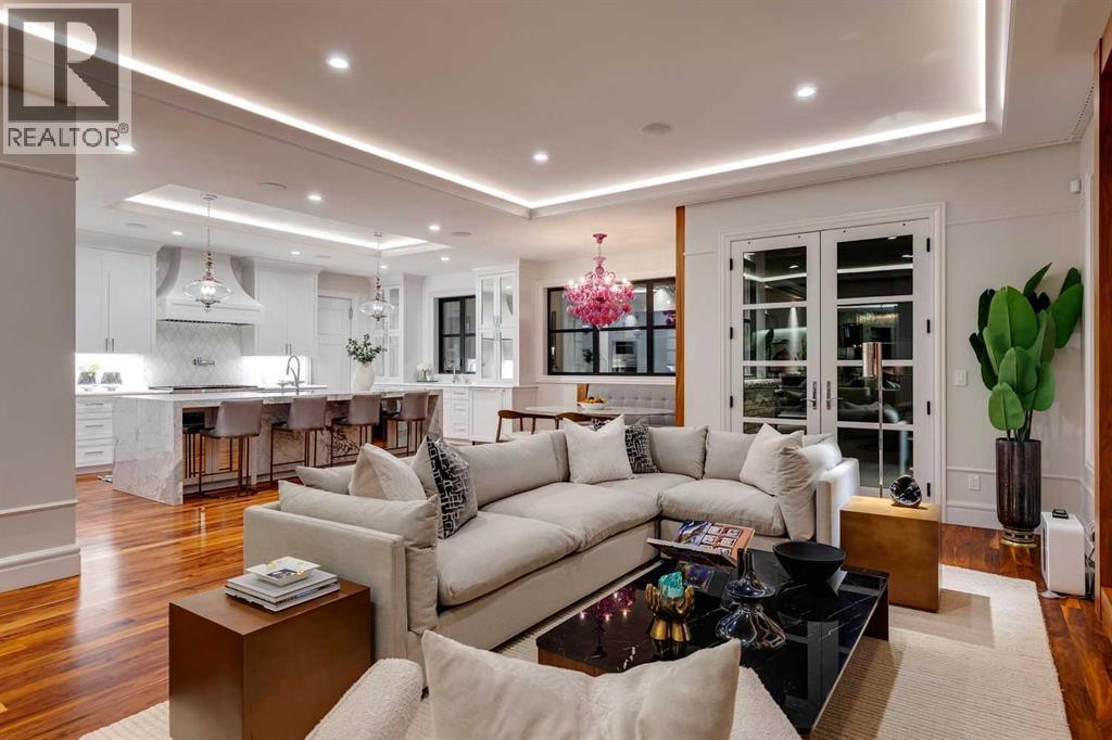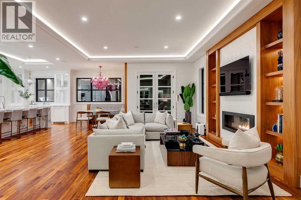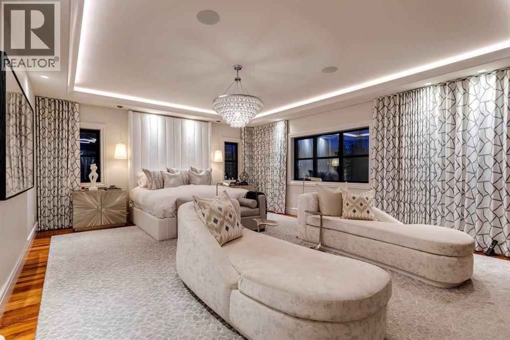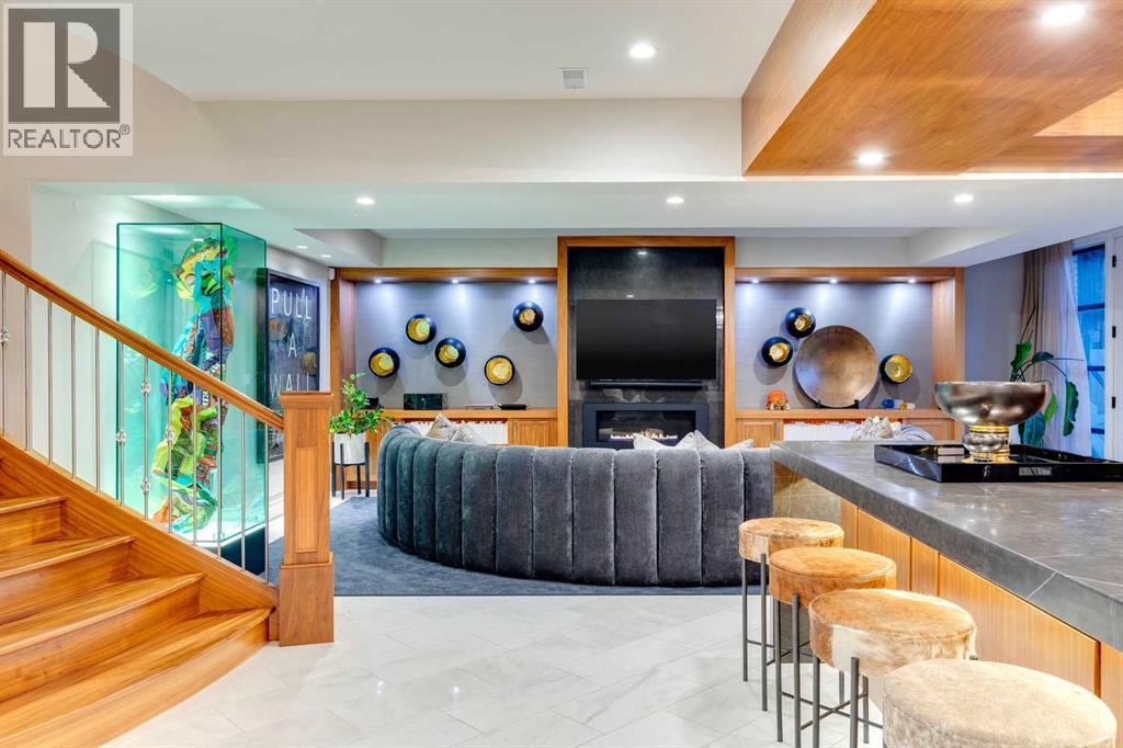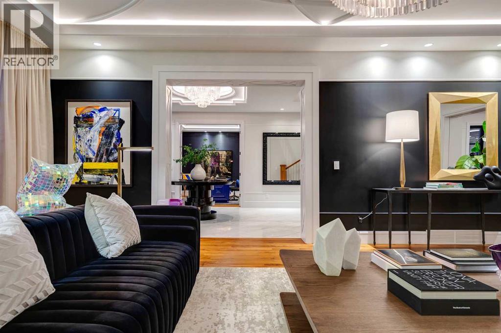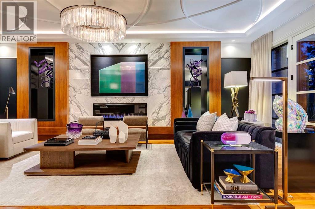 Phenomenal luxury Mount Royal home with over 7,600 sq ft of meticulously designed living space on a gorgeous huge lot that is privately gated + beautifully set back from the street. Stunning curb appeal + a dramatic entrance with a grand staircase is an impressive welcome to the home + leads to refined residence with a layout ideal for both family life + entertaining. The main level features beautifully appointed living spaces + is thoughtfully designed with a blend of open concept living + beautifully designated rooms. There is a gourmet chef’s kitchen, butler’s pantry + very comfy family room for casual living. Also a main floor library, huge living room + formal dining room which is elevated by a striking wine display. The generous mudroom leads to the oversized triple attached garage. The home offers 5 spacious ensuited bedrooms, providing exceptional privacy for family + guests. The impressive 800 sq ft primary retreat offers a lavish spa-inspired ensuite, expansive walk-in closet + serene views of the surrounding grounds. The walkout lower level is designed for next-level entertaining, featuring a sleek bar, media lounge + a boutique-style fitness studio. Multiple fireplaces throughout the home add warmth + ambiance to the luxurious interiors. Outdoors, the four spectacular living areas create indoor-outdoor flow, perfect for private relaxation + unforgettable gatherings. Close to all levels of exceptional schooling, parks, The Glencoe Club + downtown. (id:58070)