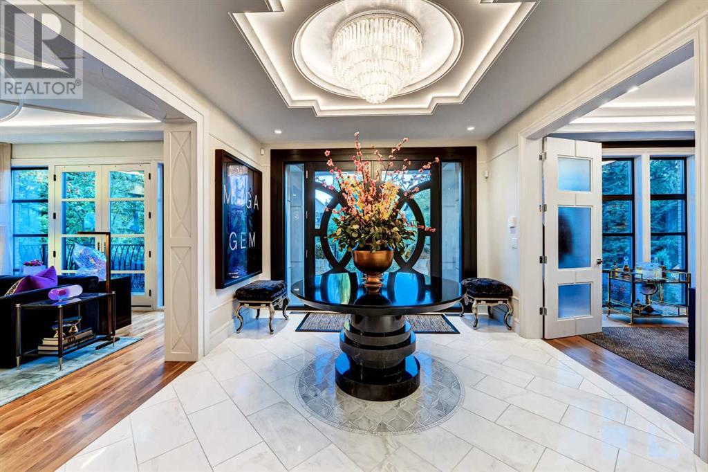 Award-Winning Estate in Mount Royal | Fully Furnished | 7,600+ sq ft of Unmatched LuxuryWelcome to one of Mount Royal’s most iconic properties—a fully furnished, award-winning estate home situated on an ultra-private, estate-sized lot in Calgary’s most sought-after community. Spanning over 7,600 sq ft of exquisitely developed living space, this residence offers the ultimate blend of family functionality and elevated entertaining.From the moment you step inside, you're greeted by a dramatic grand staircase set beneath an expansive skylight, flooding the entry with natural light and setting the stage for the architectural elegance found throughout. Every space is a masterclass in luxury, designed by renowned interior designer Paul Lavoie and awarded Western Living’s Best Home of the Year in 2022.The main floor is crafted for connection and celebration, with open yet defined living spaces, a butler’s pantry, and showcase wine walls that make the formal dining area truly unforgettable. A gourmet kitchen anchors the heart of the home, flowing effortlessly into warm gathering spaces, all styled to perfection.With 5 spacious bedrooms—each with its own ensuite—there’s room for family and guests alike. The 800 sq ft primary suite is a private sanctuary, featuring a walk-in closet that would make designer brands envious, a spa-caliber ensuite, and tranquil views that redefine luxury living.Downstairs, the walkout basement is a destination in itself: enjoy a sleek entertaining bar, media room, and a boutique hotel-style gym that rivals any private club. With four fireplaces throughout, comfort is always close by.Step outside to experience four spectacular outdoor living areas, each uniquely designed to elevate everyday moments—from private lounging to unforgettable soirées under the stars. An oversized triple attached garage completes the home with both form and function.Every inch of this property reflects intentional design, premium materials, and timeless sophisticat ion. This is turn-key, move-in ready estate living at its finest—right in the heart of Calgary’s most prestigious neighborhood.This is more than a home—it’s a lifestyle. Welcome to luxury living in Mount Royal. (id:58070)