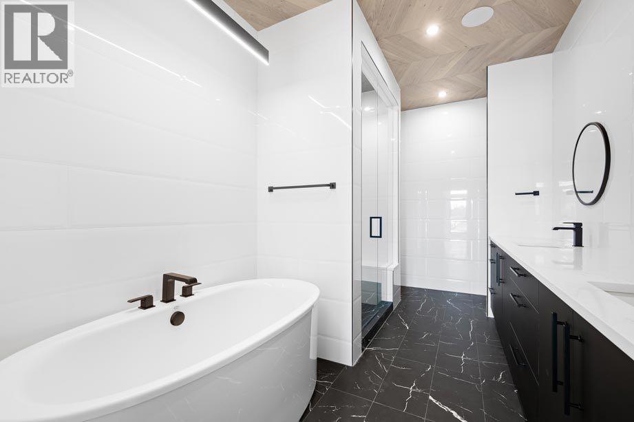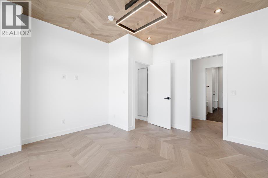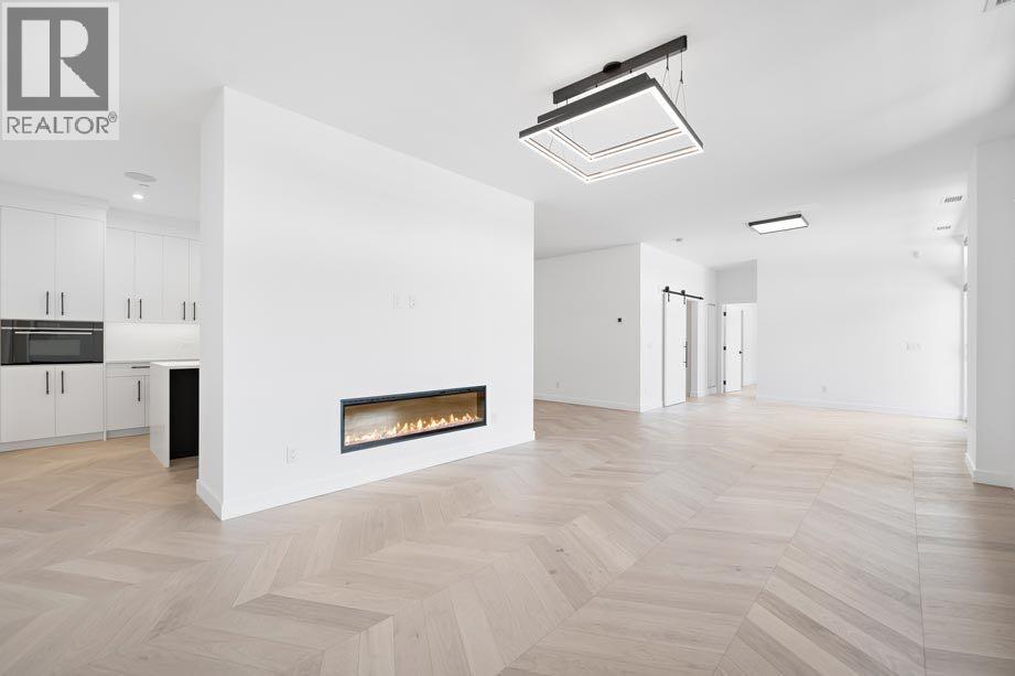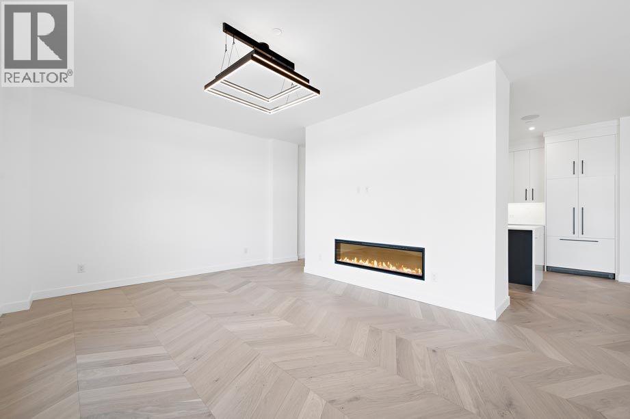 Welcome to a refined living experience at Parkside, a premium concrete-built residence by TRUMAN located in Calgary’s thriving West District. This stunning 1 Bedroom + Den, 2-Bathroom luxury condo is designed for those who appreciate timeless elegance, exceptional craftsmanship, and modern functionality. From the moment you step inside, you’ll notice the attention to detail—custom millwork, Chevron-pattern hardwood flooring, and a designer lighting package create an atmosphere of sophisticated comfort. Expansive floor-to-ceiling windows fill the living space with natural light and offer peaceful views of the surrounding community. The open-concept living room features a fireplace that adds both warmth and style—perfect for entertaining or relaxing evenings at home. The adjacent den provides a versatile space ideal for a home office, guest room, or creative retreat. At the heart of the home lies the chef-inspired kitchen, where design meets performance. Full-height custom cabinetry, a gas cooktop, and a panelled fridge create a seamless and functional workspace. A striking double waterfall quartz island with an integrated range hood anchors the space, while under-cabinet lighting and premium finishes add to the elevated aesthetic. The spacious primary suite serves as a serene escape, complete with a spa-like 5-piece ensuite featuring a freestanding soaker tub, dual vanities, a tiled shower, and upscale fixtures. The main 4-piece bathroom is equally well-appointed, offering comfort and convenience for guests or day-to-day use. Residents at Parkside enjoy access to a collection of exclusive amenities that foster both community and privacy. Unwind or host on the rooftop event patio, gather in the owner’s lounge with entertainment kitchen, or stay active in the fully equipped on-site fitness centre—all with sweeping views of West District’s Central Park. Set in one of Calgary’s most vibrant new communities, this boutique-style condo offers the perfect blend of luxur y, lifestyle, and location. Whether you're downsizing or seeking a sophisticated home base, this residence is more than just a place to live—it’s a reflection of your lifestyle. (id:58070)