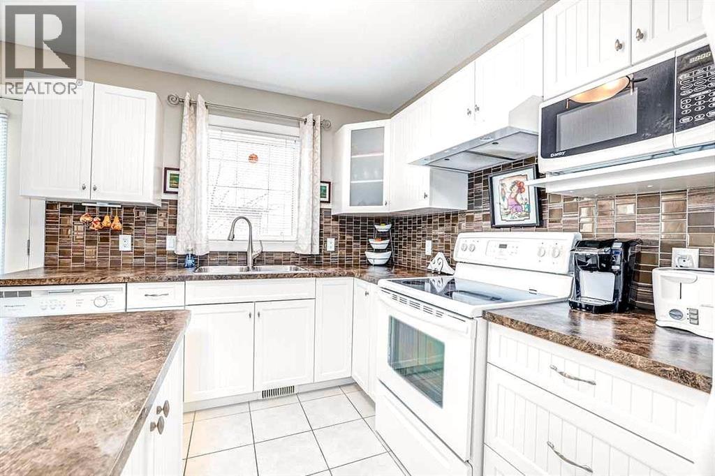 Beautifully maintained end-unit townhome in an exception location! This fully developed two story , offers approx. 1,300 sq. ft. with 2 bedrooms , 2 full baths , and a generous open loft area upstairs. The bright main floor features a large living room , spacious dining area, and open kitchen with an island , seating for two, plus a convenient half bath . The fully developed basement includes a family room, bedroom, full bathroom, laundry, and storage. Recent upgrades include an October 2025 two stage Trane furnace, duct and vent cleaning new smoke and CO detectors, and 40 gallon Bradford white hot water tank in 2022. Additional features : water softener , Built in Vacuum system with attachments, speakers wired throughout. Enjoy the private fenced backyard with brick patio, and a heated , insulated double detached garage. Close to shopping , schools, parks, walking paths, Fish Creek Park, and easy access to Stoney trail. Move in ready and ideally located!! (id:58070)