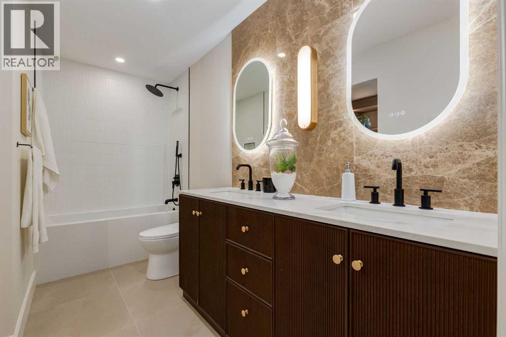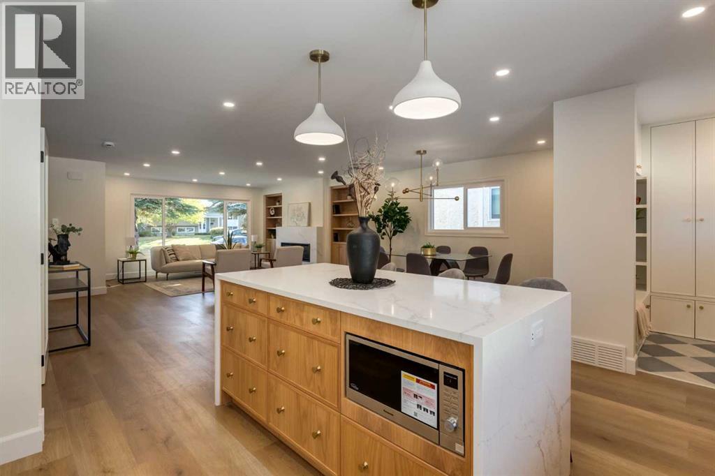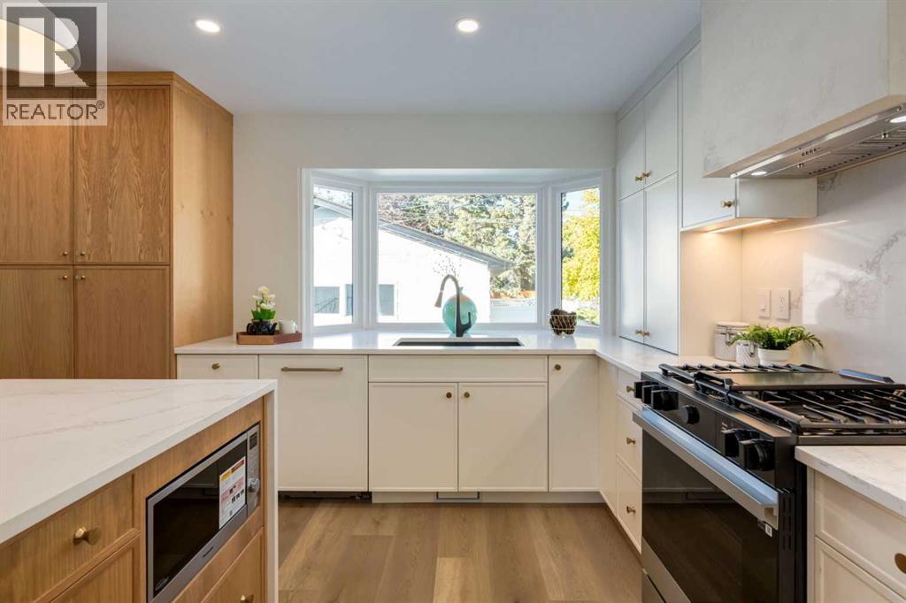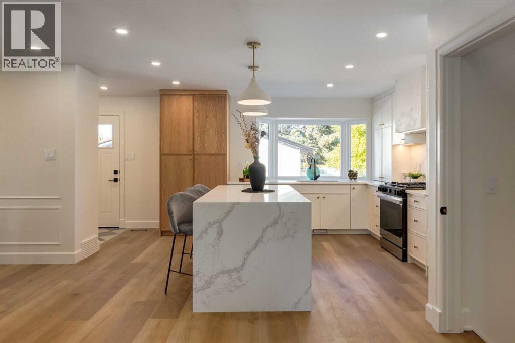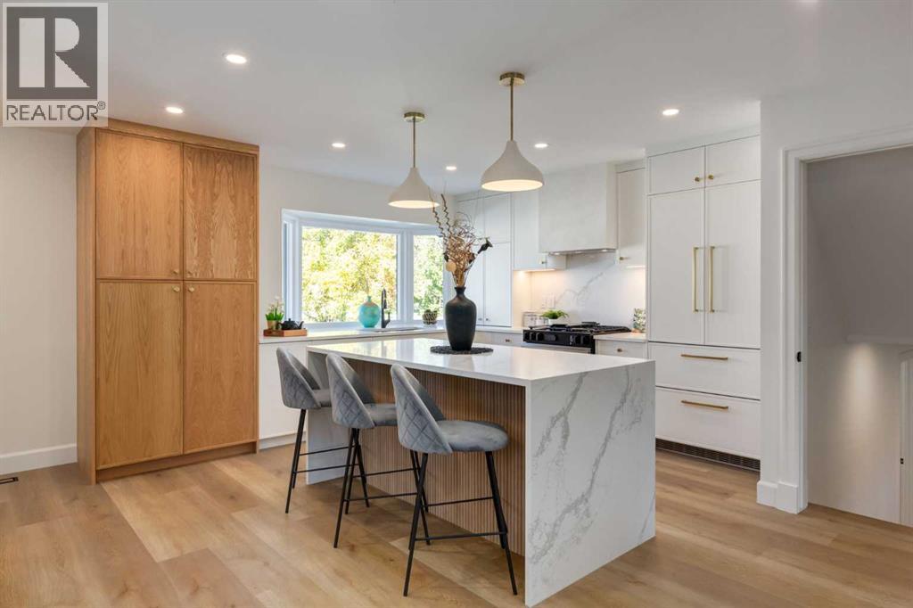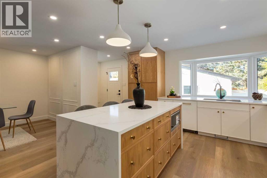 OPEN HOUSE SAT OCT 18 FR 2-4. Not a detail overlooked in this stunning and fully renovated 4-level split home in the sought-after lake community of Lake Bonavista. Offering 2,741 SF of thoughtfully designed living space with 5 bedrooms, 3 bathrooms and an oversized double detached garage (24'x24') with epoxy flooring. Immediately you will love the striking curb appeal with crisp white brick and siding accented by black windows, soffits and fascia. Inside, an abundance of natural light highlights the contemporary design and upscale craftsmanship. At the center of this home is the gourmet kitchen, designed for both function and style. It boasts a large island with a breakfast bar and waterfall quartz counter, extensive cabinetry and counter space (with 2 hidden push-pop compartments), undercabinet lighting, and a high-end appliance package, including a gas stove. The spacious main floor also offers an open-concept dining area, living room with custom built-ins and cozy gas fireplace and rear entry mud room with built-in storage. Upstairs you will find the primary suite with a show stopper walk-in closet with laundry and infloor heat and a spa-like 5 piece ensuite. A second bedroom and a beautifully designed 4-piece bathroom complete this level. The fully developed basement is the perfect space for entertaining or hosting guests. It includes a family room, recreation room, 3 additional bedrooms, a gorgeous 3 piece bathroom and a second laundry room making it an ideal retreat for family or overnight visitors. The beautifully landscaped backyard is fully fenced and gives ample space for summer enjoyment on the expansive concrete patio (27'x22') and direct access to the garage. Don't overlook the central AC for those hot summer days and other notable updates including all new windows, insulation in attic, electrical and mainline backwater valve. Lake Bonavista is a truly unique and sought-after community offering private lake access for year around enjoyment as well as sc hools, shopping, and parks all within close reach. This home is truly a MUST SEE! (id:58070)