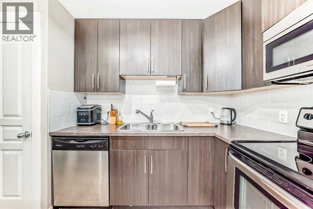 Lovely bungalow townhome in welcoming and friendly Mosaic Mirage in the heart of McKenzie Towne. Super functional layout in this two bedroom, full bath home. You're greeted with picturesque walkways leading up to a charming, fully fenced front yard (with a BBQ gas line) - giving you true outdoor space of your own. Just as good, it comes with a private double (tandem) garage. You choose if you park two cars or use the ample space for a workout, storage or flex area. Inside the unit you'll find an easy floorplan with a wide open living and kitchen area which features stainless steel appliances, a kitchen pantry, a large kitchen island with an overhang for meals or hosting, and quartz counters. Both bedrooms are a nice size and the primary comes with a large walk in closet. Large cross-facing windows and lockable sturdy screen door allows for light and airflow. Convenient insuite laundry in the bathroom. Good storage options both in suite and in the partial unfinished basement so you'll have room for everything in this efficient layout. Handy upgrades with some LED lighting in the main living areas, motion sensor LEDs at the front entrance, stairs to the parking and in the garage, an LED hall smart light you can hook up to Alexa, plus an installed garage door controller you can operate with your phone (seller is willing to help new owner with tech set up). Unit has freshly painted exterior and garage door. When you want to be entertained, you're a close walk to the amenities of High Street or the paths around nearby Inverness Pond. Perfect for a fresh start! (id:58070)