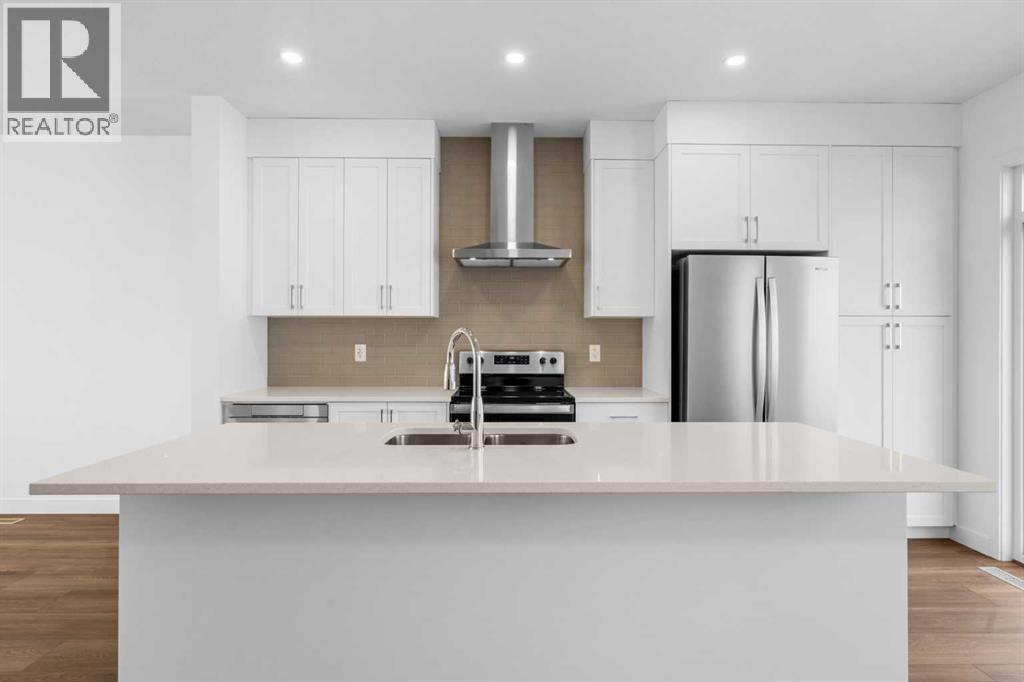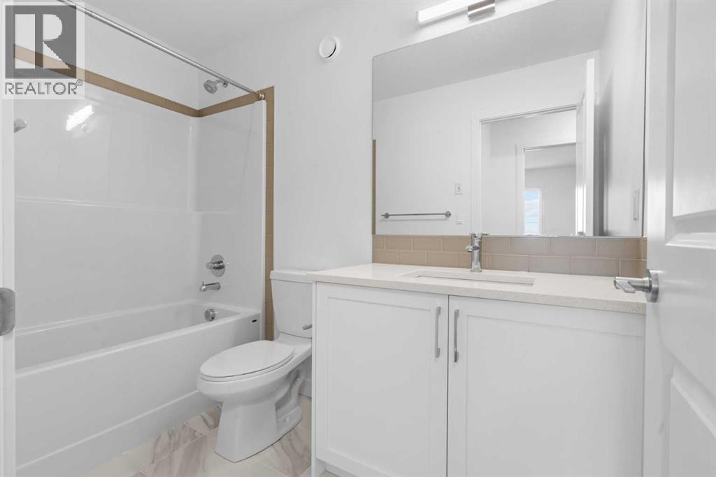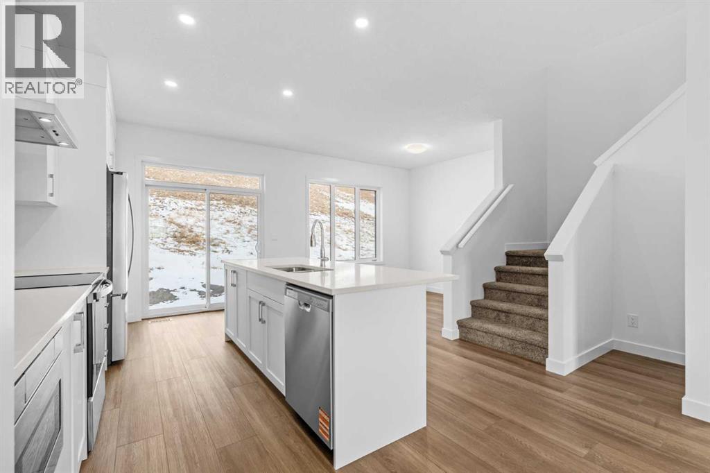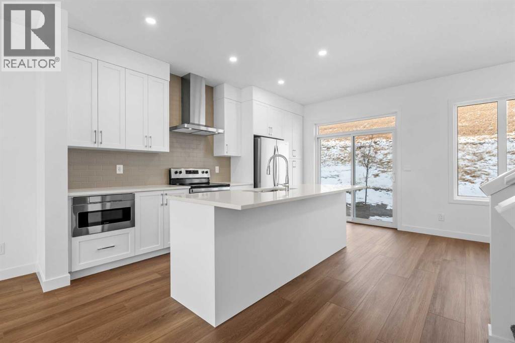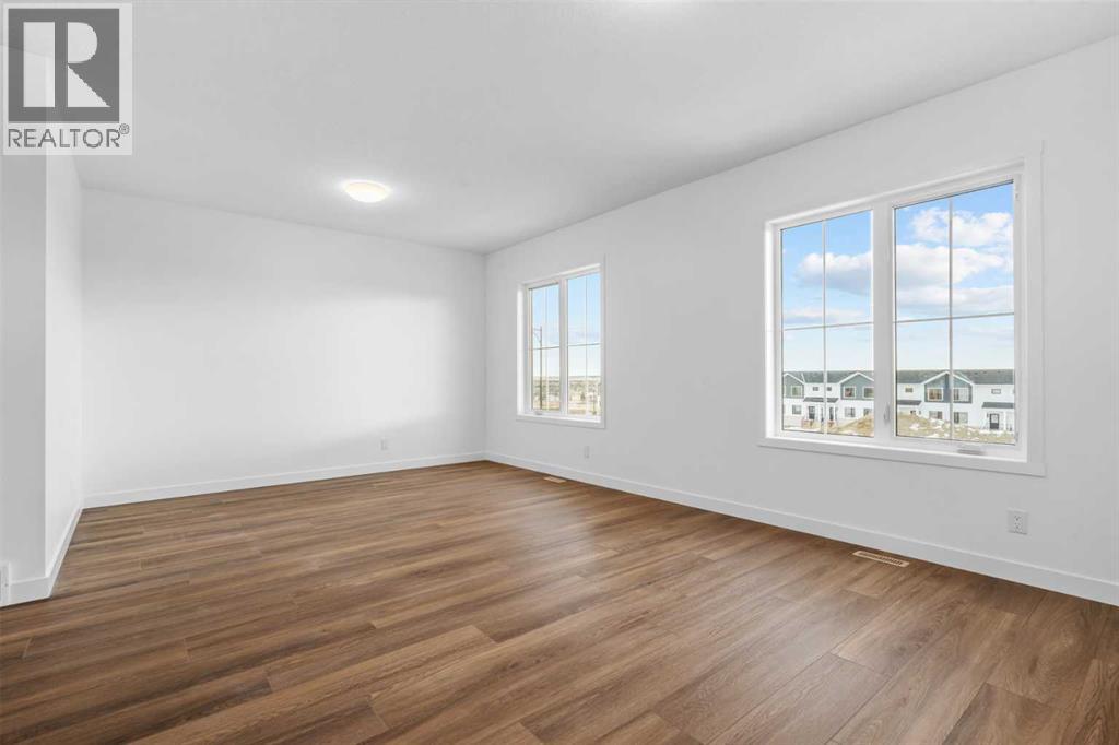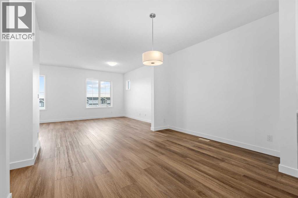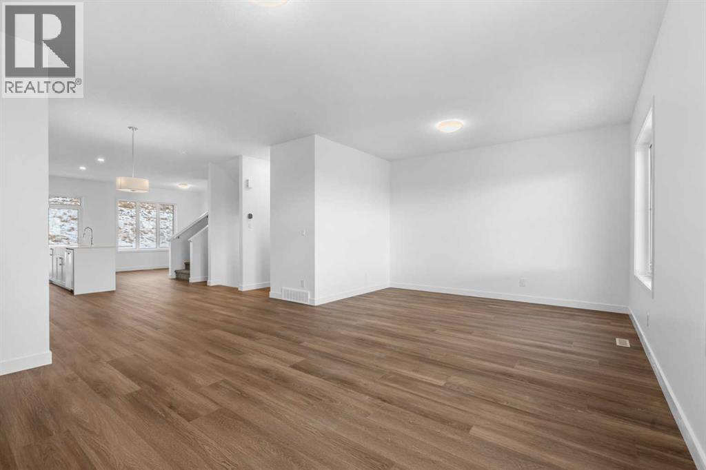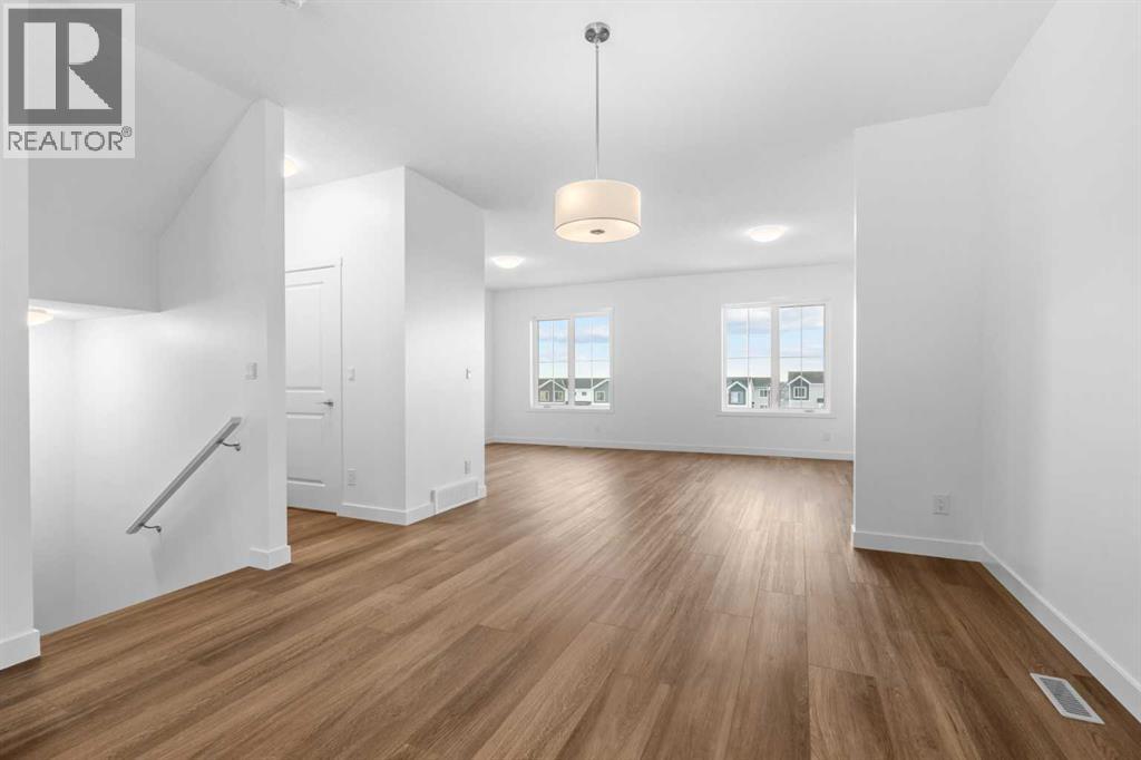 NEW BUILD SEMI-DETACHED | OVERSIZED SINGLE GARAGE | 3 BED / 2.5 BATH / 1995 SQ FT | WEST-FACING BACKYARD | IMMEDIATE POSSESSION – Welcome to this beautifully designed semi-detached duplex by Minto Communities, an award-winning Canadian builder, located in Wildflower, proudly voted Best New Community in Canada (2025). This vibrant, master-planned community in Airdrie is designed with lifestyle and connection in mind, offering an exciting mix of home styles in a neighbourhood built to grow with you.Finished in a charming traditional farmhouse elevation, this spacious home offers a thoughtfully planned layout ideal for modern family living. The main floor is designed for both everyday comfort and entertaining. The kitchen is positioned at the back of the home and features a central island, stainless steel appliances, and gorgeous modern finishes, with a bright breakfast nook just off the kitchen overlooking the west-facing backyard. Moving toward the centre of the home, you’ll find a dedicated dining area, while the large, light-filled living room anchors the front of the home. A convenient half bath and storage closet complete this level.Upstairs, the spacious primary bedroom easily accommodates a king-sized bed and includes a walk-in closet and a private 4-piece ensuite. Two additional well-sized bedrooms share this floor, one with a walk-in closet and the other featuring a sliding-door closet. A second 4-piece bathroom and a large, functional laundry room round out the upper level.The ground level welcomes you with a beautiful entryway that leads to the rest of the home and an undeveloped space that offers flexibility for future development. This level also includes additional storage space, a mechanical room, and direct access to the oversized single attached garage. A large driveway provides ample parking, adding everyday convenience.Residents of Wildflower enjoy exclusive access to The Hillside Hub, a standout amenity centre featuring Airdrie’s first outd oor pool, a hot tub, an open-air sports court, and a variety of shared indoor and outdoor spaces designed for gathering, recreation, or quiet retreat. With nearby parks, pathways, amenities, and easy access to major routes, Wildflower delivers a truly well-rounded lifestyle.Combining award-winning community planning, modern design, and immediate possession, this is an outstanding opportunity to own a stylish new home in one of Canada’s most celebrated communities. Don’t miss your chance to make Wildflower home! Book your visit today! (id:58070)
