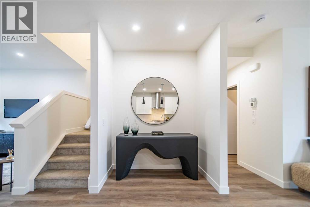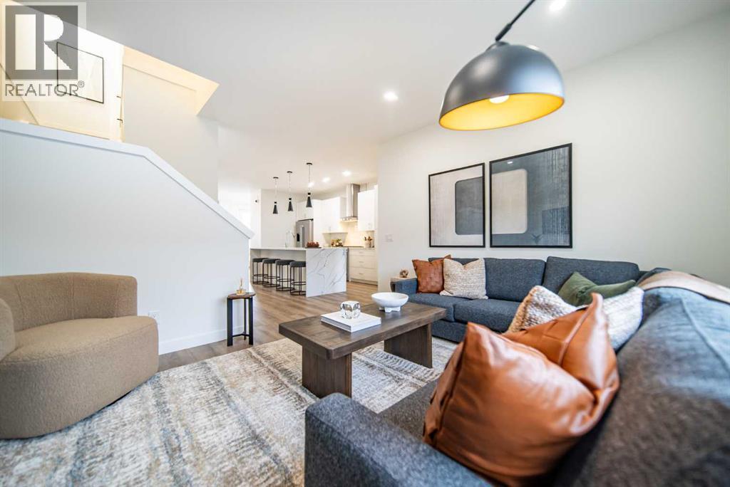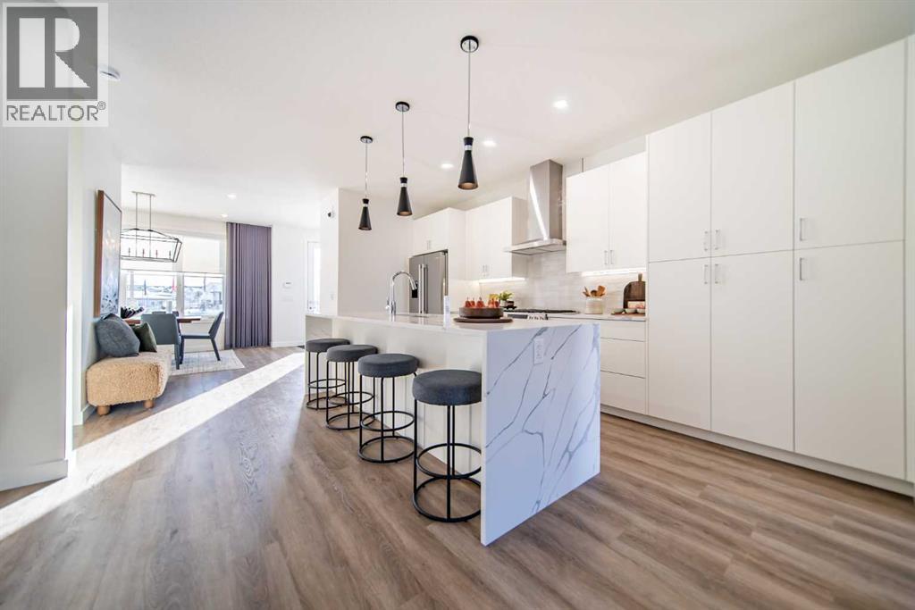 Experience the height of sophisticated living in this highly coveted luxury townhome, where a generous floor plan meets modern comfort and refined finishes. Proudly presented by StreetSide, this thoughtfully designed home features 3 bedrooms, 2.5 bathrooms, and a detached double car garage. Enhanced by over $17,000 in builder upgrades, the heart of the home is a spacious kitchen showcasing upgraded cabinetry, polished white quartz countertops with an elegant waterfall-edge island, an upgraded kitchen sink, and stainless steel appliances including an electric range with a gas line in place for future gas cooking. The living area is anchored by a gas fireplace and finished with luxury vinyl plank flooring, creating a warm and inviting atmosphere. The primary ensuite is a private sanctuary complete with tile flooring, double sinks, a freestanding soaker tub, and an oversized tile-and-glass shower, delivering spa-inspired comfort at home. Additional highlights include an upgraded spindle railing on the lower stair landing, rough-in for central air conditioning, and an unfinished basement with roughed-in plumbing, offering excellent future development potential. Professional landscaping and fencing complete the exterior. Ideally located in the award-winning community of Harmony, residents enjoy Mickelson National Golf Course, private lake amenities, scenic walking and biking trails, and a wellness-focused lifestyle—just minutes from Calgary and only 45 minutes from the Rocky Mountains, where nature and convenience come together effortlessly. (id:58070)