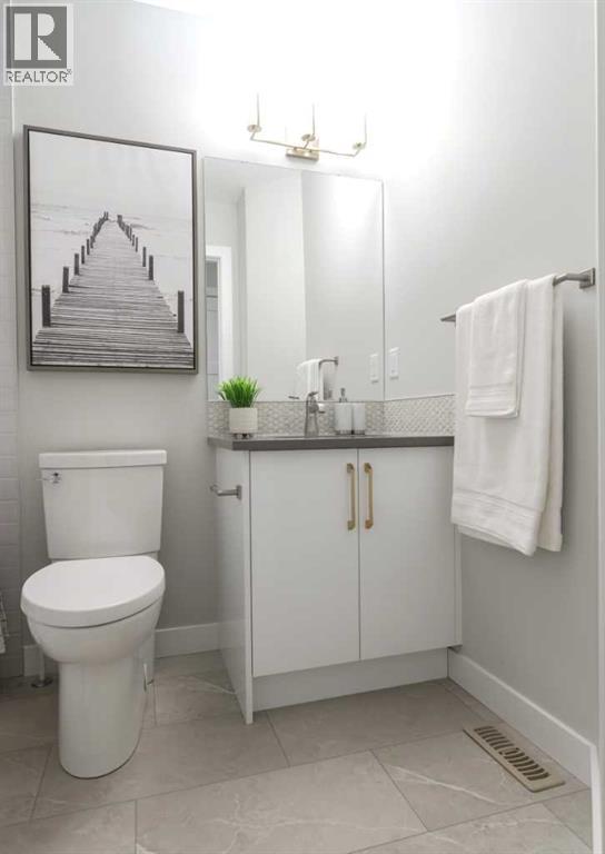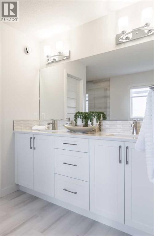 Built by Calgary and area builder Alliston at Home, this standout 3- bedroom, 2.5-bath beauty sits in the heart of Crossfield’s sought-after Iron Landing community—just steps from Veterans Peace Park and within walking distance toCrossfield Elementary and W.G. Murdoch Schools. This home will be ready for possession in September 2025! Welcome to your next home—a beautifully designed space where comfort meets style! Step inside and be wowed by the bright, open layout. The living room is full of natural light thanks to large windows and a stunning open-to-above feature. Sleek upgraded railings and durable vinyl plank flooring give the space a fresh, modern vibe that’s easy to maintain. The kitchen is a showstopper—complete with stainless steel Whirlpool appliances, quartz countertops, an integrated kitchen island, and plenty of crisp white cabinetry. Whether you’re cooking for the family or entertaining friends, this space is as functional as it is beautiful. The connected dining area flows right out to a large backyard—perfect for summer BBQs and outdoor hangs. Upstairs, you’ll find three bedrooms and a versatile bonus room—ideal for a playroom, office, or chill zone. The spacious primary suite features a walk-in closet and a luxe ensuite with dual sinks, quartz counters, and a three-wall tiled walk-in shower. Two additional bedrooms share a stylish 3-piece bathroom—great for growing families or hosting guests. The unfinished basement is full of potential, with a side entrance, rough-ins for a bathroom, wet bar, and secondary laundry—ideal for a future legal suite (pending town approval). Enjoy sunny days in your south-facing backyard or get your hands dirty in the garden. The front yard landscaping comes with a tree from the developer—just one more thoughtful detail that makes this house special and ready to call home. With a double attached garage for all your parking and storage needs, this home truly has it all. It’s the perfect blend of space, style, and suburba n serenity—just ten minutes outside the city. Photos are representative. (id:58070)
