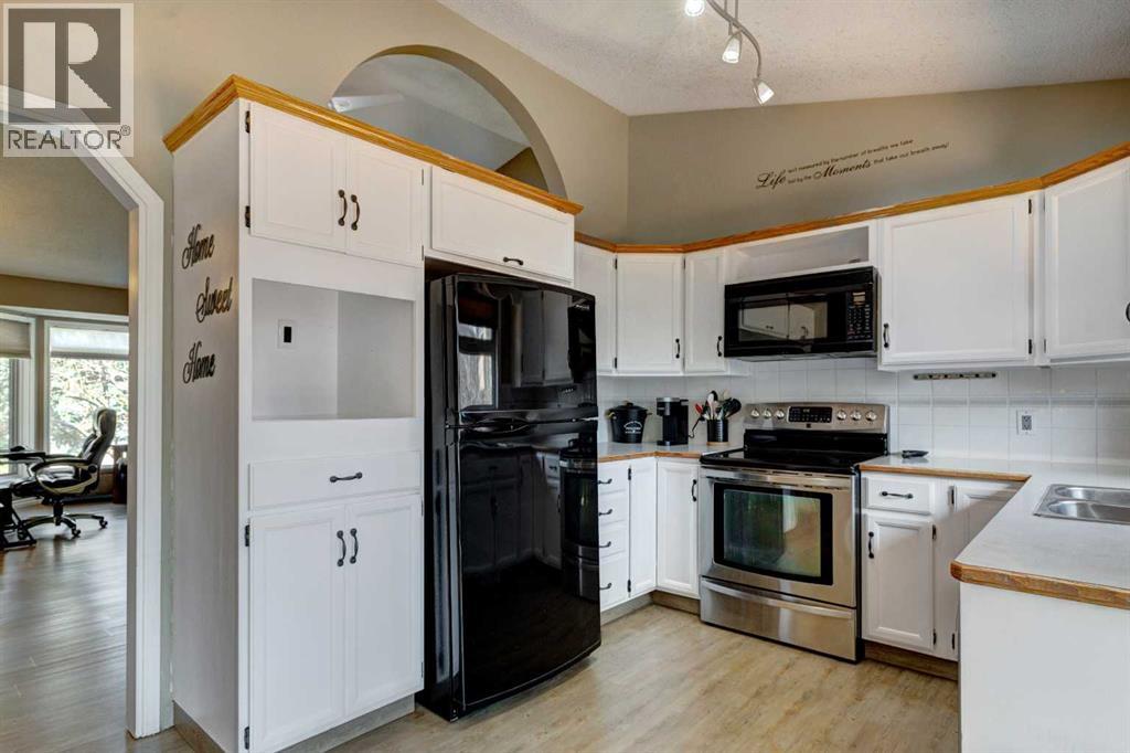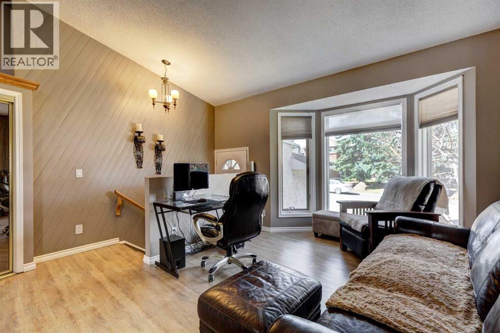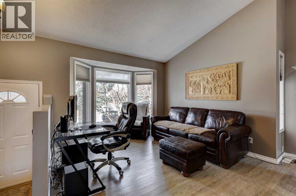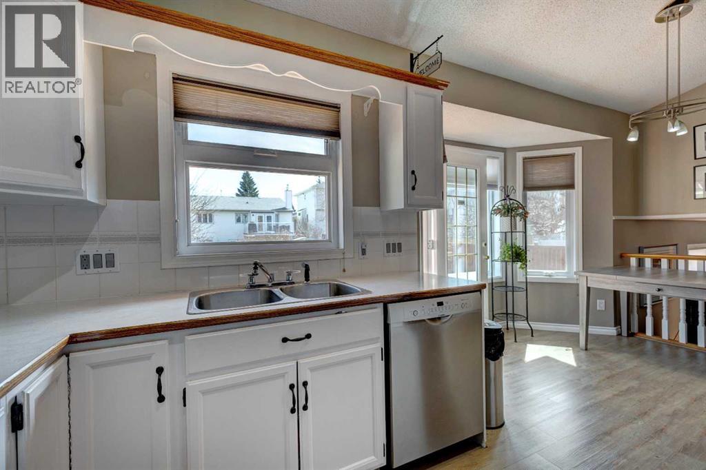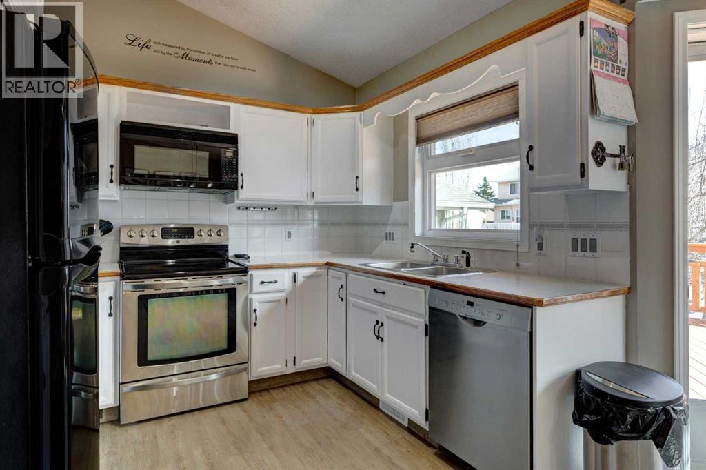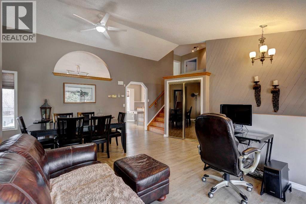 Welcome to a well laid out 4 level split home in desirable MacEwan Glen. Step into an inviting foyer that flows into a bright open main floor living and dining room. This beautifully designed home has an upper level primary bedroom with ensuite, 2 additional bedrooms and a 4 piece bathroom. The functional kitchen has timeless white cabinetry, new range and some stainless steel appliances which looks out onto the breathtaking cedar deck and large yard. Step down into the family room for those cozy evenings by the wood burning fireplace. The laundry room, 2 piece bathroom and double attached garage are conveniently located steps away. The undeveloped basement is ready for you to make it your own. Gorgeous newly custom designed cedar deck with enclosed under storage, overlooking the well maintained large cedar fenced yard. Perfect for family gatherings. Incredible location close to Nose Hill Park, many schools, outdoor recreation and scenic walking pathways. This is the perfect home to make lasting memories! Come see it today! (id:58070)
