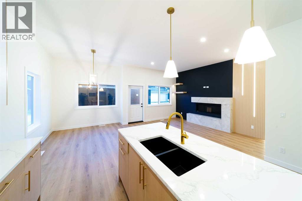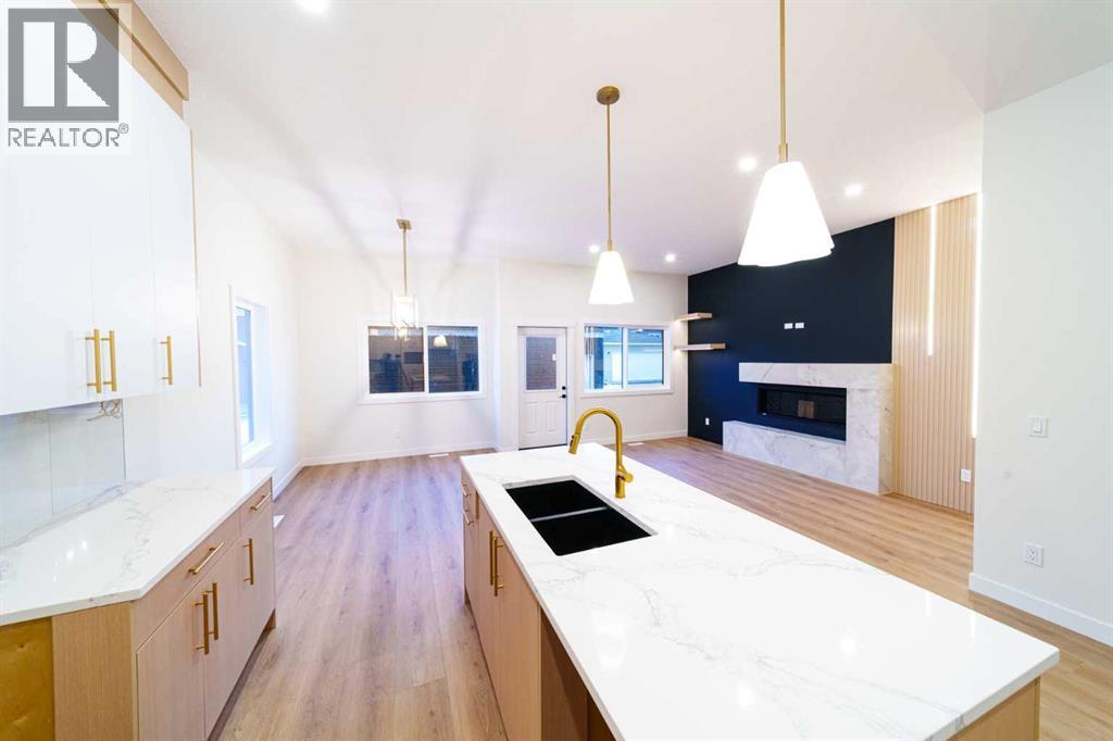 Take a look at this custom-built home in the family-friendly community of Crossfield. This brand-new bungalow offers a total of 2,353 square feet of well-designed living space, with 1,323 square feet on the main floor and 1,030 square feet in the finished basement.Inside, you’ll find 10 foot ceilings on the main level and 9 foot ceilings in the basement, giving the home a bright and open feel. The main floor features a covered front porch, a large deck in the backyard, and an open concept layout that’s perfect for both relaxing and entertaining.The kitchen comes fully loaded with a big island, quartz countertops, premium stainless steel appliances, black hardware, high end lighting, and solid plywood shaker cabinets. The living room has a modern Montigo gas fireplace, and the space is finished with durable luxury vinyl plank flooring, Maple wood touches, and black dual pane windows that give it a modern look.The exterior includes a mix of stucco and stone finishes, all part of the included upgrades.The primary bedroom is a great place to unwind. It comes with a five piece ensuite and a walk in closet. There’s also a second bedroom on the main floor, plus a full four piece bathroom and a laundry room with a sink.Head downstairs and you’ll find even more space including a third bedroom with a walk in closet, a home office, a large rec room with a built in media center and shelving, a wet bar, and a fourth bedroom. There’s also a separate side entrance, perfect for privacy or future rental potential.Outside, there’s a double detached garage, a fully landscaped yard, and plenty of room to enjoy the outdoors.This home is located in the growing Iron Landing area, close to parks, playgrounds, shopping, and schools like Crossfield Elementary and W G Murdoch School. You’re also just a short drive from Airdrie (under 10 minutes), 25 minutes to Calgary, and close to Highway 2 for an easy commute.The home still have the chance to choose some of the finishes to make it your own. Photos shown are from a previous build. Visit our show home to get a feel for the quality and style.Reach out today to learn more or to book a visit. (id:58070)