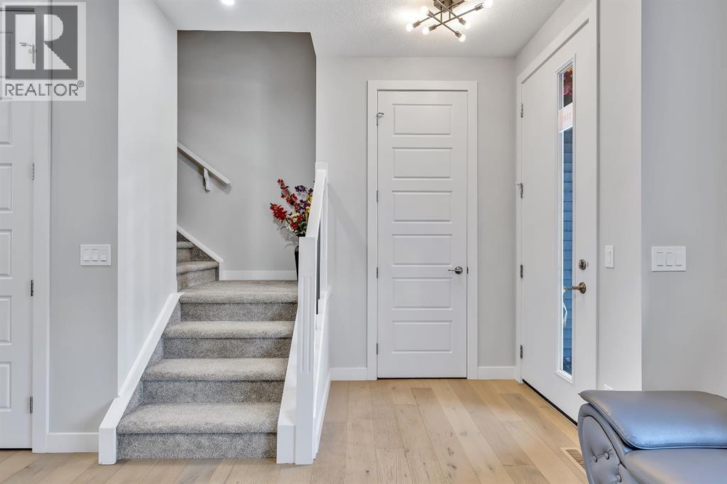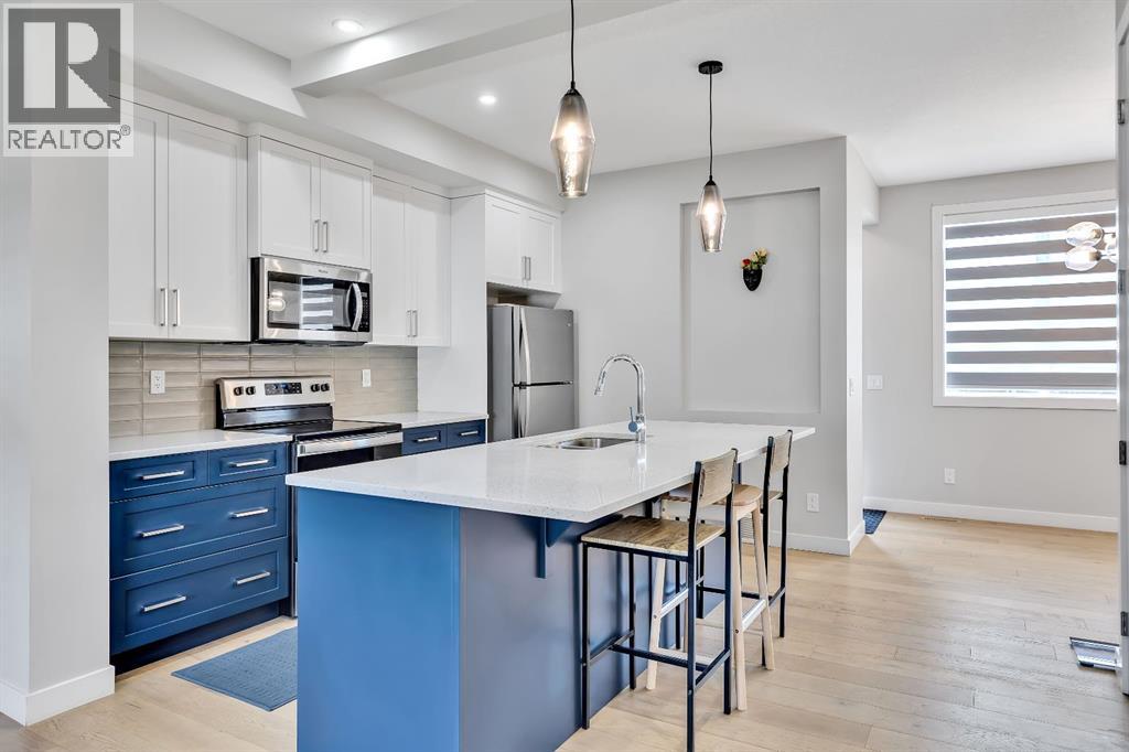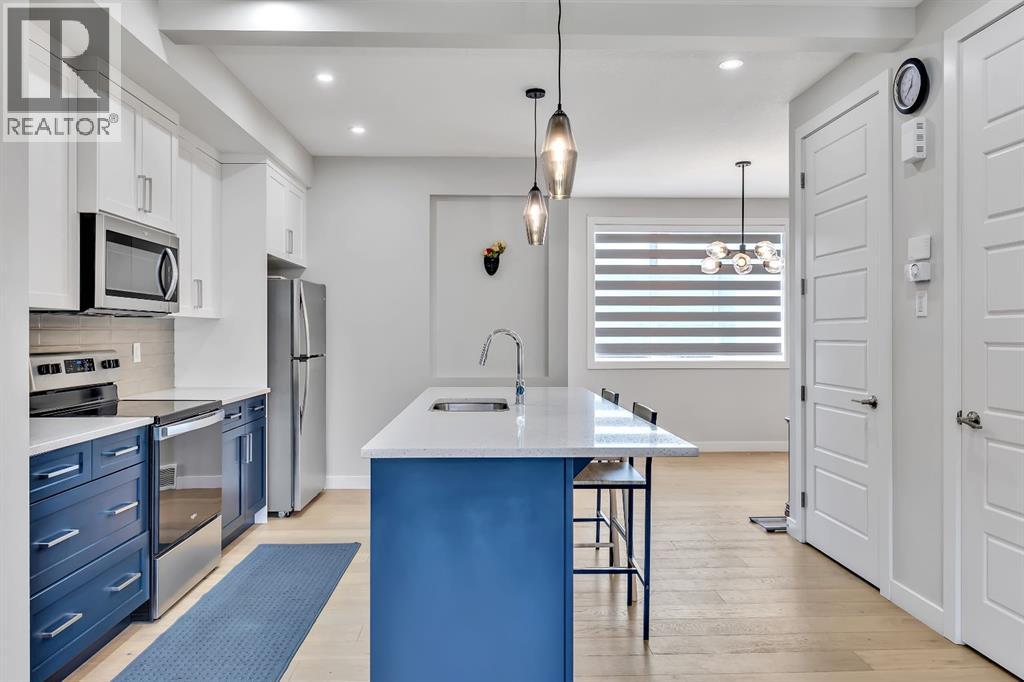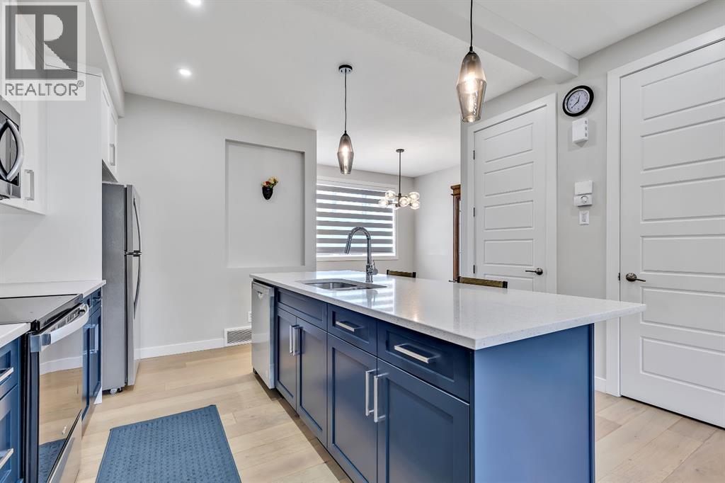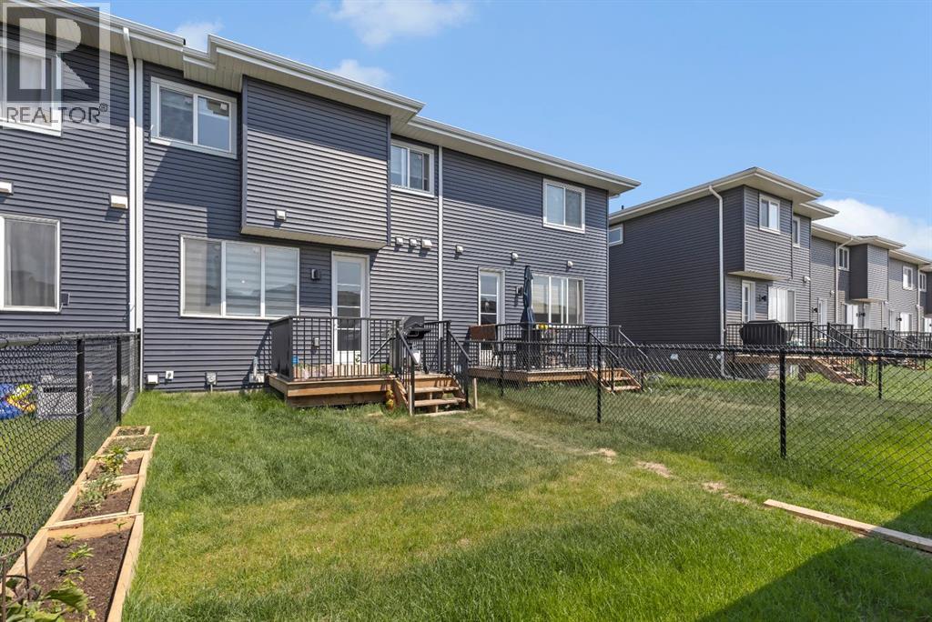 BEAUTIFUL 3 BEDROOM TOWNHOME IN LANARK SE | NO CONDO FEES | DOUBLE CAR GARAGE | FRONTING COMMUNITY GARDENWelcome to this stunning and functional 3 bedroom, 2.5 bathroom townhome located in the community of Lanark SE, Airdrie. This home offers exceptional value with no condo fees and a Double Detached Garage, perfect for growing families or first-time buyers.The main floor features luxury vinyl plank flooring throughout and a spacious living room filled with natural light from the large front window. The modern kitchen is equipped with stylish dual-tone cabinetry, quartz countertops, a pantry, and ample prep space. The adjoining dining room is spacious, convenient powder room, and mudroom with access to the rear deck complete this level.Upstairs, you’ll find a well-laid-out upper level with a primary bedroom that includes a walk-in closet and a private 3-piece ensuite with standing shower. Two additional generously sized bedrooms share access to a full 4-piece bathroom, offering comfort and space for the whole family.The unfinished basement provides a laundry area and is ready for your personal touch. perfect for future development or extra storage. Outside, enjoy a low-maintenance backyard with a deck, chain-link fence, and the rare bonus of facing a beautiful community garden. (id:58070)