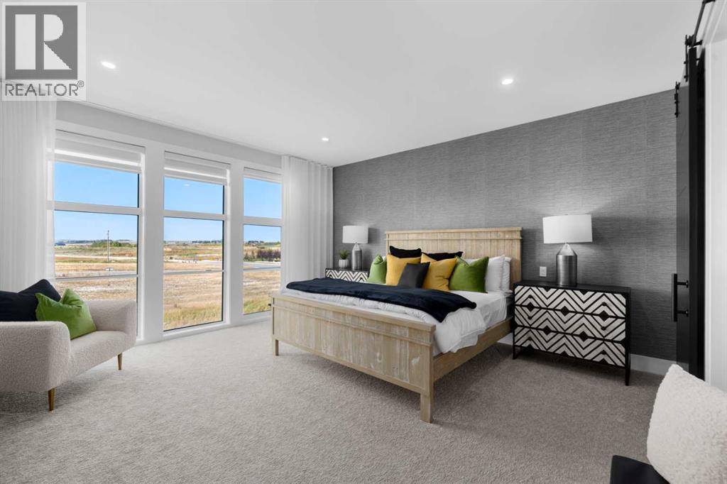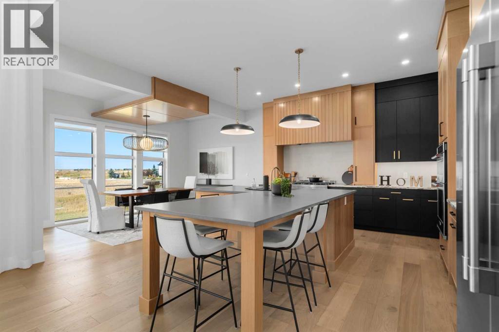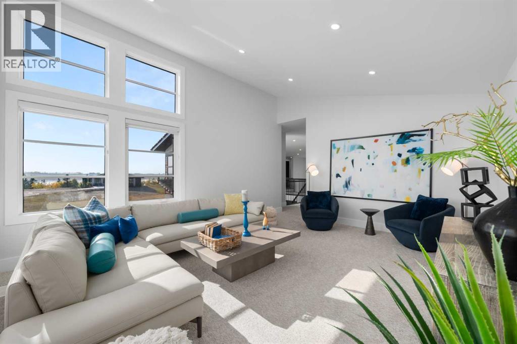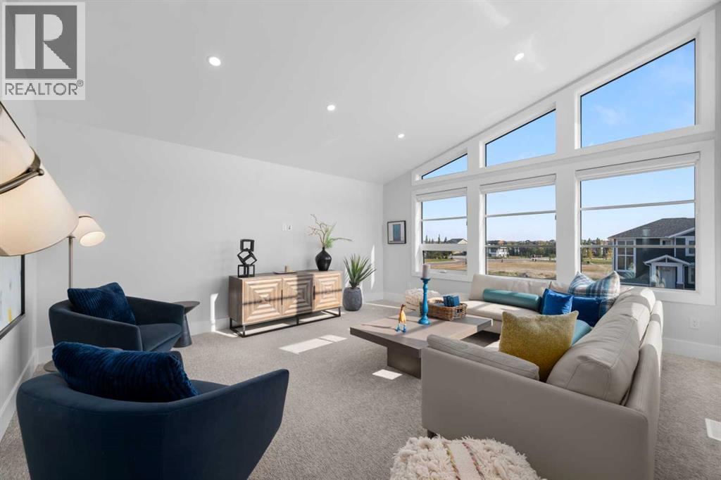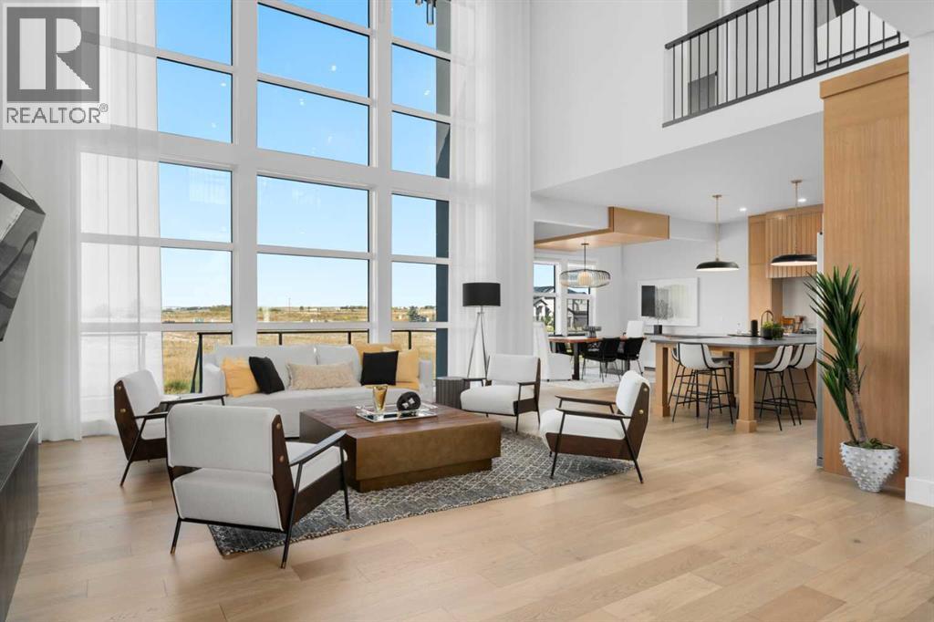 Welcome to the “Aurora” Showhome, a masterpiece by award-winning builder Cornerstone Luxury Homes (now offered with a finished basement). Thoughtfully designed with intention and purpose, this home strikes the perfect balance of elegance and comfort in the welcoming, family-friendly community of Monterra on Cochrane Lakes, just minutes from the town of Cochrane. Set on a 0.28-acre lot, this stunning two-storey offers over 4,900 sq. ft of refined living space, 5 bedrooms, 4 bathrooms and a triple car garage. A striking mezzanine bridge and expansive windows showcase breathtaking views, while the open-concept main floor creates an ideal flow for family living and entertaining. The great room impresses with soaring vaulted ceilings and a sleek linear gas fireplace. The chef-inspired kitchen features a large center island, custom cabinetry, premium appliances, and an impressive butler’s pantry. Completing the main level are a dedicated office/study, spacious dining area, oversized mudroom, and elegant 2-piece powder room. Step outside to the expansive wrap-around deck, perfect for al fresco dining and unforgettable sunsets. Upstairs, the primary retreat is a serene escape, offering space for a king-sized bed, a spa-inspired 5-piece ensuite, and a custom walk-in closet. Two additional bedrooms, a 5-piece bath, and a light-filled bonus room provide ample space for family and guests.The fully developed basement expands your living space with a bedroom, a wine bar, a comfortable recreation room, and a gym that could also be used as a bedroom ensuring the home is truly move-in ready (basement development is in progress). The oversized, heated three-car garage with epoxy floors easily accommodates vehicles, storage, and recreational gear. Monterra offers an exceptional lifestyle, with tranquil lakes, scenic pathways, and generous lots, while keeping you close to the charm of Cochrane and the convenience of Calgary. Available as a leaseback. Book your private showing today or visit the showhome during open hours to learn all that Monterra has to offer. Showhome Hours: Mon–Thurs 2:00–8:00 | Sat & Sun 12:00–5:00. (id:58070)