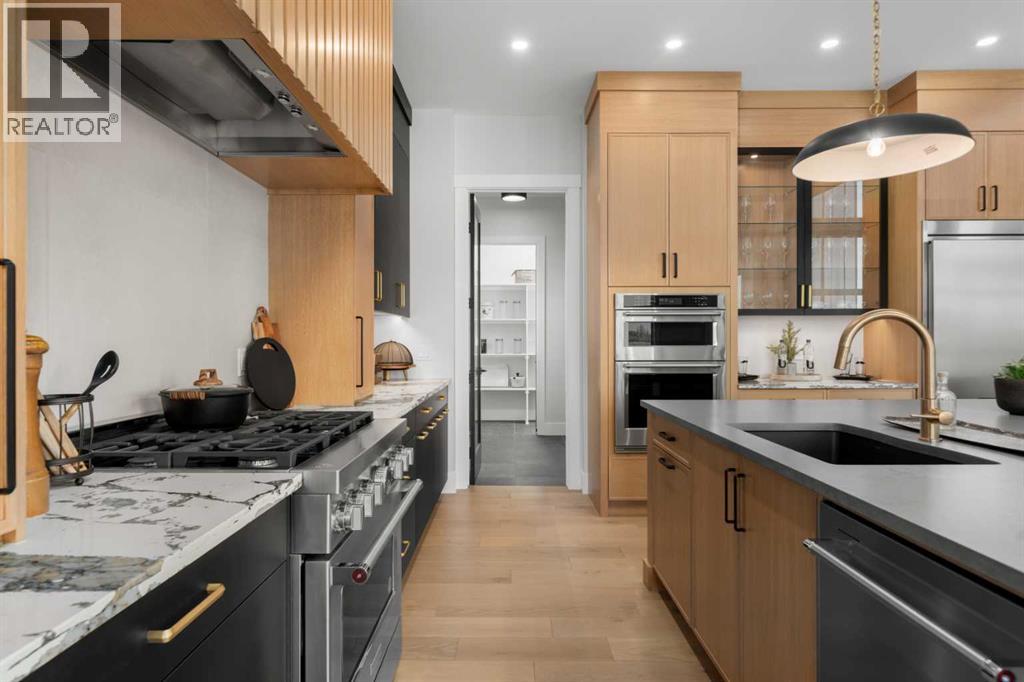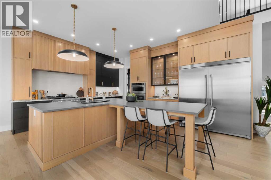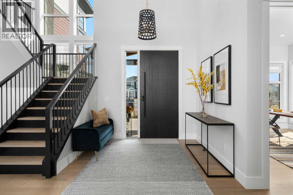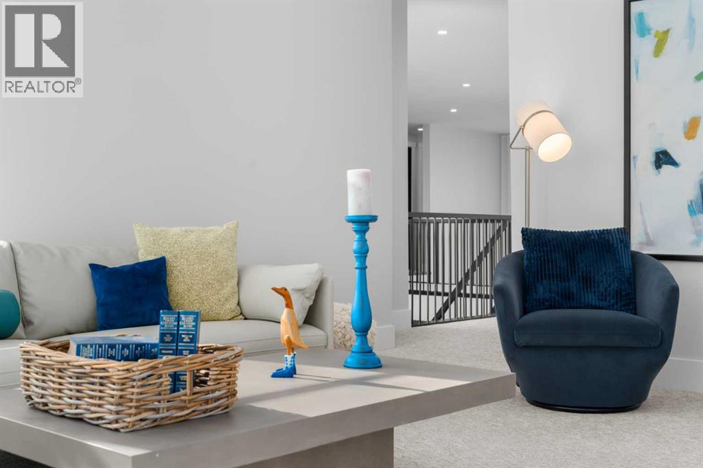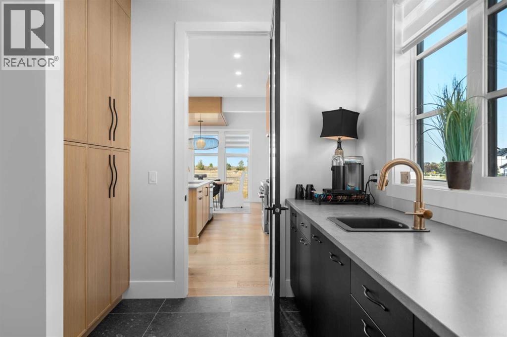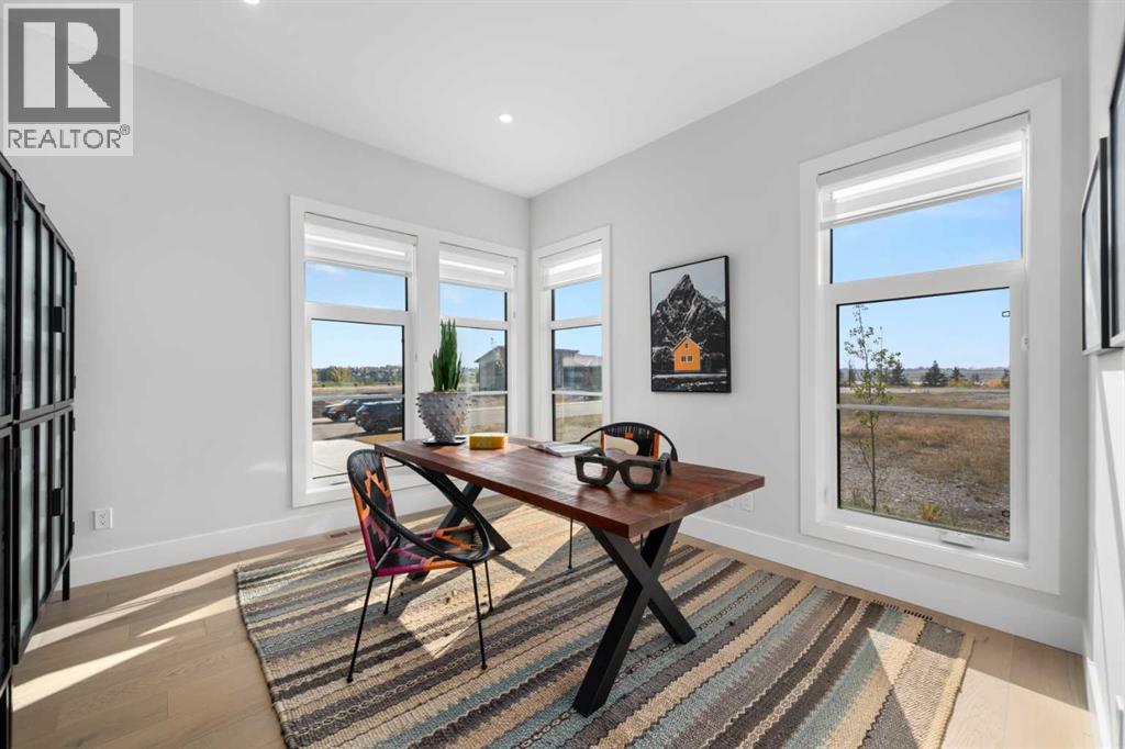 Welcome to the “Aurora” Showhome, a masterpiece by award-winning builder Cornerstone Luxury Homes (now offered with a finished basement). Thoughtfully designed with intention and purpose, this home strikes the perfect balance of elegance and comfort in the welcoming, family-friendly community of Monterra on Cochrane Lakes, just minutes from the town of Cochrane. Set on a 0.28-acre lot, this stunning two-storey offers over 4,900 sq. ft of refined living space, 5 bedrooms, 4 bathrooms and a triple car garage. A striking mezzanine bridge and expansive windows showcase breathtaking views, while the open-concept main floor creates an ideal flow for family living and entertaining. The great room impresses with soaring vaulted ceilings and a sleek linear gas fireplace. The chef-inspired kitchen features a large center island, custom cabinetry, premium appliances, and an impressive butler’s pantry. Completing the main level are a dedicated office/study, spacious dining area, oversized mudroom, and elegant 2-piece powder room. Step outside to the expansive wrap-around deck, perfect for al fresco dining and unforgettable sunsets. Upstairs, the primary retreat is a serene escape, offering space for a king-sized bed, a spa-inspired 5-piece ensuite, and a custom walk-in closet. Two additional bedrooms, a 5-piece bath, and a light-filled bonus room provide ample space for family and guests.The fully developed basement expands your living space with a bedroom, a wine bar, a comfortable recreation room, and a gym that could also be used as a bedroom ensuring the home is truly move-in ready (basement development is in progress). The oversized, heated three-car garage with epoxy floors easily accommodates vehicles, storage, and recreational gear. Monterra offers an exceptional lifestyle, with tranquil lakes, scenic pathways, and generous lots, while keeping you close to the charm of Cochrane and the convenience of Calgary. Available as a leaseback. Book your private showing today or visit the showhome during open hours to learn all that Monterra has to offer. Showhome Hours: Mon–Thurs 2:00–8:00 | Sat & Sun 12:00–5:00. (id:58070)