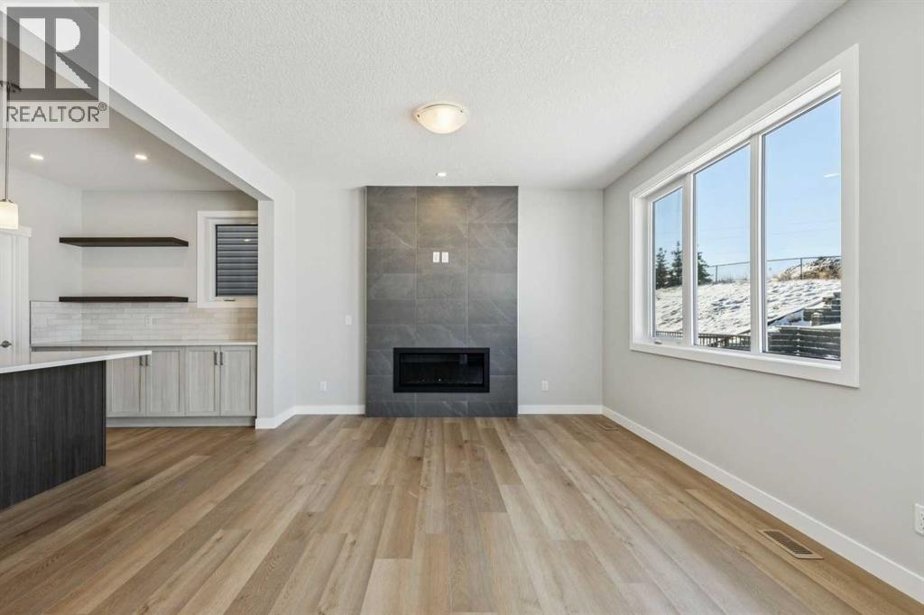 Nestled close to the majestic mountains and scenic walking paths, this spacious sanctuary awaits! Welcome to this inviting 3-bedroom, 1858 sq. ft. home designed with the modern family in mind. The main floor boasts an open-concept layout, offering generous central living space with gas fireplace which is perfect for gatherings and everyday life. The spacious kitchen is a chef's dream, complete with ample cabinetry quartz countertops and a large pantry for all your storage needs and an $8,000 Trail Appliance package for you to pick out your own appliances. Entertaining is a breeze with the kitchen seamlessly flowing into the great room, where a built-in fireplace creates a cozy ambiance for hosting guests or relaxing with loved ones. Upstairs, a central bonus room awaits, providing flexible space for family enjoyment and relaxation. Whether it's a movie night, game day, or a quiet reading nook, this versatile area caters to your every need. Step into luxury with a spa-like 5-piece primary bathroom and an expansive walk-in closet, providing a retreat within your own home. The basement is undeveloped awaiting your vision and comes with a separate side entrance. With its thoughtful design and family-friendly features, this home offers both comfort and style for the modern homeowner. Step outside onto the expansive pressure-treated back deck, where you'll find the ideal spot for outdoor entertaining, summer barbecues, or simply basking in the sun with your morning coffee. With a large double attached garage and side entrance for its own basement access this house has it all. Don't miss the opportunity to make it yours today! (id:58070)