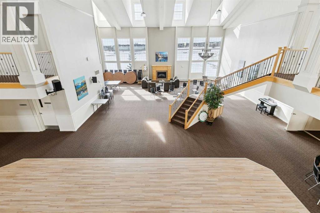 Exceptional 40+ complex in a prime location with outstanding amenities! This highly sought-after, well-managed community features an active Board and a true pride of ownership throughout.Almost 1,000 sq ft, this spacious 1 Bedroom + Den unit is ideally situated in a quiet corner of the complex. The functional open-concept layout includes a large kitchen with eating bar overlooking the living room, ample counter space, pantry, and a separate dining area. The bright living room features a cozy fireplace and large windows with access to the generous deck.The oversized primary bedroom includes a walk-in closet and a 5-piece ensuite with double sinks, abundant cabinetry, and excellent counter space. Additional highlights include 10 ft ceilings, quality carpet underlay, in-suite storage, plus a storage locker conveniently located at the front of the titled underground heated parking stall.Resort-style amenities include an indoor swimming pool, hot tubs, fully equipped fitness room, theatre, billiards/games room open to a dance floor and party space, library, car wash bay, and workshop area in the heated parkade. Beautiful walking paths surround the pond to the south with sitting areas throughout the grounds.Ideally located close to shopping, dining, recreation, VIVO Centre, cinema, and more, with quick access to Deerfoot Trail and Stoney Trail. A fantastic opportunity to enjoy maintenance-free living in a vibrant, amenity-rich community. Get into this desired Community while you can! (id:58070)