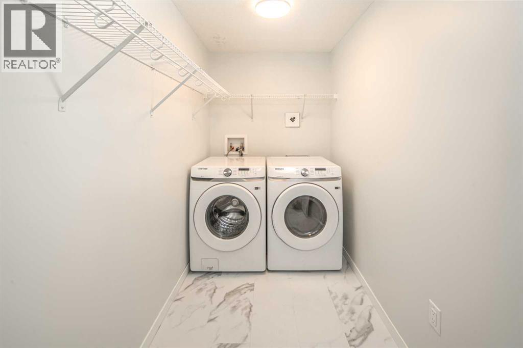 Welcome to Riverstone Manor! Located in the highly sought after southeast community of Riverstone in Cranston. BUILT BY “BUILDER OF CHOICE” WINNER CEDARGLEN LIVING! This unit offers luxury living right at your fingertips! This stunning southwest facing unit features 3 beds, 2 baths, and over 1,188 SqFt of living space. It also comes a titled underground parking stall and building bike storage! open plan, 9' ceilings, Low E triple glazed windows, electric baseboard heating, BBQ gas line on the balcony, Fresh Air System (ERV) and so much more. Super sunny SOUTH UNIT, with UNOBSTRUCTED Views of the Scenic Wet Pond on the balcony. The kitchen is spectacular with full height cabinets, quartz counters, pots/pan drawers, undermount sink, upgraded backsplash and S/S appliances. The island is extensive which transitions into the spacious living area and large dining room, perfect for entertaining. The spacious primary bedroom has a large window (triple pane windows), sizeable walk-in closet and dual vanities with a stand-up shower. The additional bedrooms are perfect for kids, guests, or an office. Nearby is the laundry/storage room (washer & dryer included) and a 4pc bath with quartz counters and undermount sink. Highlights include: Hardie board siding, electric baseboard heating, BBQ gas line on the balcony. Strategically located steps from the beautiful Bow River, adjacent to the scenic wet pond, access to Cranston’s Resident’s Association and many other bespoke amenities. PET FRIENDLY COMPLEX! (id:58070)
