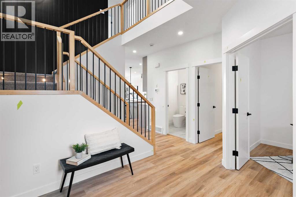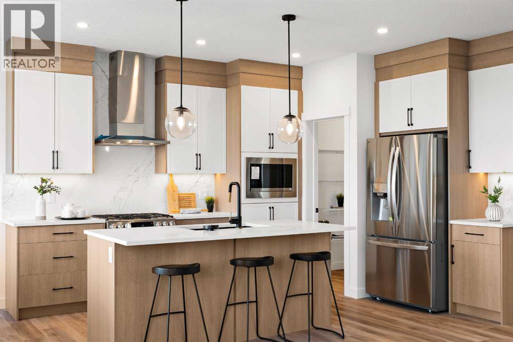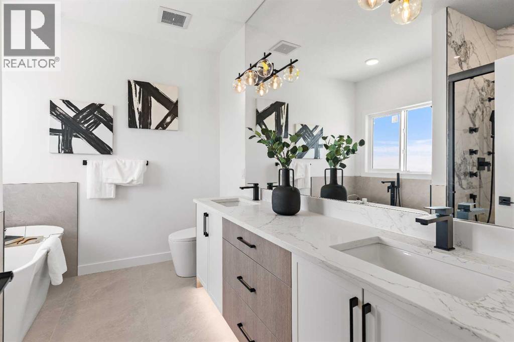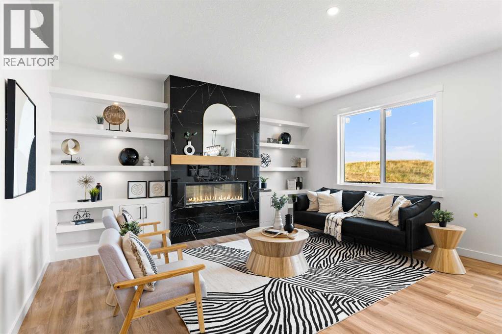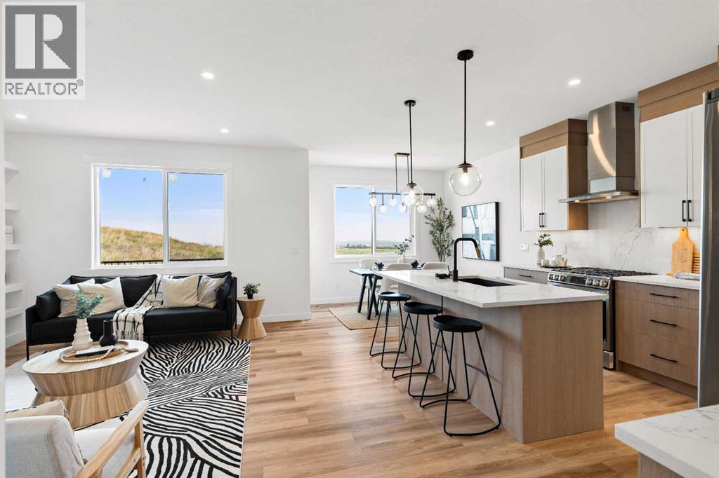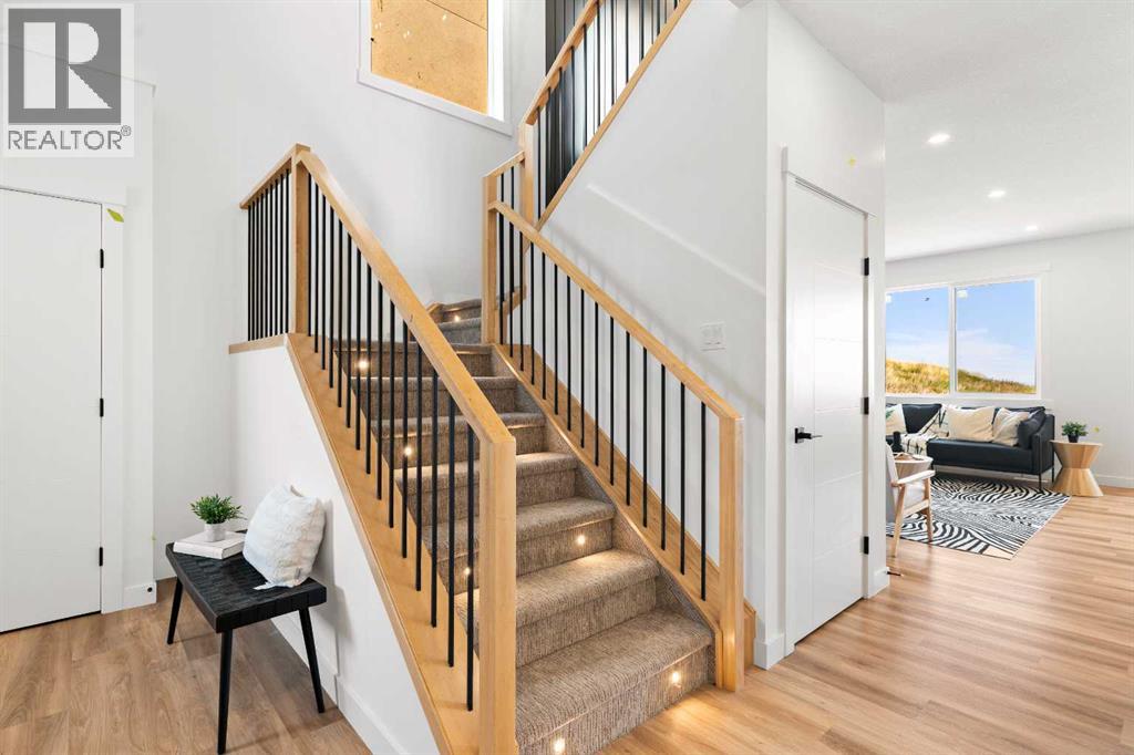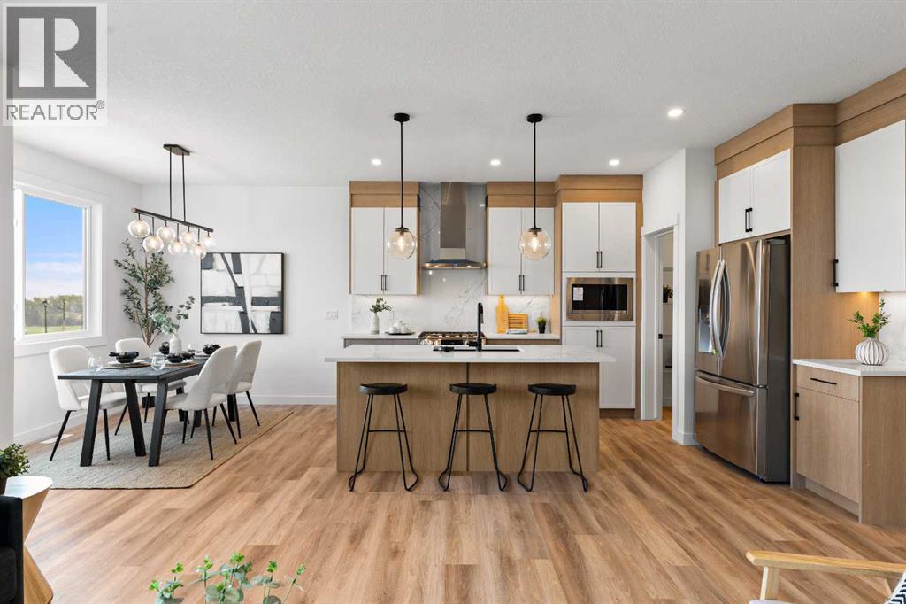 Welcome to your dream home in the serene and charming town of Crossfield. Situated just 9 minutes north of Airdrie, 25 minutes from Calgary, and only 3 minutes off Highway 2, this custom Exquisite Home offers the perfect blend of luxury and convenience. Spanning close to 2,200 square feet of above-grade living space with an additional 835 square feet of unfinished basement, this CORNER LOT home provides a total of over 3000 square feet of living area. The residence features 3 spacious bedrooms and 2.5 elegantly designed bathrooms, highlighted by exquisite finishes such as stunning Maple details, slim shaker-style cabinetry with plywood boxes, sleek black exterior dual-pane windows, high-end lighting, and durable wide plank LVP flooring. We offer the flexibility to provide full finishes upon request or customize them to your individual taste. The main floor boasts an open concept design/open to below that seamlessly connects the kitchen, dining nook, and great room, ideal for modern living and entertaining. The kitchen features a large island with quartz countertops and upgraded lighting fixtures, creating a stylish and functional space. A cozy montigo gas fireplace adds warmth and charm to the great room. The main floor also includes a convenient spice pantry, a study room, a mudroom, and 9-foot ceilings that enhance the feeling of spaciousness. Large windows flood the space with natural light, enhancing the airy atmosphere. Outside, you'll find a triple-car detached garage, a private front deck, and acrylic stucco throughout the exterior with stone . On the second floor, enjoy the grandeur of 9-foot ceilings throughout, including in the spacious bonus room with an open-to-below concept that adds to the home’s luxurious feel. The master suite features a 5-piece ensuite and a generous walk-in closet, while the second bedroom includes its own walk-in closet. The third bedroom, along with an upper-floor laundry room, provides additional convenience. Each bedroom is e nhanced with elegant tray ceilings, adding a touch of sophistication. The undeveloped basement offers a wealth of potential, featuring rough-ins and a side entrance. It can be customized based on your preferences, allowing you to tailor the space to suit your needs.Spend your sunny afternoons exploring local parks and playgrounds such as Veterans Peace Park, visiting the lively Crossfield Farmers Market, or attending exciting community events like the annual demolition derby and rodeo. Crossfield, a rapidly growing town, offers essential amenities including K-12 schools such as Crossfield Elementary and W.G. Murdoch School, both just a short walk away. This beautiful, tranquil town combines connectivity with affordable living, making it the ideal place to call home. (id:58070)