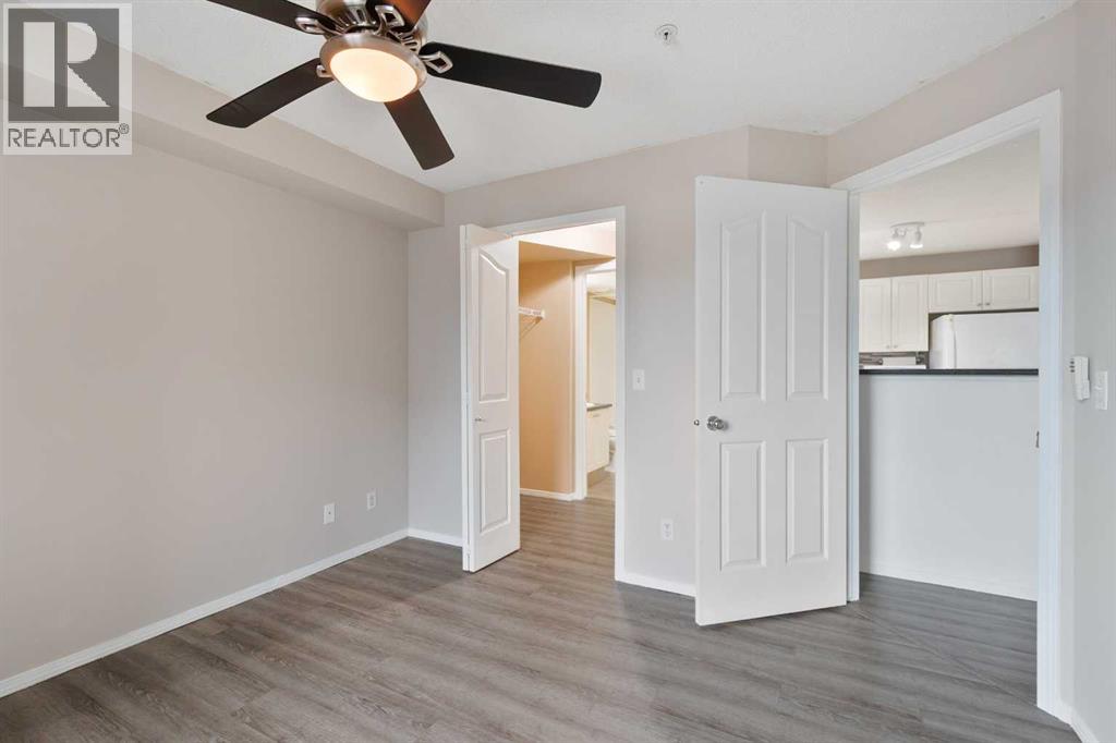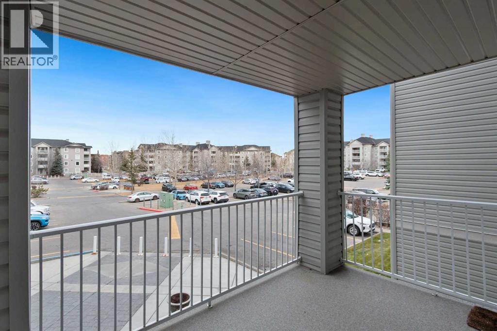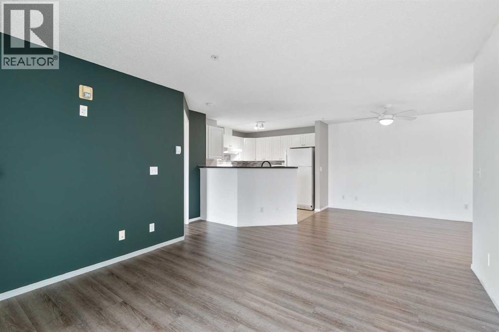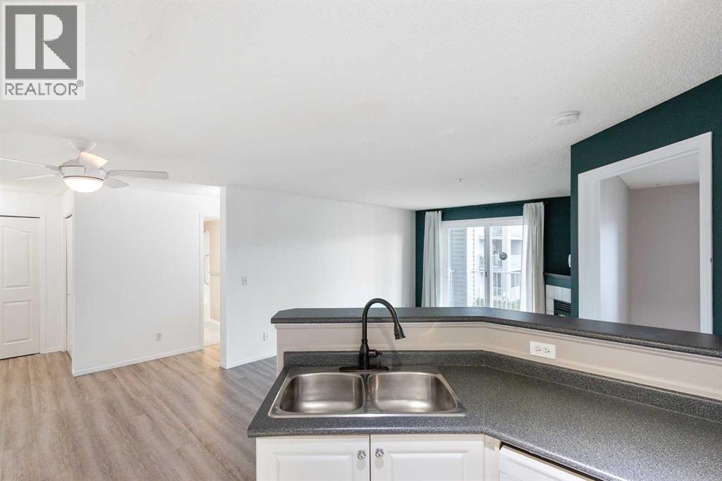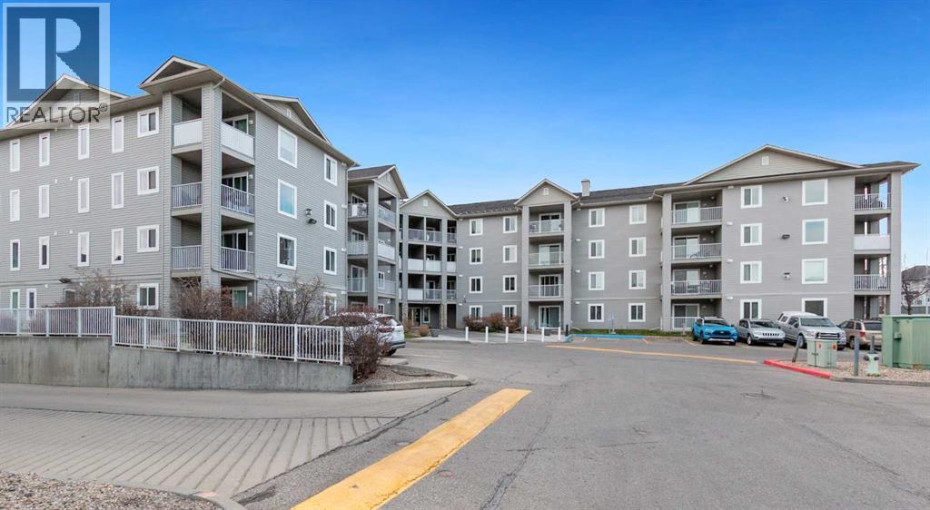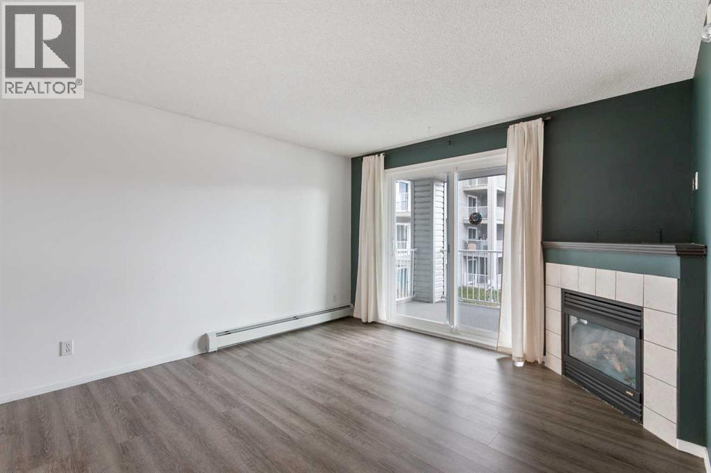 This exceptionally clean condo offers a welcoming layout from the moment you step inside. The entry opens into a spacious, open-concept living room featuring a cozy fireplace and direct access to the balcony, perfect for relaxing. The modern kitchen is bright and functional, complete with white cabinetry, roll-out drawers, generous counter space, and tile flooring. It connects easily to the dining area, which comfortably fits a dining table. The primary bedroom is a great size and includes a walk-in closet and private ensuite. The second bedroom works well for guests, family, or a home office. The main bathroom includes an accessible walk-in style tub/shower conversion designed for ease and safety. Tile flooring runs through the kitchen and bathrooms, with vinyl plank flooring throughout the rest of the home for a clean, updated look. A full laundry room adds everyday convenience, equipped with a full-size washer and dryer plus ample storage. Recent updates include newer windows and a newer patio door, and the assigned parking stall is located right at the front entrance for quick access. Set in the heart of Airdrie, this condo is close to shops, pathways, and parks giving you a comfortable low-maintenance living in a prime area of the city. (id:58070)