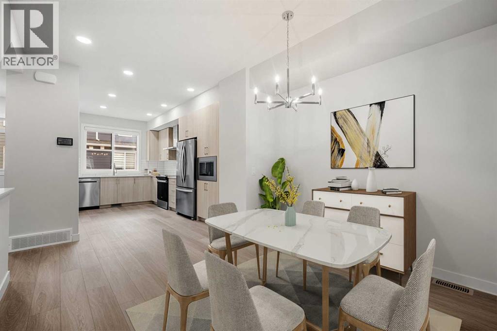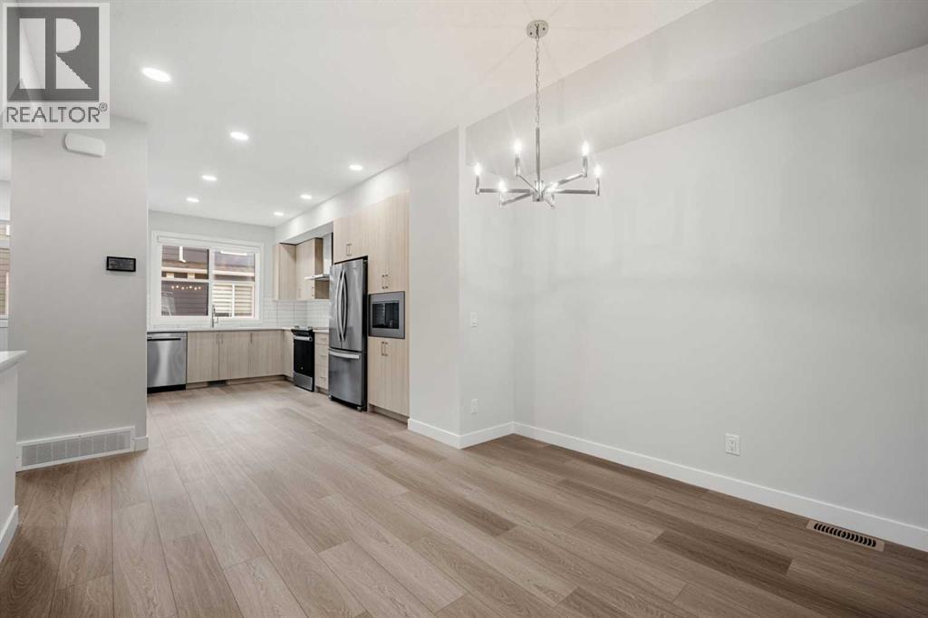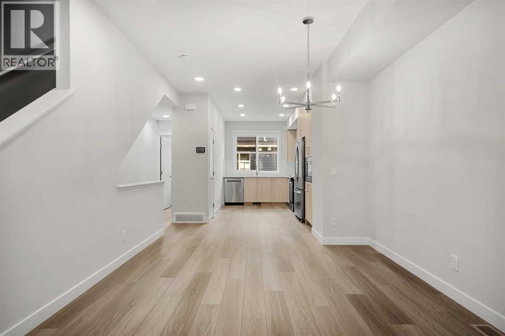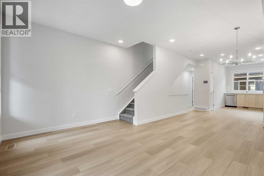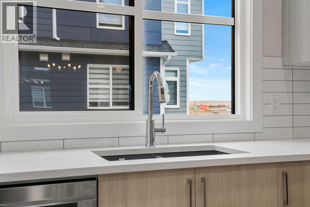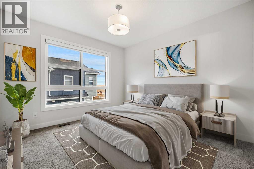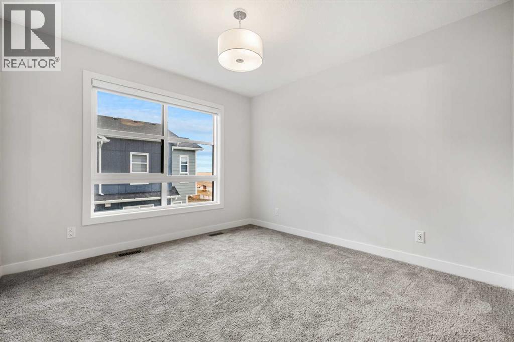 Welcome to #122, 285 Chelsea Court, a stylish brand-new 3-level townhouse offering approximately 1,399 sq. ft. of thoughtfully designed living space in the vibrant community of Chelsea in Chestermere. With contemporary finishes, a functional layout, and immediate possession available, this home is ideal for first-time buyers, professionals, or investors seeking modern low-maintenance living just minutes from Calgary.The main living area features a bright and open-concept design enhanced by luxury vinyl plank flooring and large windows that fill the home with natural light. The modern kitchen is both functional and stylish, showcasing quartz countertops, sleek cabinetry, and quality appliances, while providing ample workspace for everyday cooking and entertaining. The adjacent dining area connects seamlessly to the comfortable living room, creating a welcoming environment for relaxing or hosting guests. A convenient 2-piece bathroom completes this level, along with a flexible open space ideal for a home office, reading area, or additional seating.Upstairs, the home offers two well-sized bedrooms, each featuring the privacy and convenience of its own ensuite bathroom, making this an excellent layout for roommates, guests, or homeowners seeking personal space. The upper level also includes convenient in-suite laundry, adding to the practicality of everyday living.Additional highlights include durable Hardie board siding, an east-facing front exposure, modern flooring selections including vinyl plank, tile, and carpet, and a private balcony/deck perfect for enjoying fresh air or summer evenings. The home also includes a single attached garage, providing secure parking and additional storage.This property is part of a bare land condominium with low condo fees that cover common area maintenance, snow removal, insurance, and professional management, contributing to an easy, low-maintenance lifestyle.Located in the growing Chelsea community, residents enjoy access to parks, playgrounds, walking paths, nearby schools, and local shopping amenities, all within a welcoming neighbourhood environment. With convenient access to Calgary and major commuter routes, this location offers both comfort and connectivity.With modern finishes, functional design, and excellent value, 285 Chelsea Court #122 presents a fantastic opportunity to own a new home in a thriving Chestermere community. (id:58070)