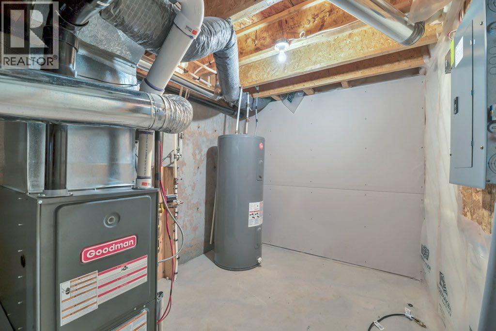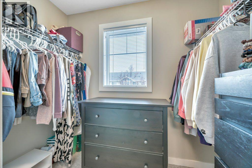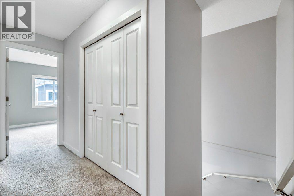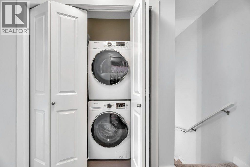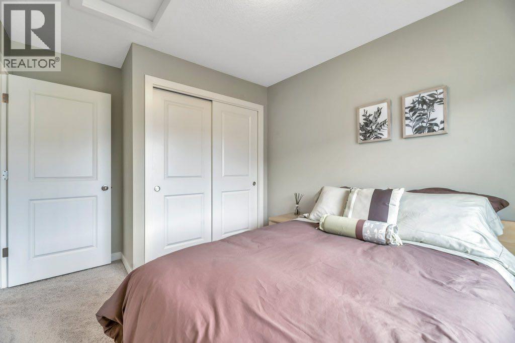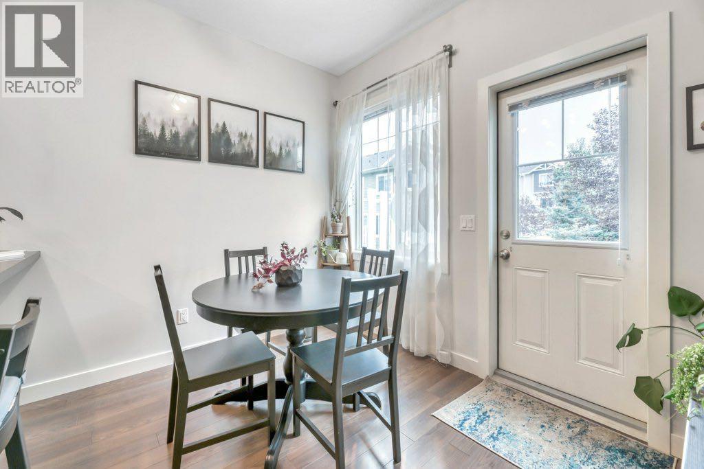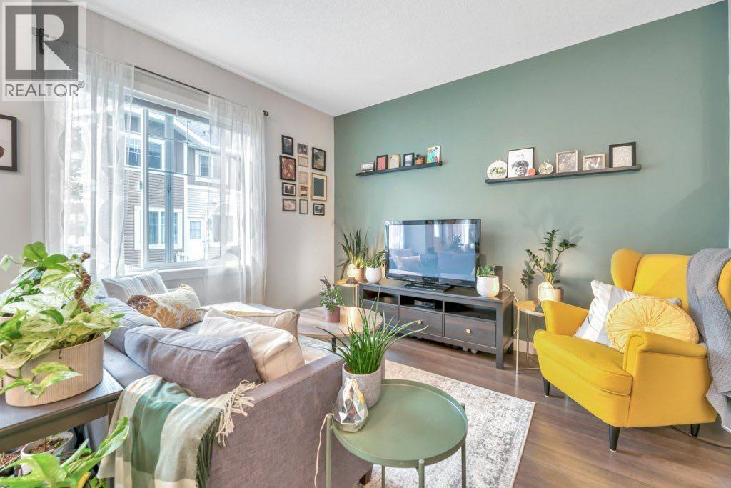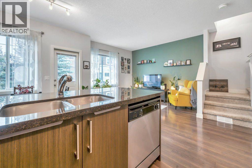 This is the one! This immaculate one owner townhome is one of only a handful of units in popular Chestermere Station with a fenced yard and full basement. You can’t beat this location with so many of Chestermere’s amenities just steps from your front door. Walk to shopping, restaurants, bars, gyms, the library and of course the lake, beach and the many picturesque parks and pathways that Westmere has to offer including an off leash dog park. The cute little covered front porch provides a touch of charm. Step into the spacious tiled front entryway with closet and a 2 pc powder room which is nicely tucked away from the main living space. Up just a couple of steps is your spacious and sunny open concept living space. The modern kitchen is well equipped with wood grain European style cabinetry, stainless steel appliances, subway tile backsplash and granite counters. Between the kitchen & dining area is a counter height peninsula with extra seating where family & guests will love to gather. You can conveniently access your back patio from the bright and cheery dining area allowing for easy BBQing year round. Other thoughtful upgrades you’ll appreciate include durable and easy care laminate flooring plus 9’ ceilings with knock down finish. Upstairs you’ll find 3 nice sized bedrooms including the primary bedroom complete with a 3 pc ensuite and huge walk in closet that even has a window. The other 2 bedrooms share the main bath with a tub which is a must have for any little ones. Upstairs laundry is another convenience you are going to love. This unit comes with a rare full basement that is ready for you to develop to suit your needs. A big window provides lots of light and means you can add a 4th bedroom if it suits your needs. The spacious yard is fenced making it perfect for kids or pets and it backs onto a grove of mature trees making this one of the most desirable locations in the community. Your fur babies are welcome in this pet friendly with board approval complex, but there’s no need to bring your shovel since snow removal and ground maintenance is included. You are going to love living here. (id:58070)