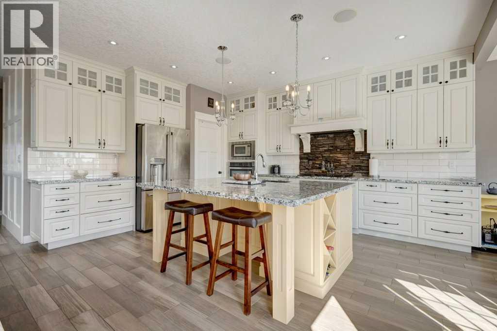 This fully finished two-story home, built by renowned builder, Gigantelli Fine Homes, blends quality craftsmanship with thoughtful design throughout. Known for attention to detail and commitment to lasting value, Gigantelli delivers a home that's both functional and beautifully finished, perfect for families who want it all. With 5 bedrooms and 4 bathrooms, there's plenty of space for everyone. Upstairs, boasts 3 generous bedrooms, a spacious bonus room, and a stylish 4-piece bathroom. The Primary suite offers a true retreat featuring a spa-inspired ensuite with a two person jetted tub, double vanity, walk-in closet with a convenient access to the upper floor laundry. For added comfort, the upper floor windows are outfitted with both day and night shades, providing privacy and room darkening effects when desired. The main floor is open and welcoming, featuring a coffered ceiling in the dining area, a stone-faced gas fireplace in the living room and access to a balcony overlooking the 13th hole of Strathmore's own Golf Course. The chef inspired kitchen is equipped with stainless steel appliances, a gas stove with commercial-grade range hood and a well designed walk-through butler's pantry perfect for both everyday living and entertaining. The main floor office is conveniently located just off the front foyer and is perfect for working from home or the ability to create a crafters dream space. The oversized double garage has in-floor heating and opens into a freshly painted and spacious mudroom that keeps things well organized with designer shelving. The fully developed walkout basement features in-floor heating , a stylish wet bar complete with a dishwasher and wine fridge, a large three piece bathroom , and a convenient second laundry area. Two additional spacious bedrooms and a bright recreation/games room, with new professionally installed flooring, make this level both functional and inviting. . Step outside to the covered patio, an ideal spot to relax or entertain rain or shine. The yard is beautifully landscaped and complete with air conditioning for year round comfort. Move-in ready, this property offers an exceptional blend of style, comfort and high end finishes. Call your favorite Realtor today and book a personal tour. Your next home is waiting for you, right here ! (id:58070)